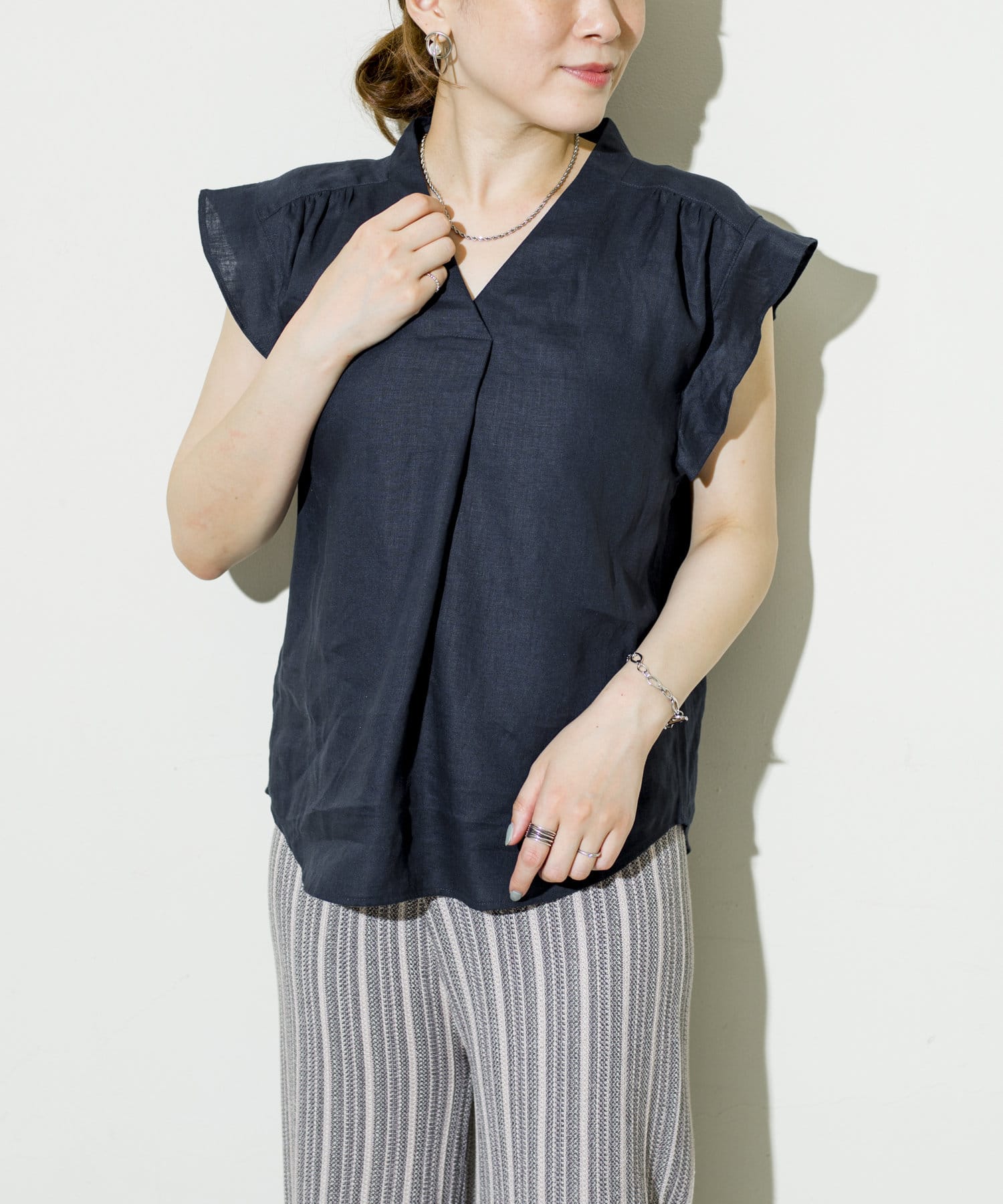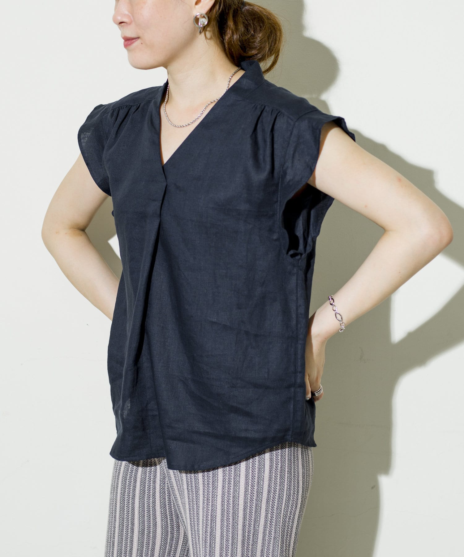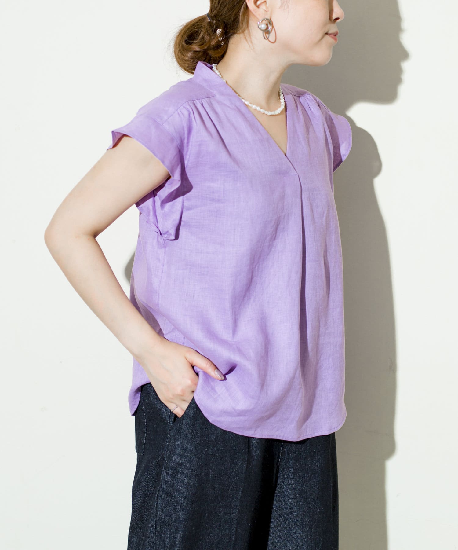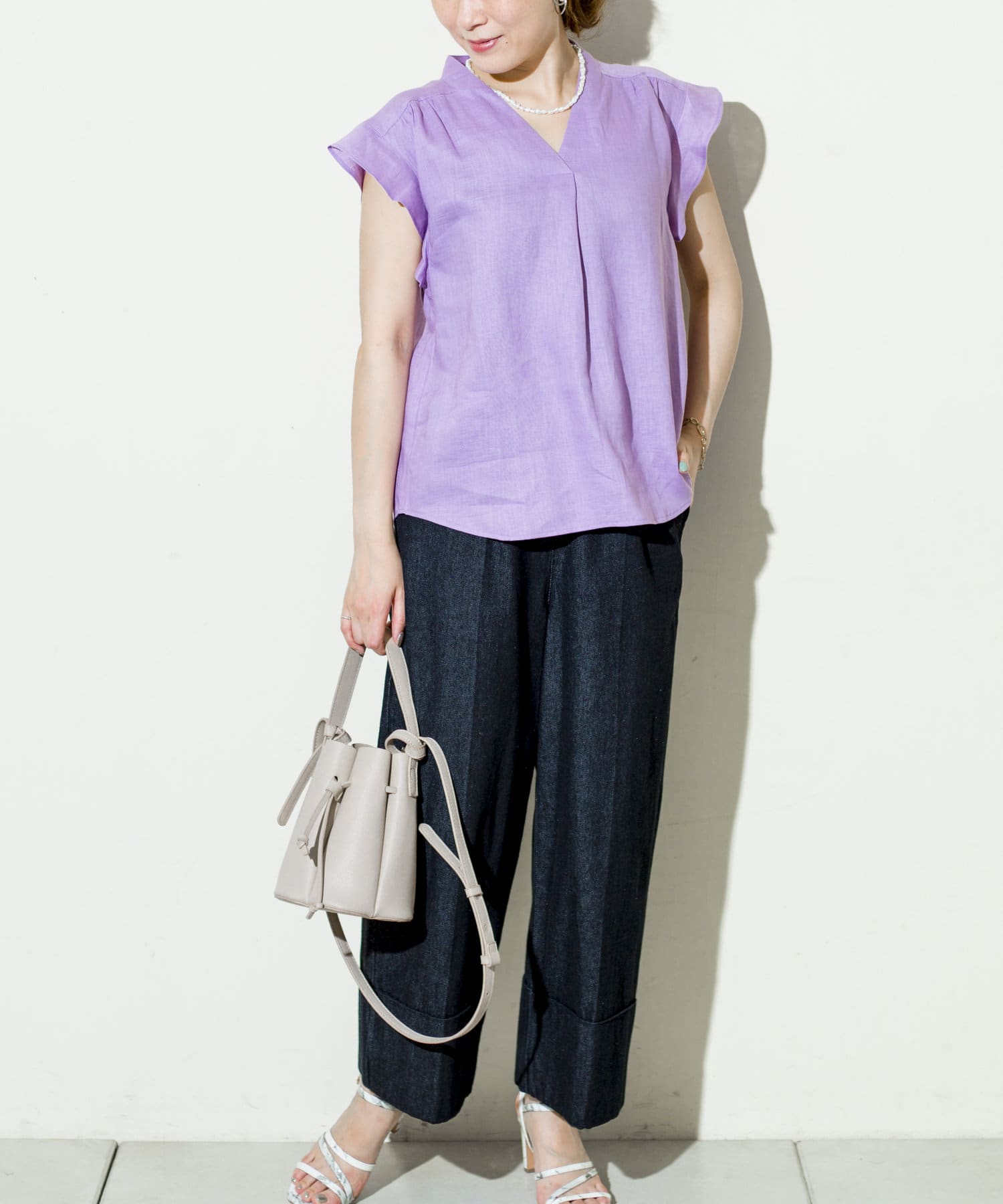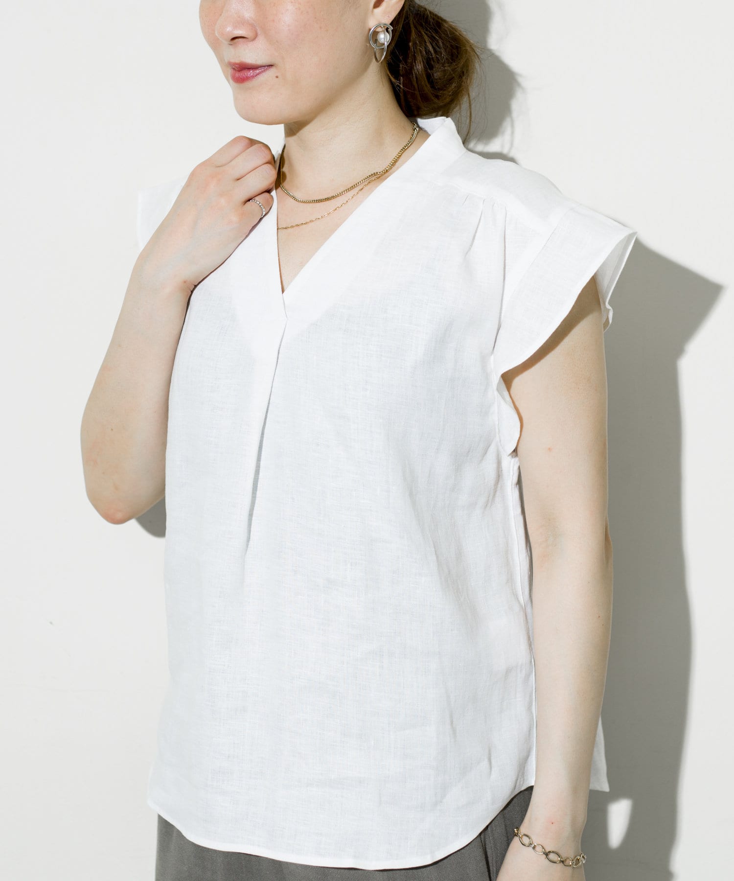 ●柔らかく上品な光沢感が魅力のフレンチリネンを使用したブラウス