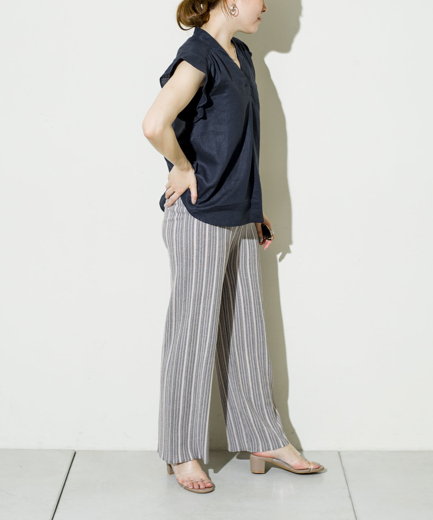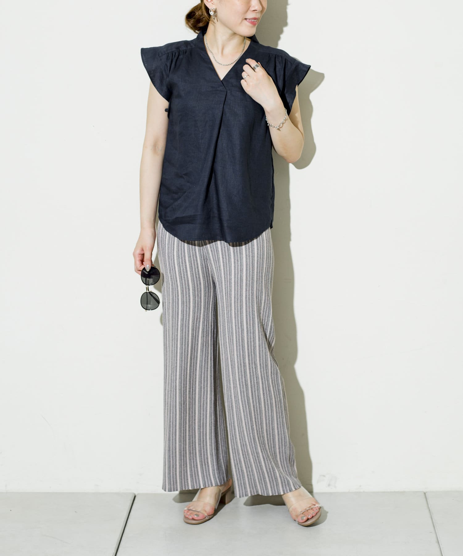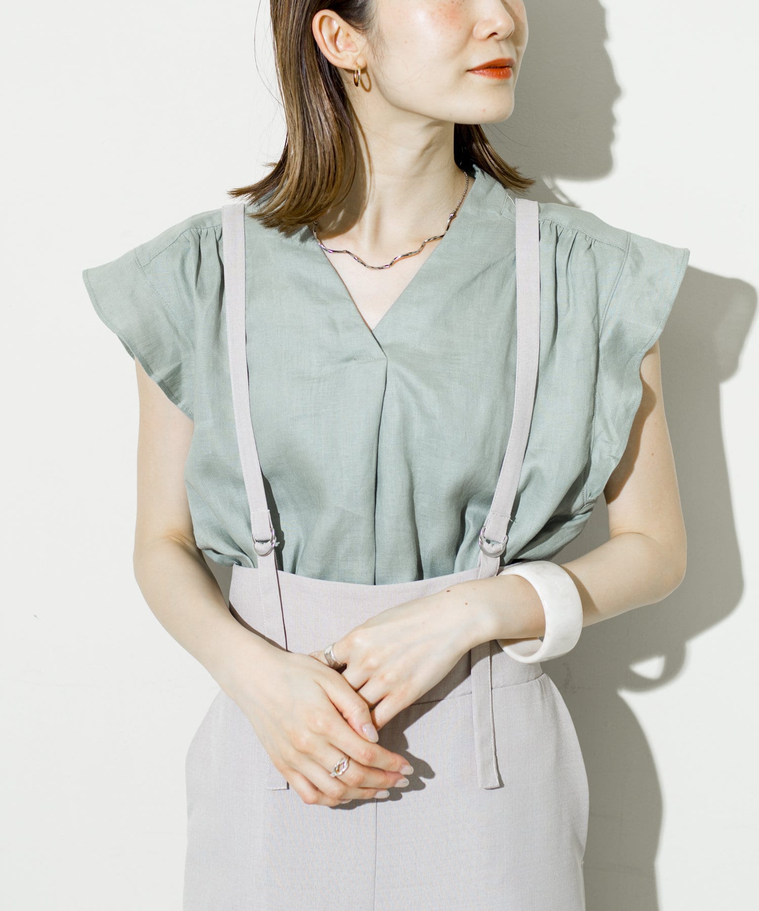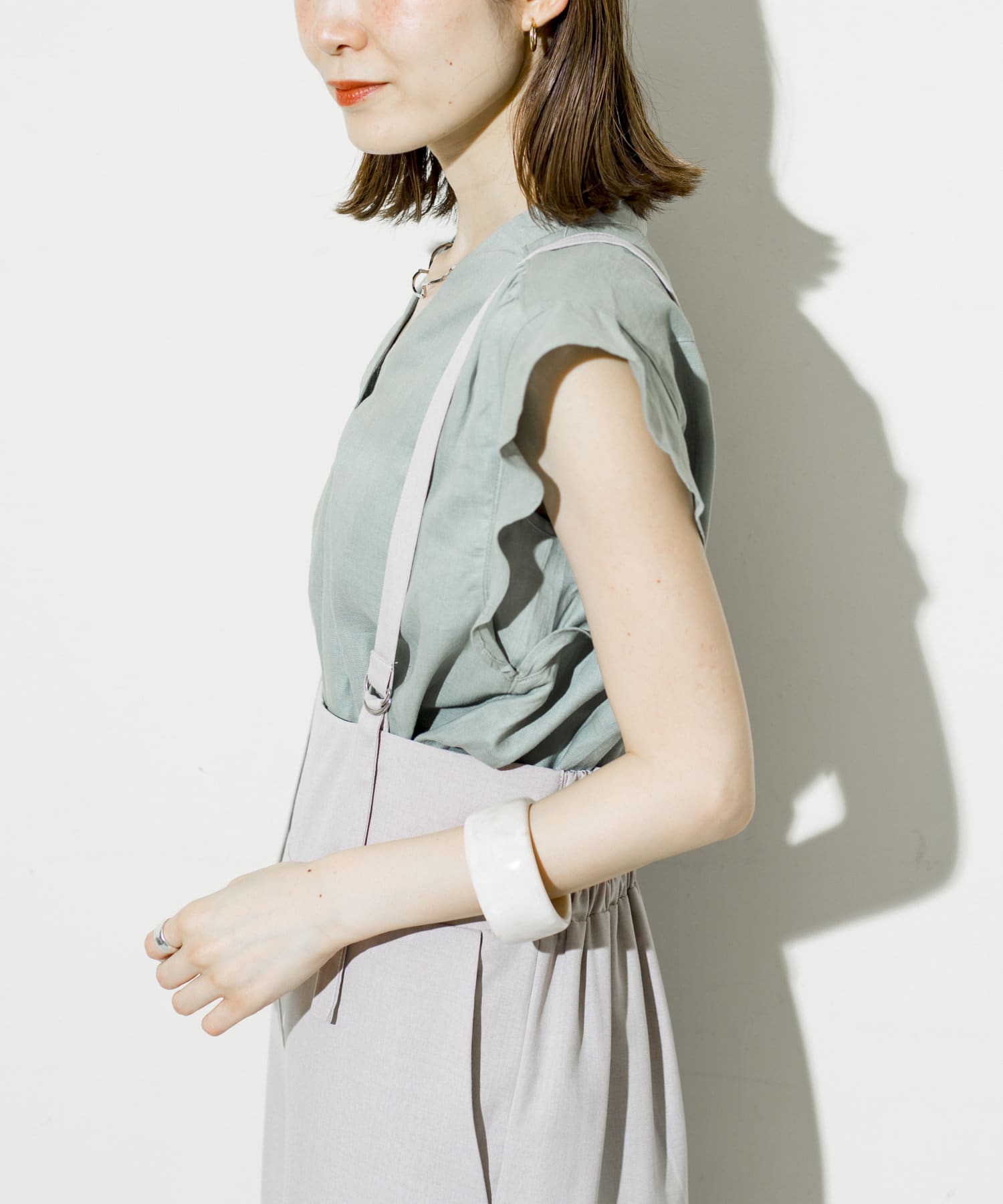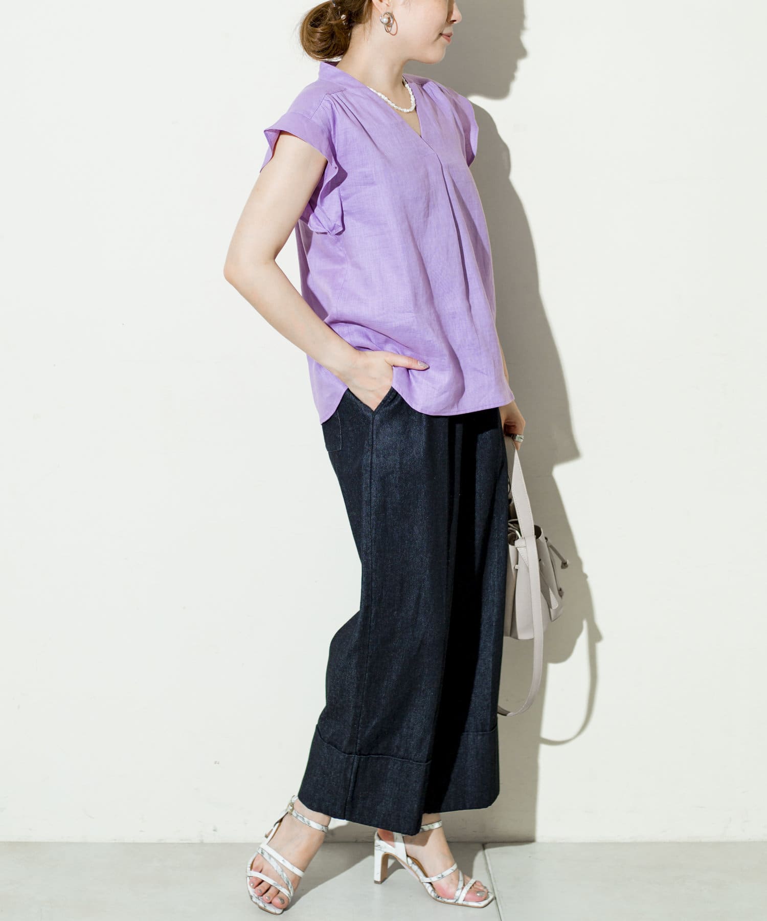●リネンのナチュラル感とフリルのフェミニン要素が
