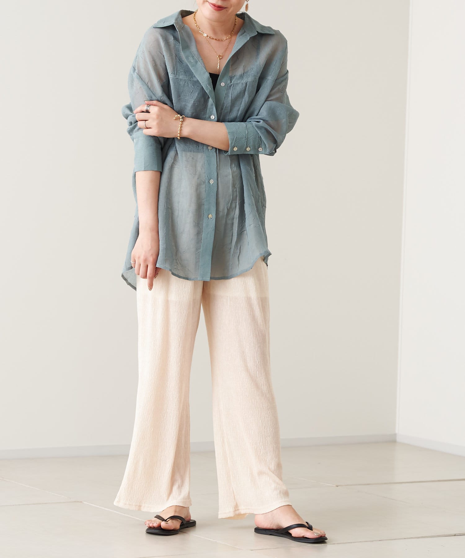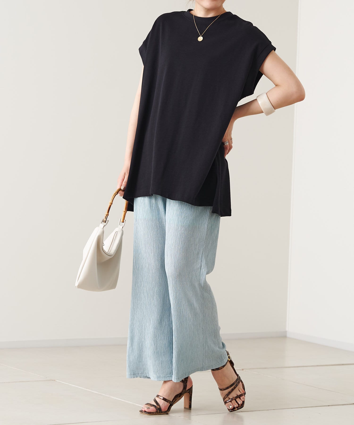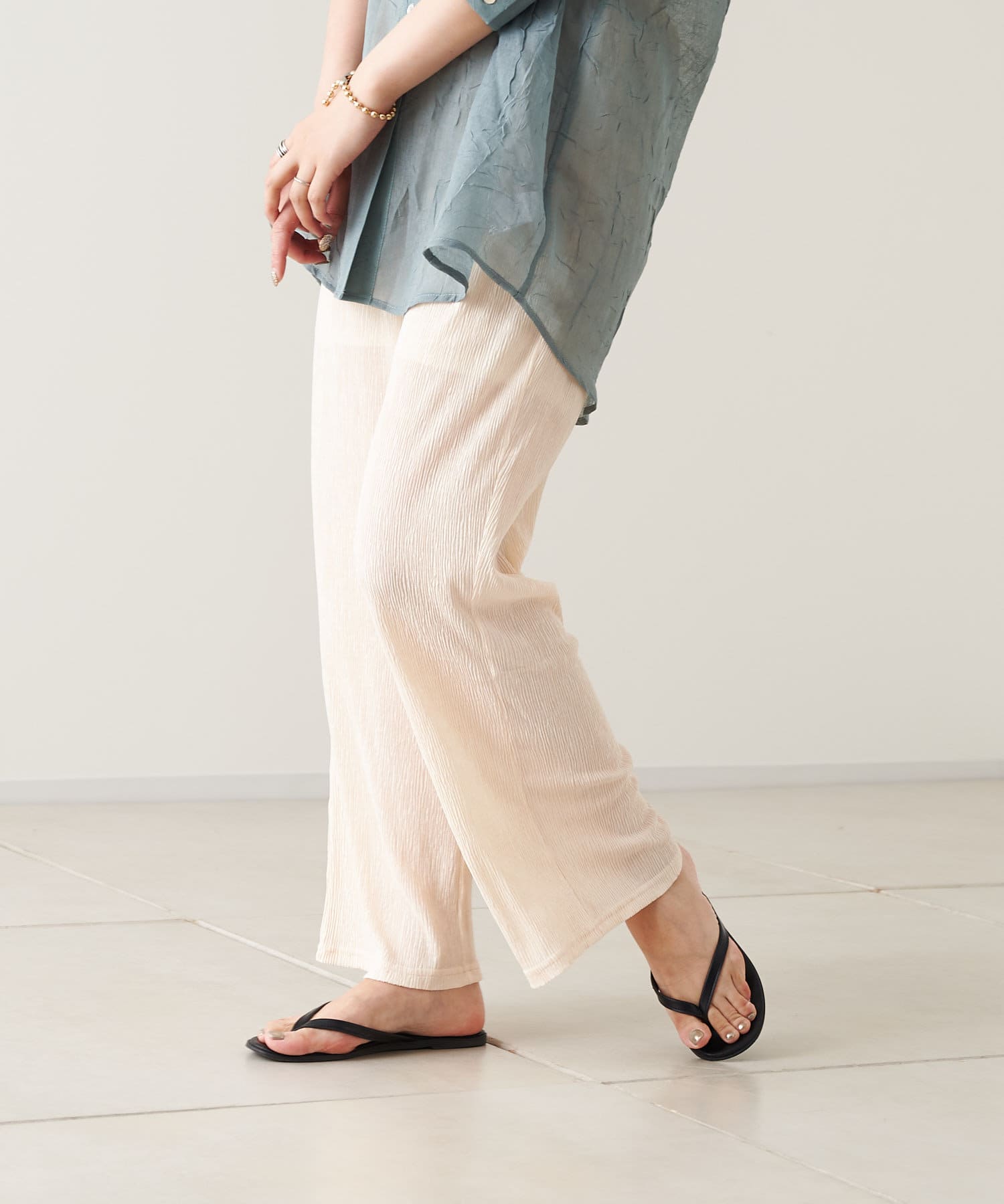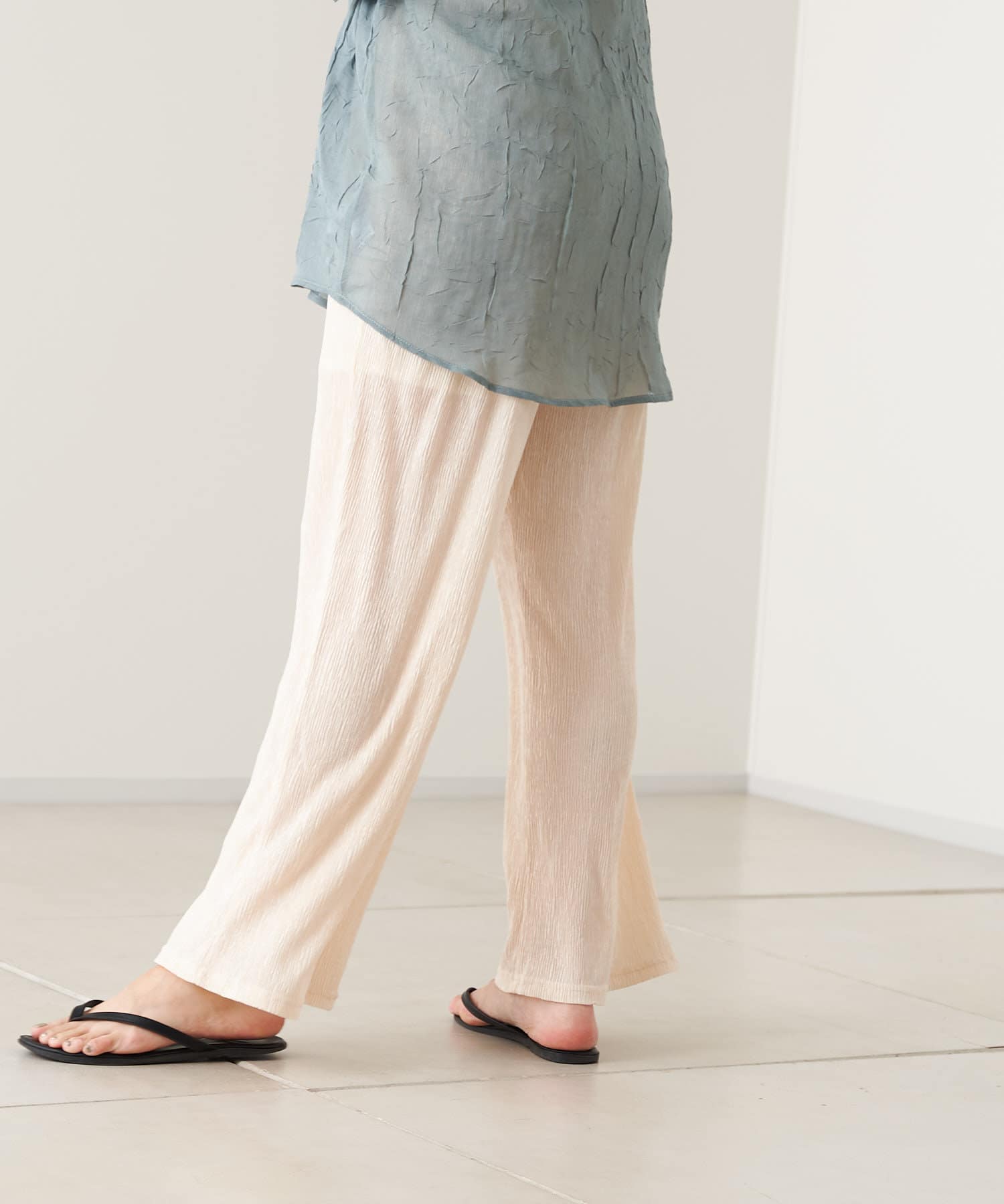 【ウエストゴム仕様】スラブランダムプリーツパンツ