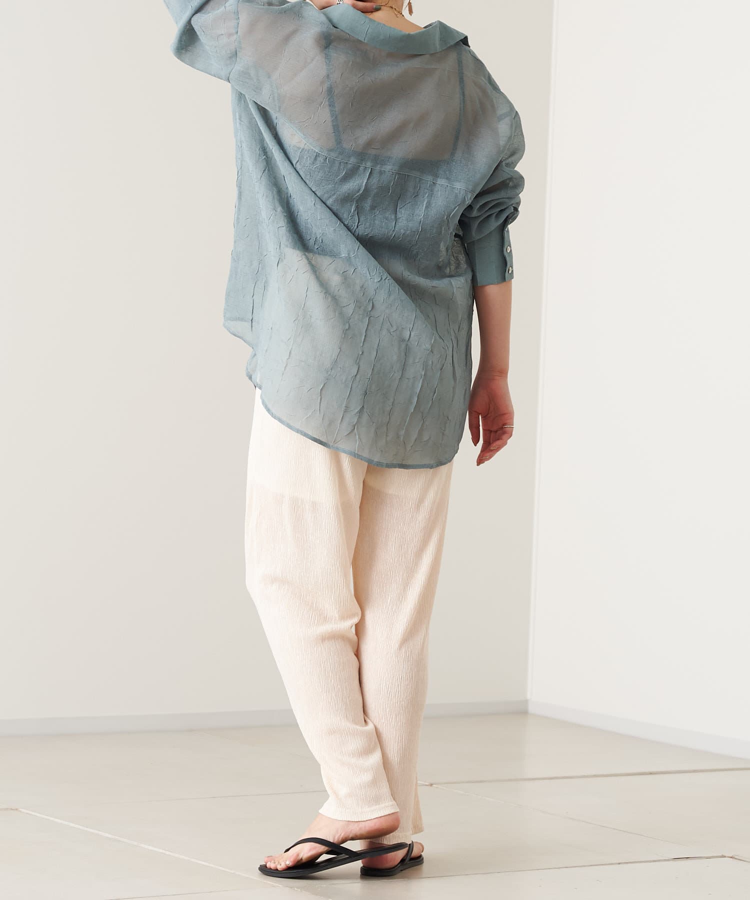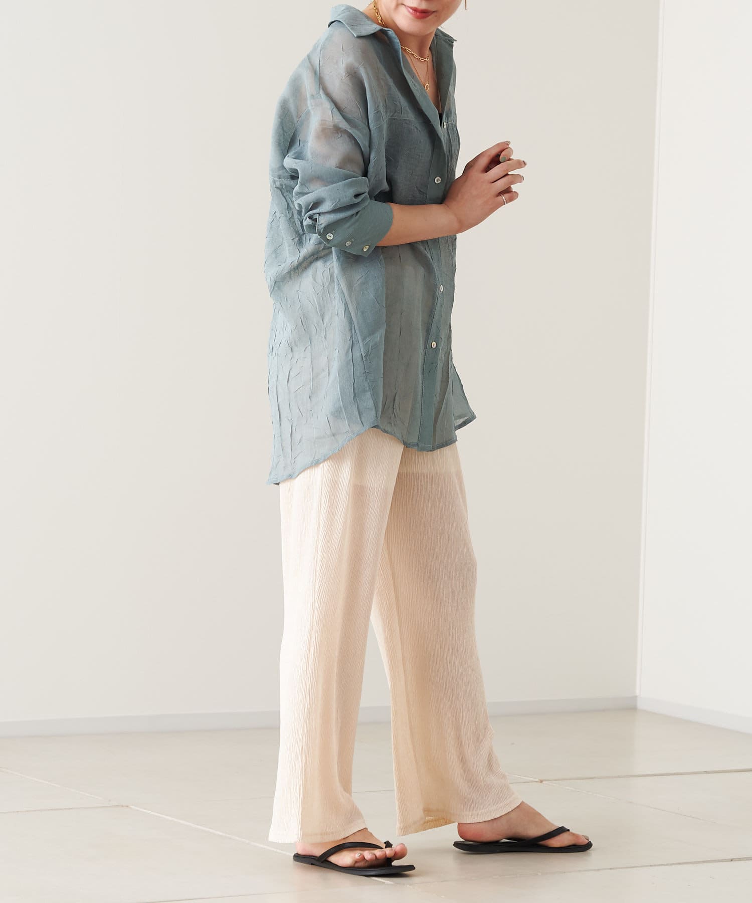 ●スラブ生地の柔らかな風合いとランダムプリーツの