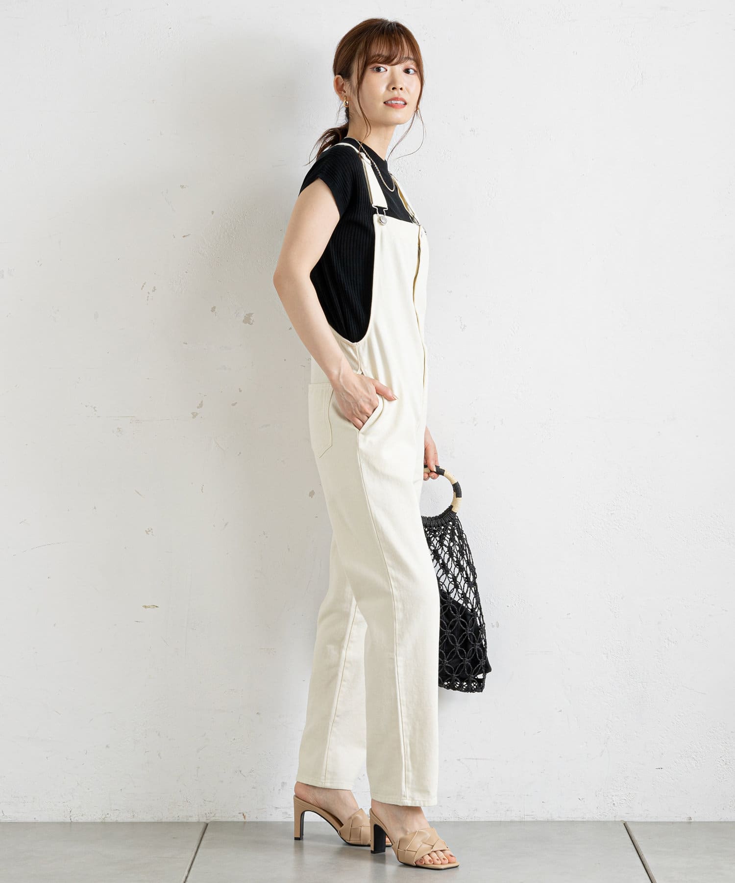《WEB限定サイズあり》【M / L サイズ展開】デニム×ツイルサロペット