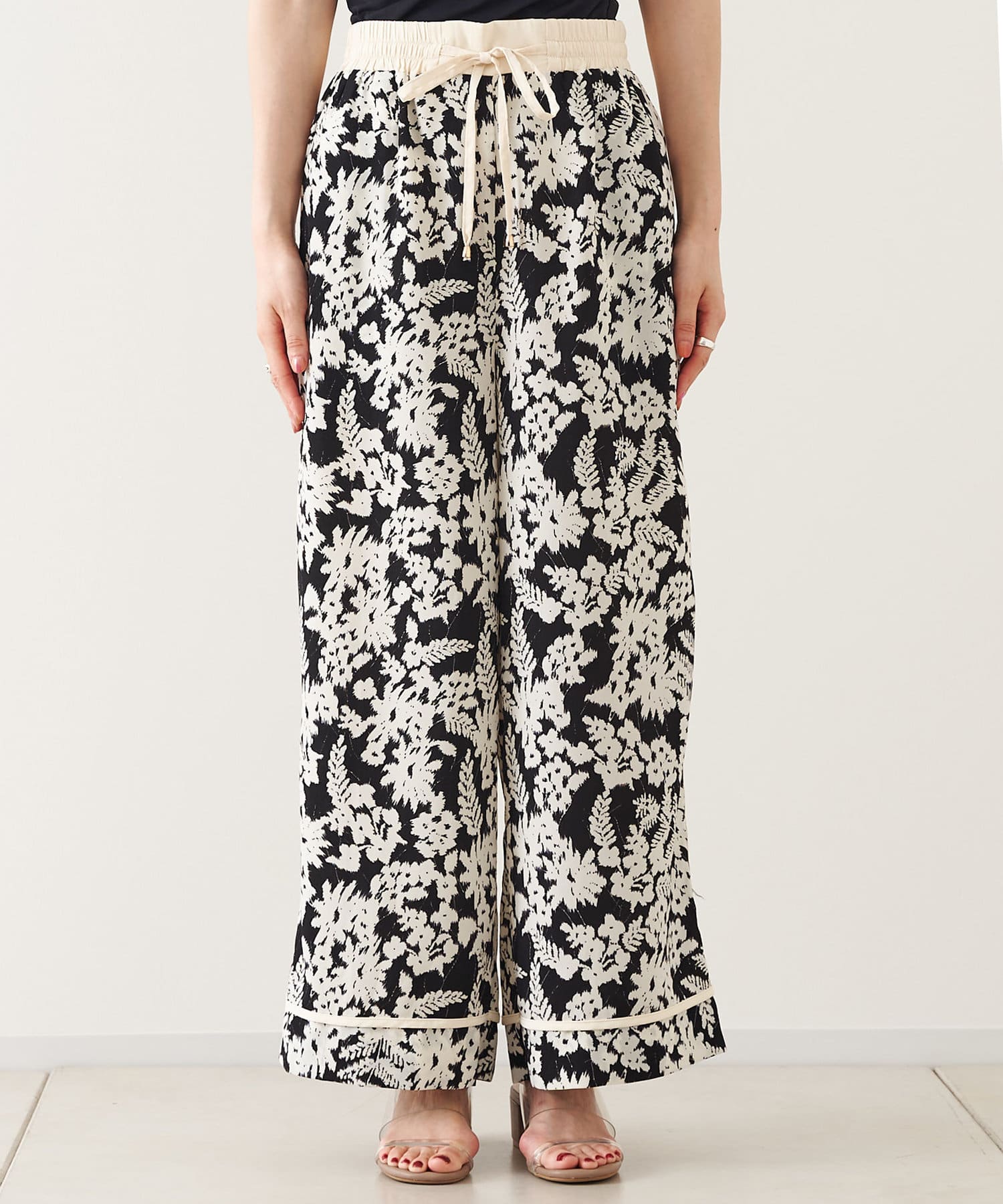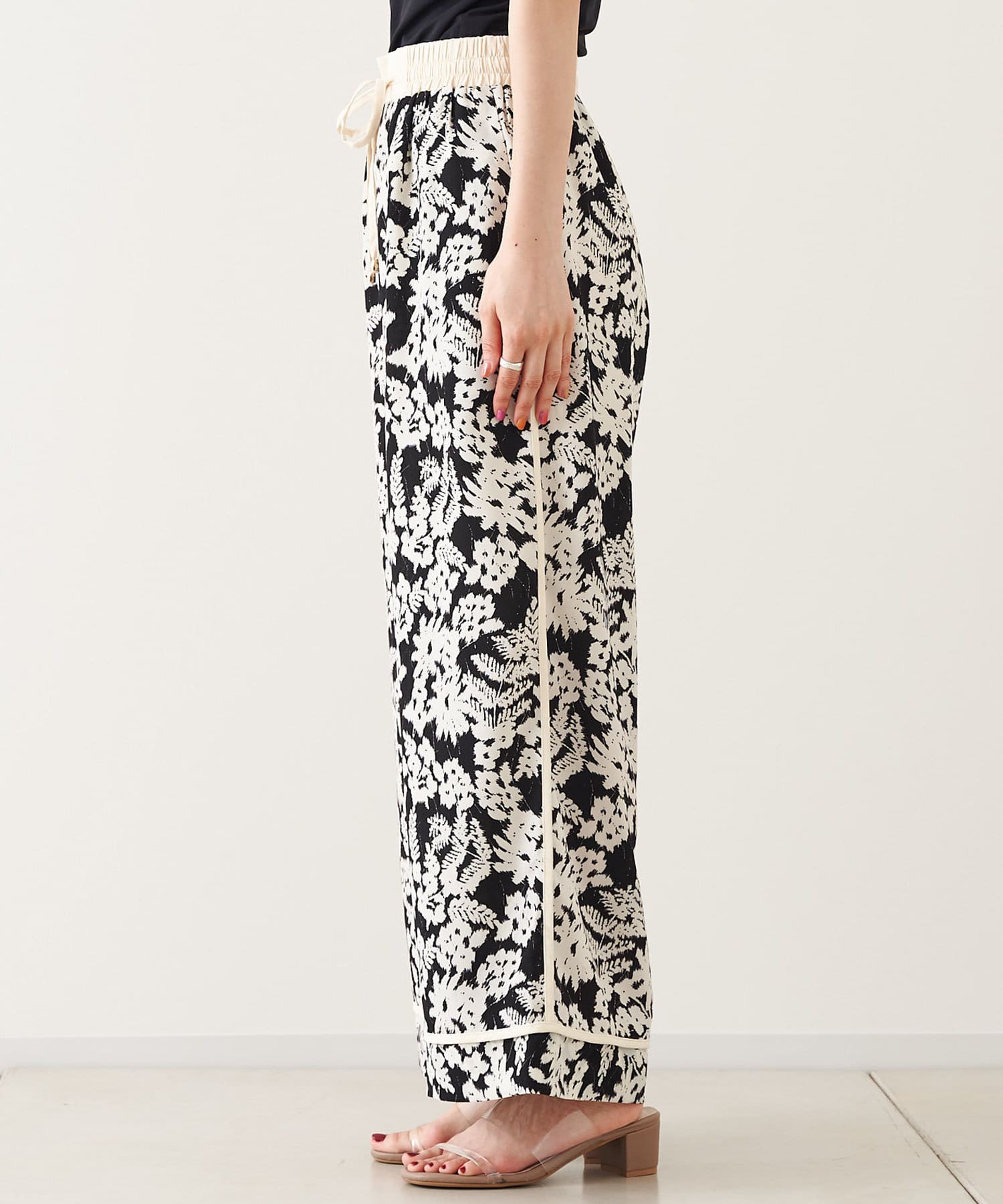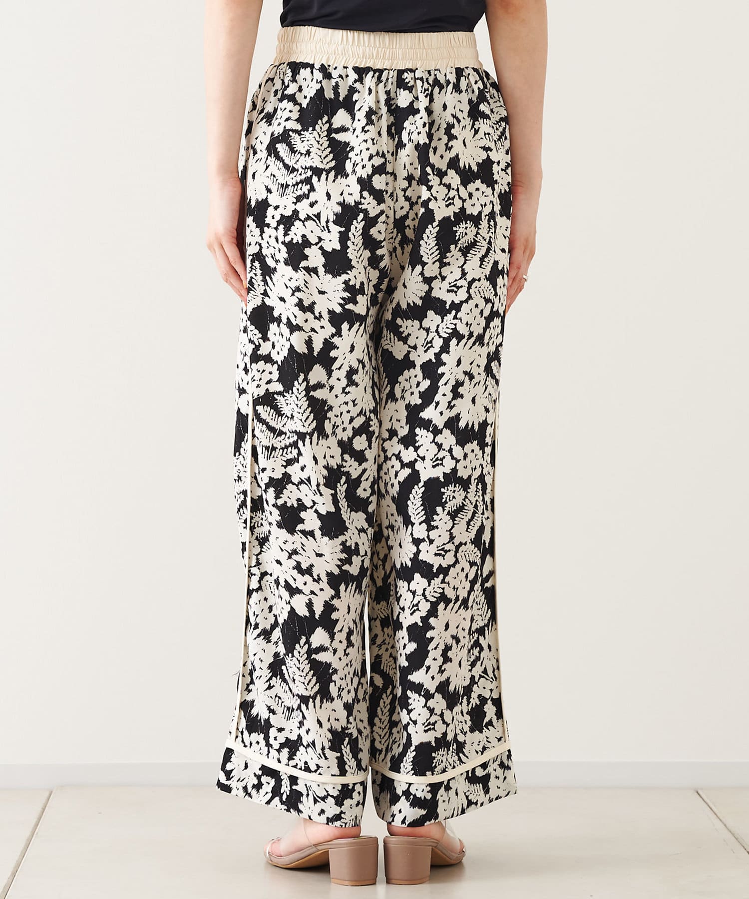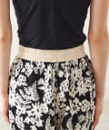 【ウエストゴム仕様】モノトーン花柄パイピングパンツ