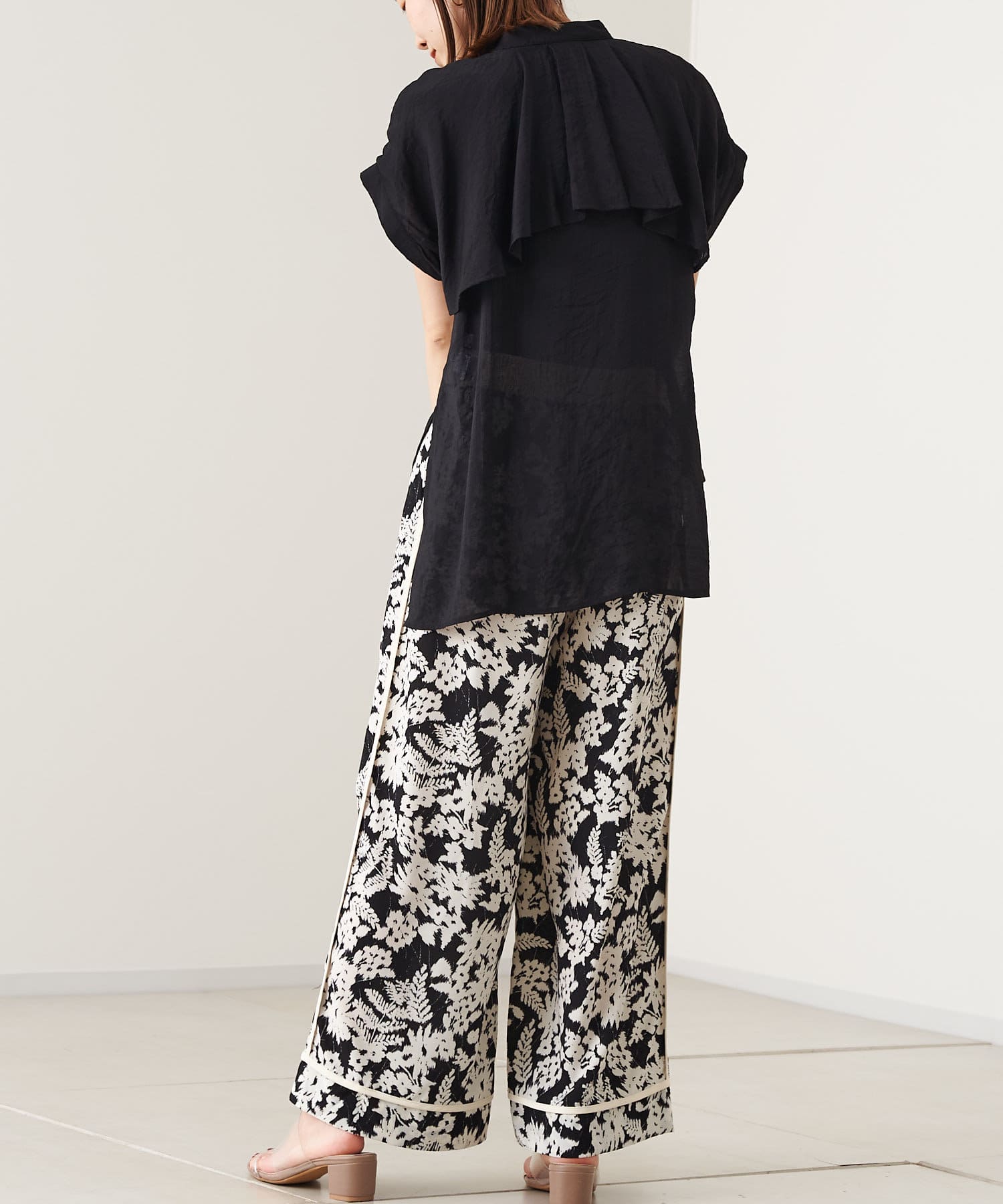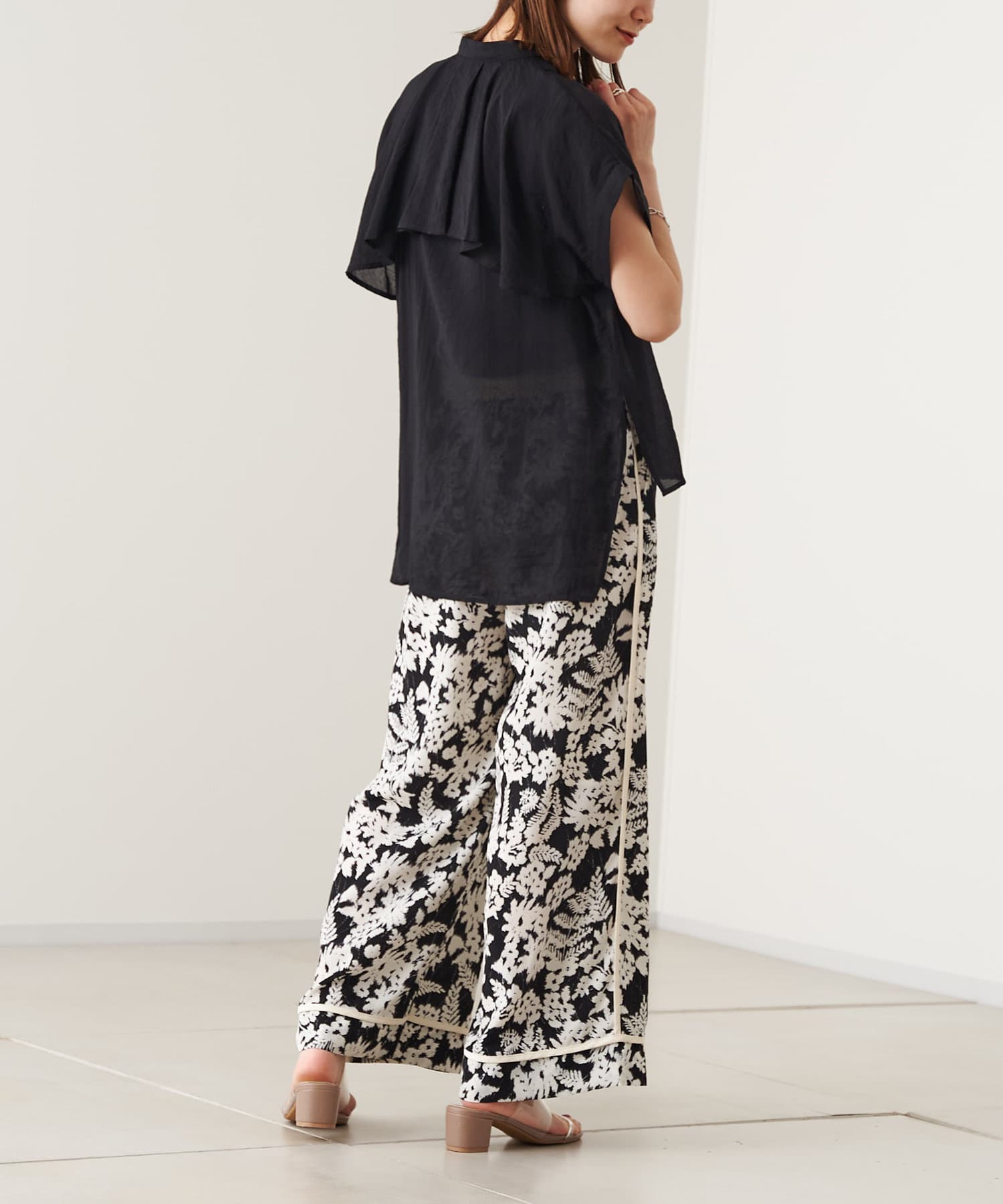 ●モノトーンなカラー使いが大人な雰囲気漂う花柄パンツ