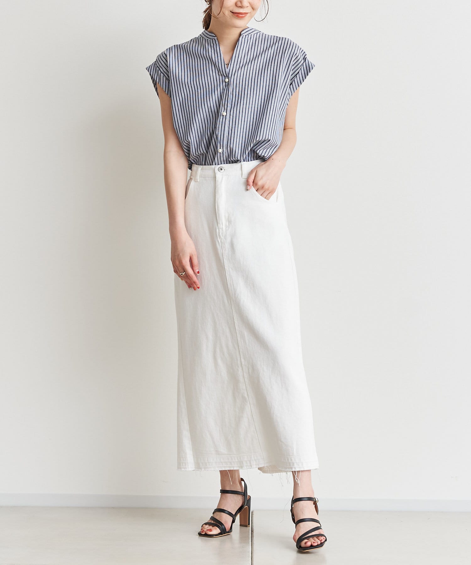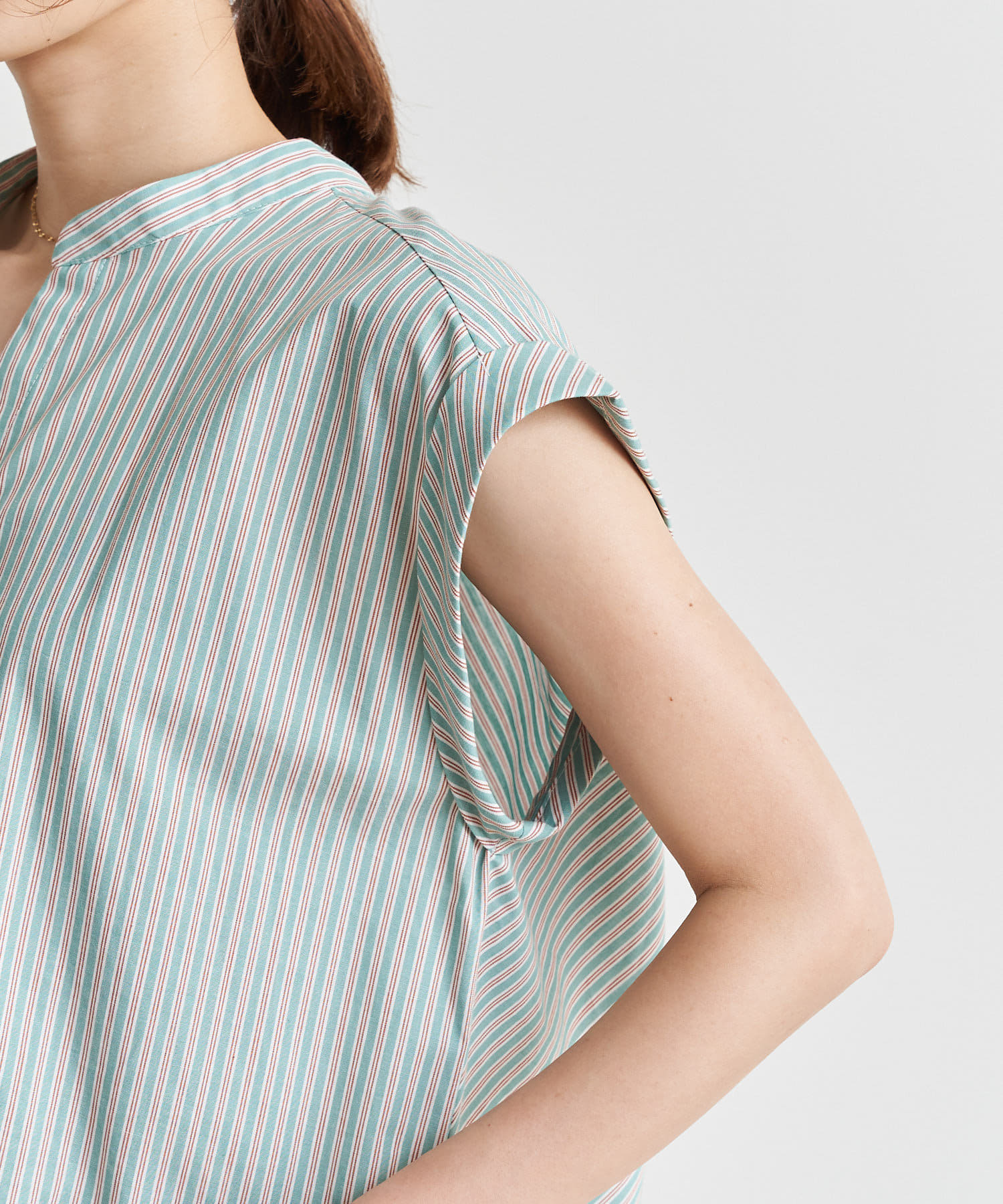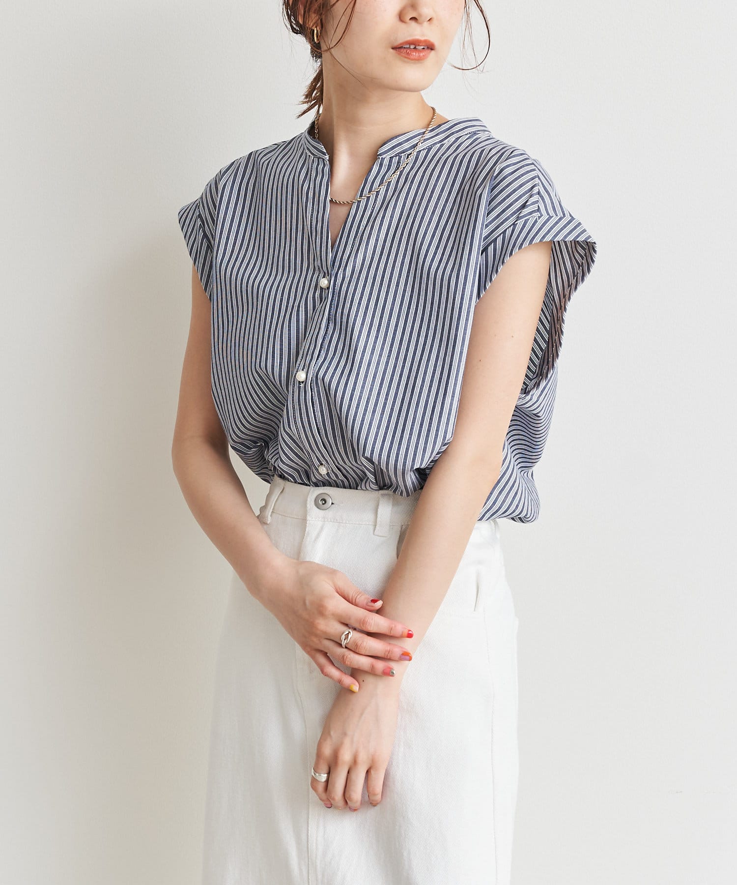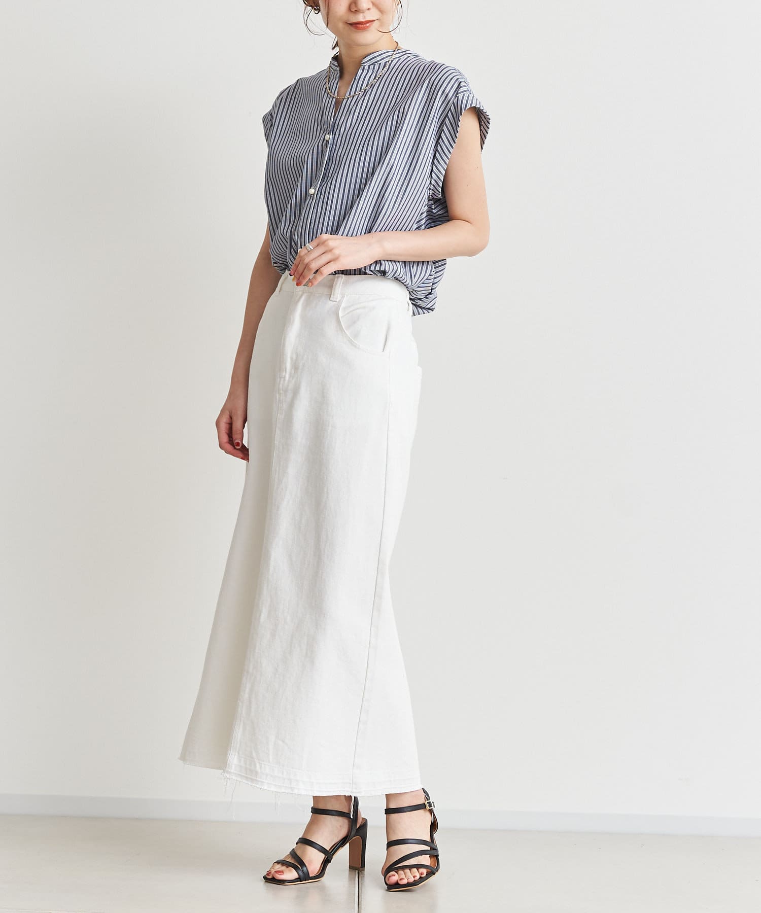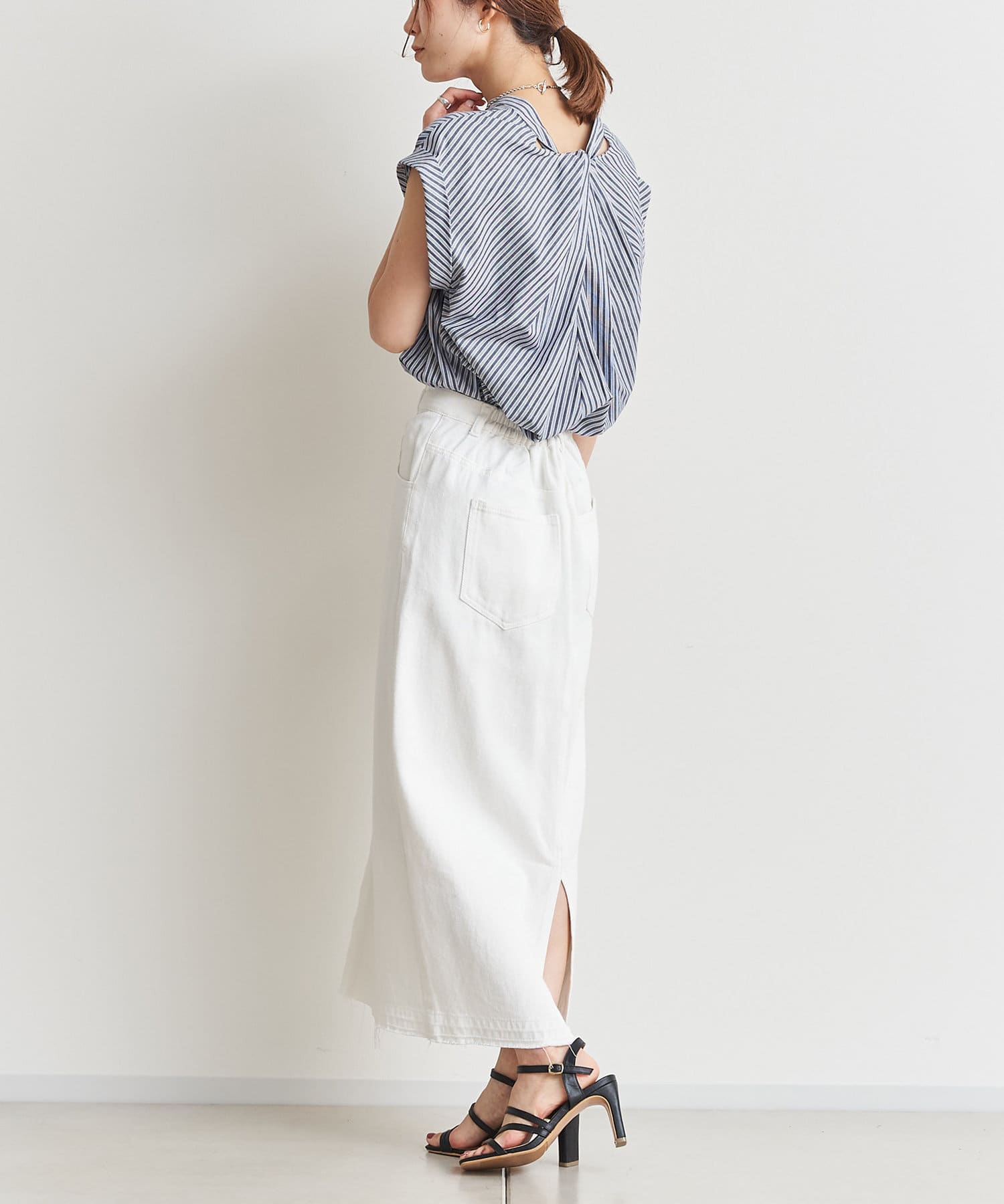 バックツイストパールボタンストライプシャツ