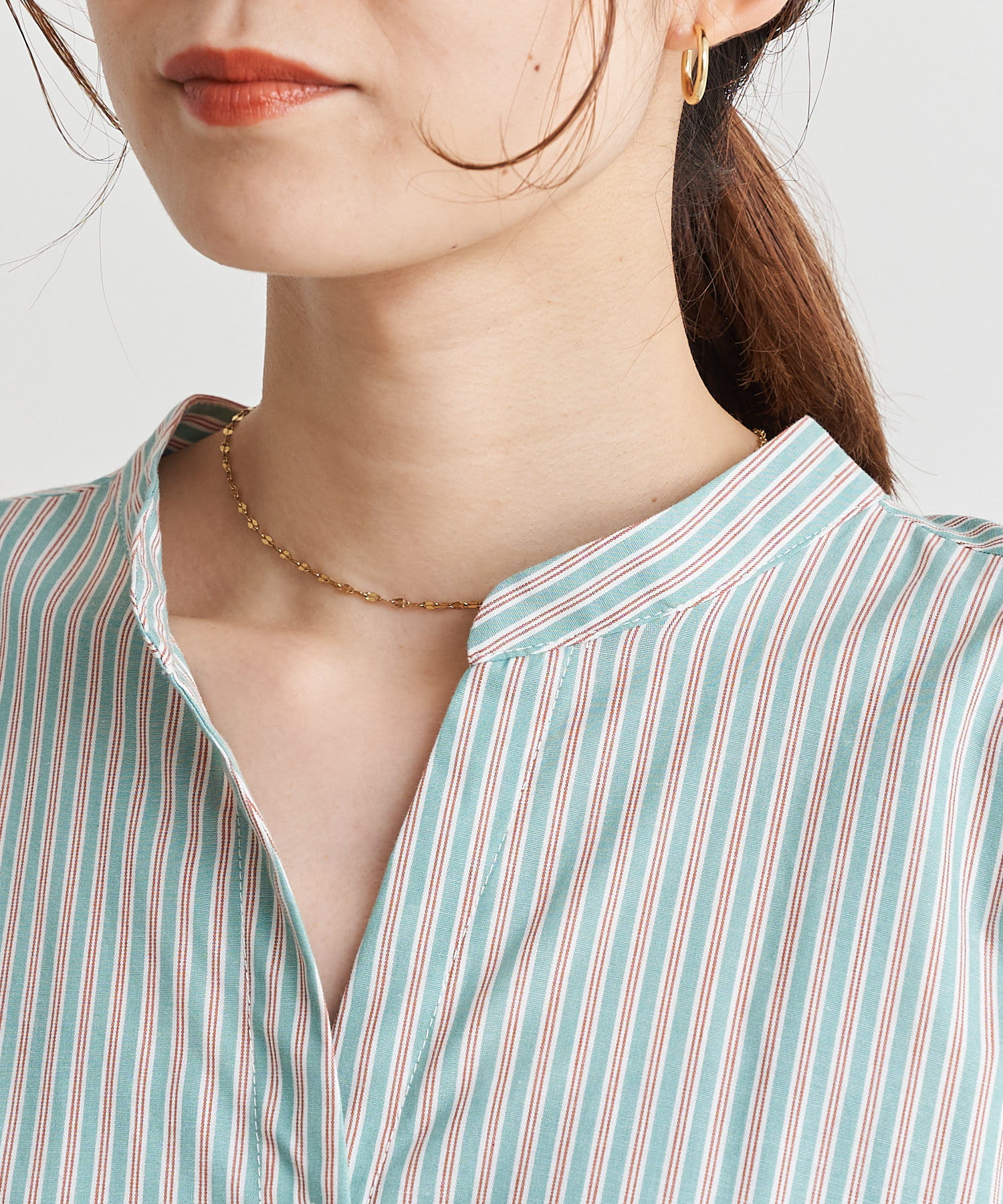 ●スキッパー襟が顔回りをスッキリ見せてくれるのも嬉しいポイント