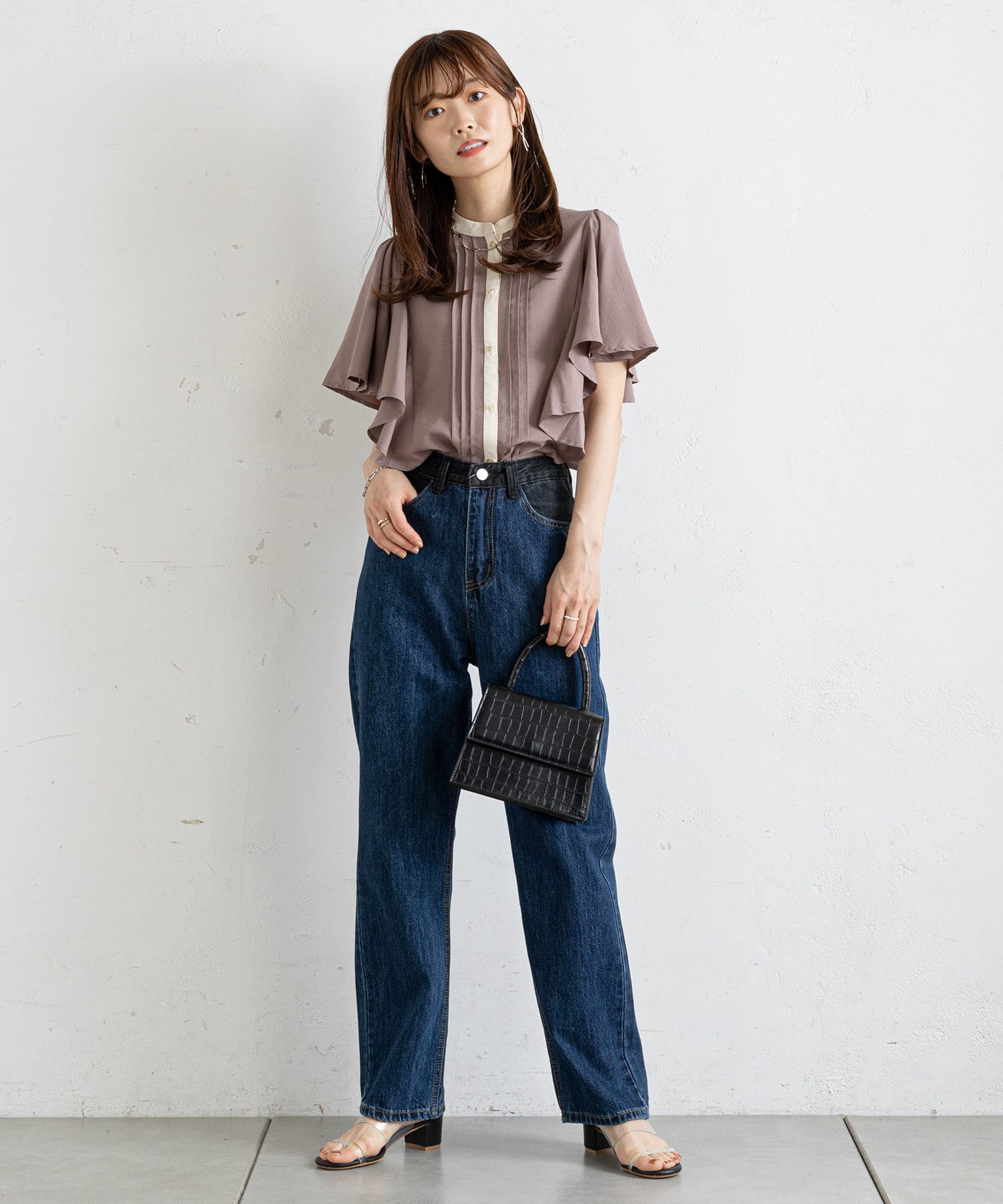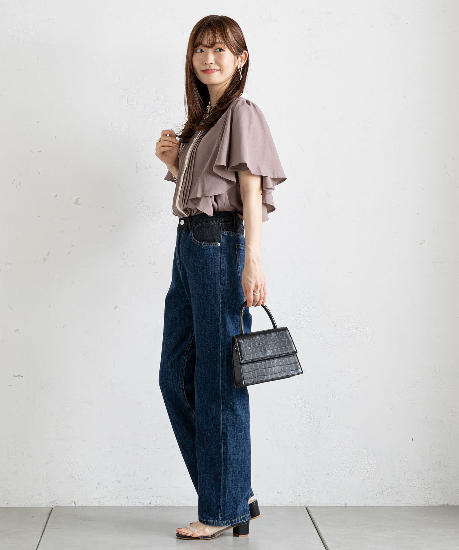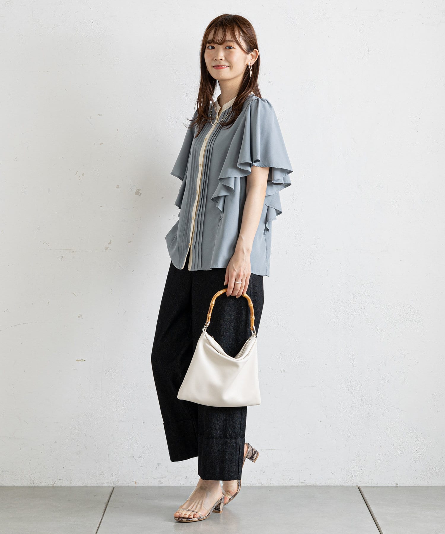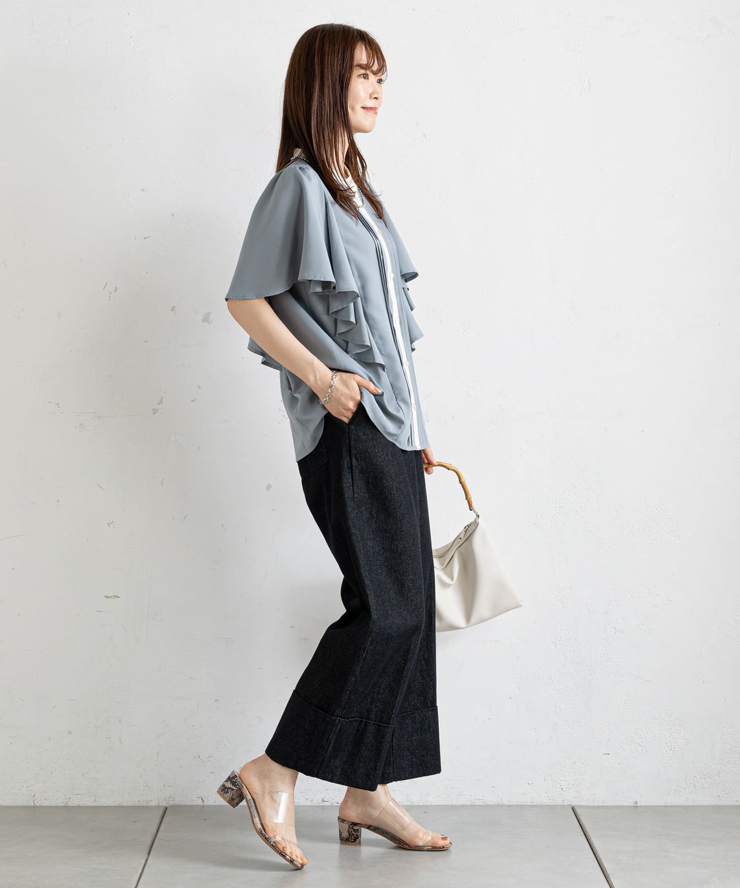 ・フレアスカート合わせで女性らしい華やかスタイルに