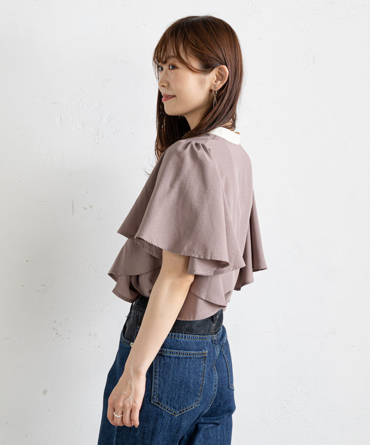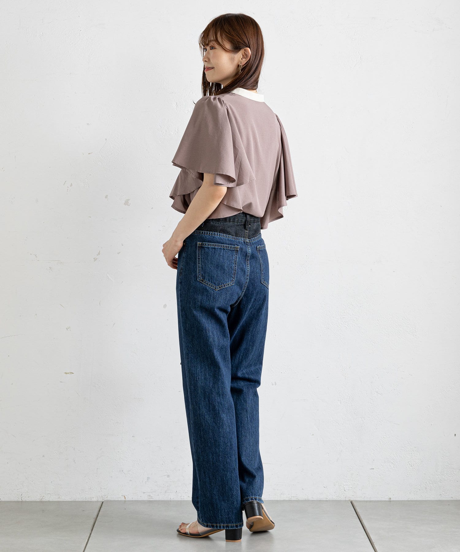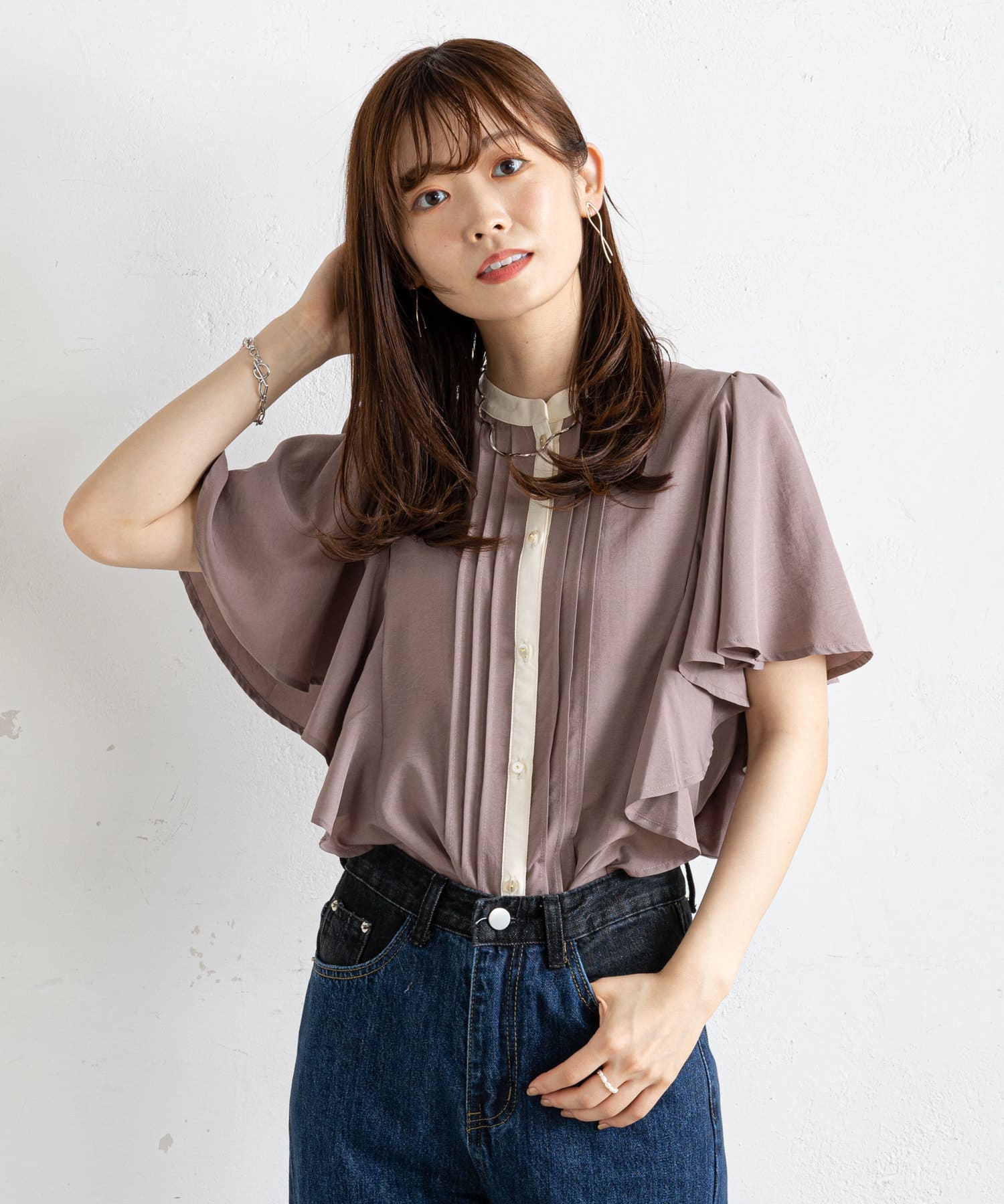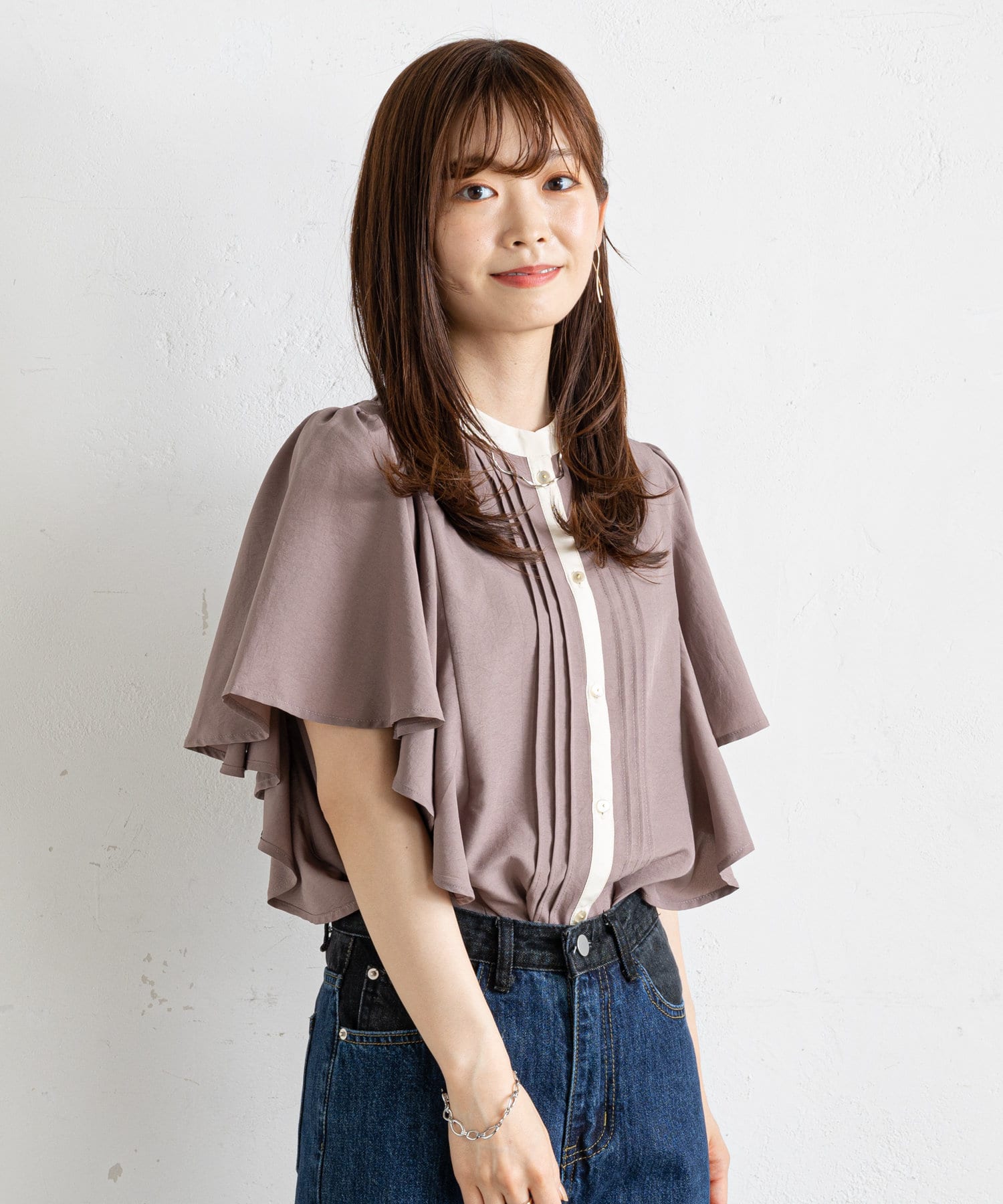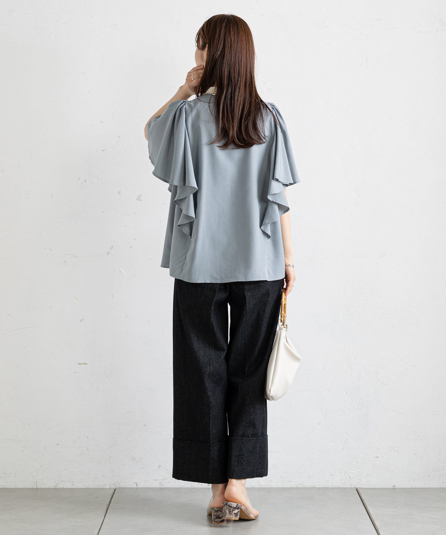 ・フレアスカート合わせで女性らしい華やかスタイルに