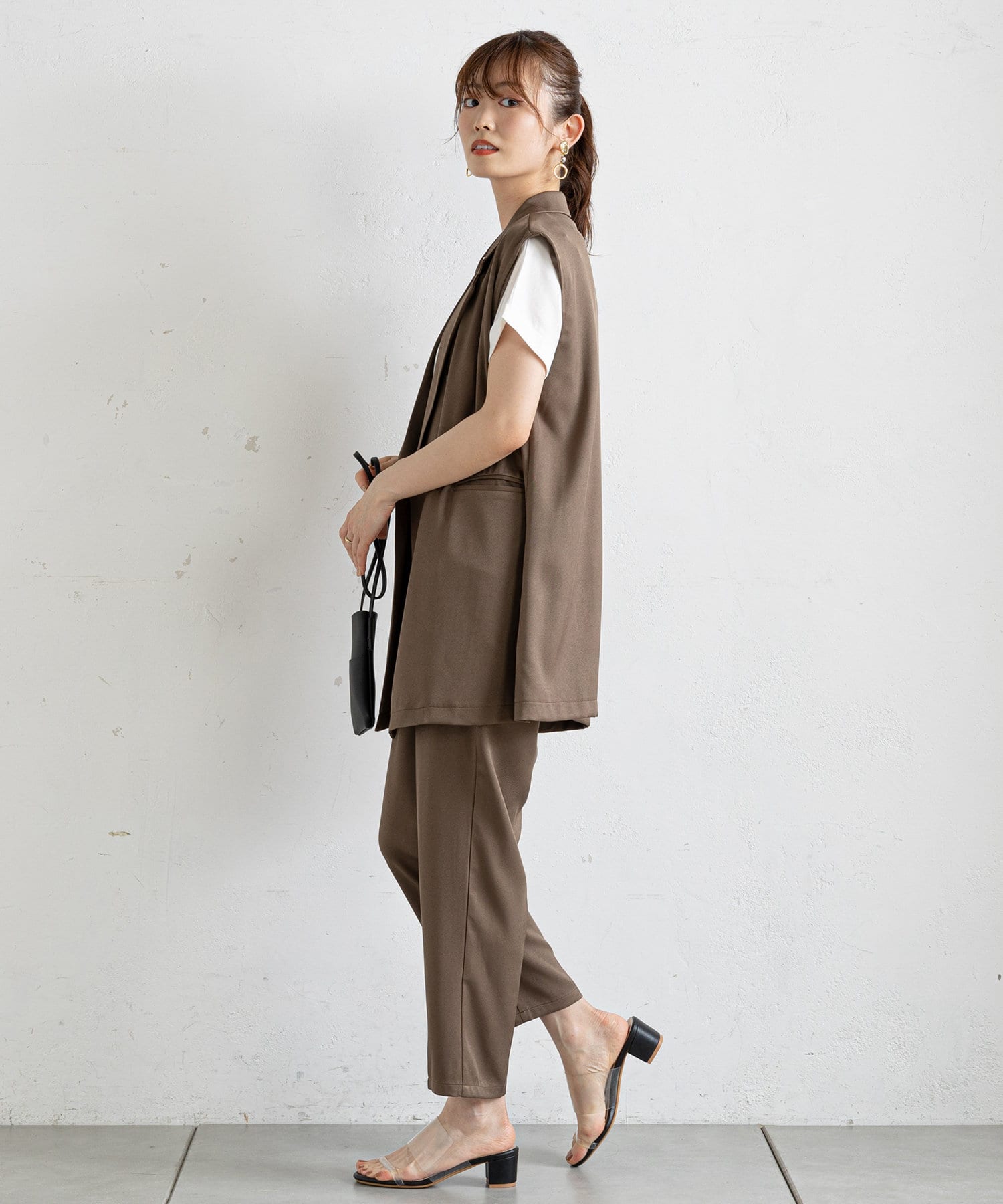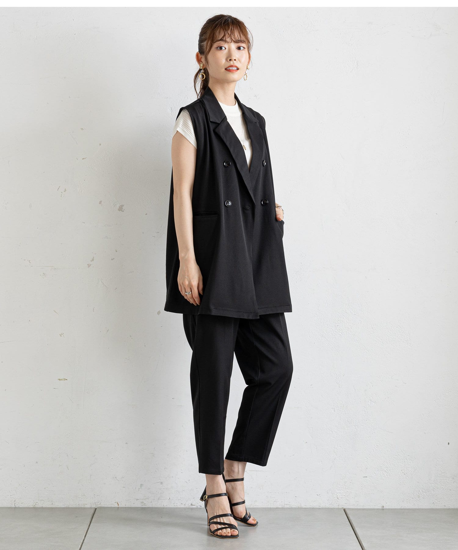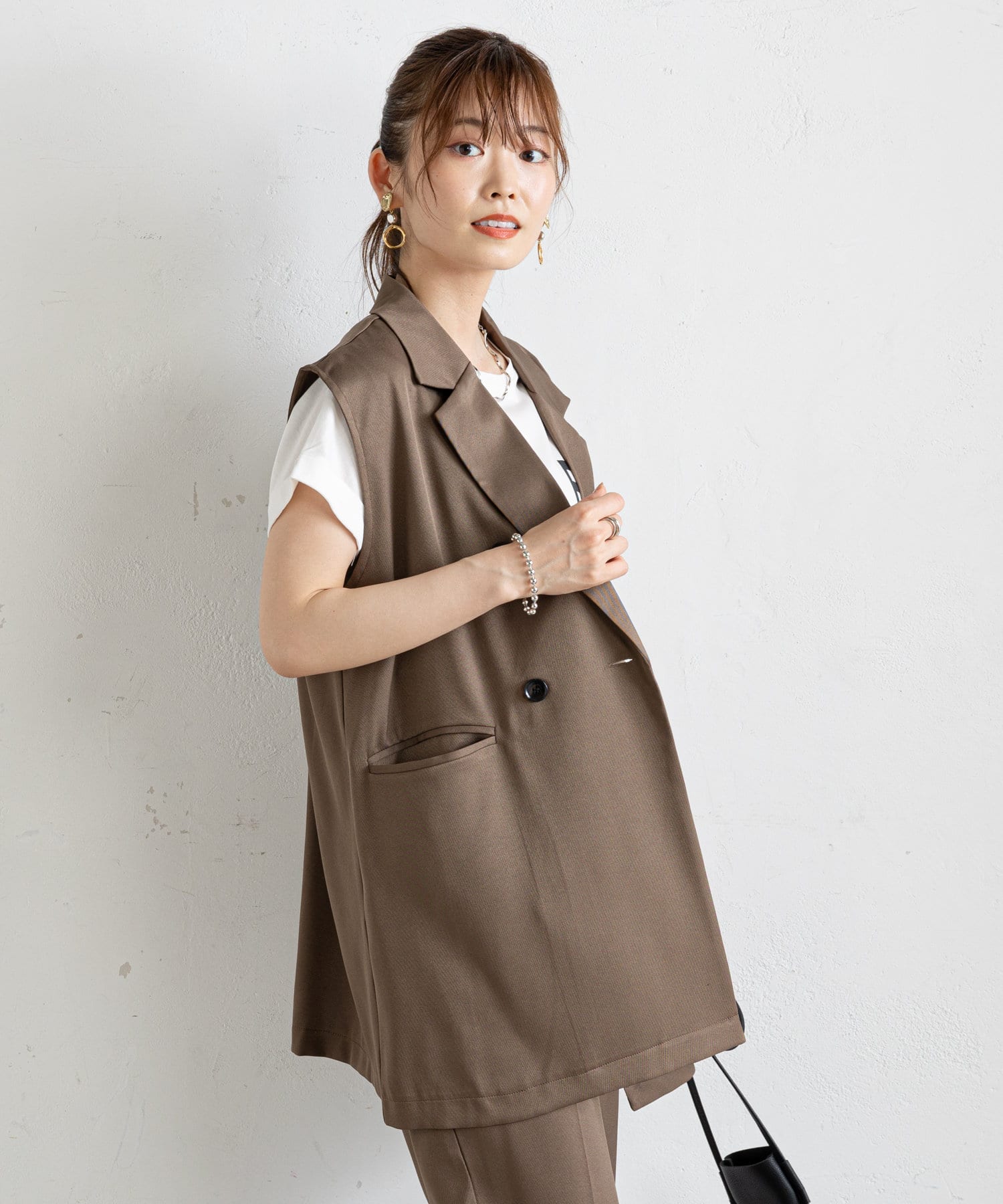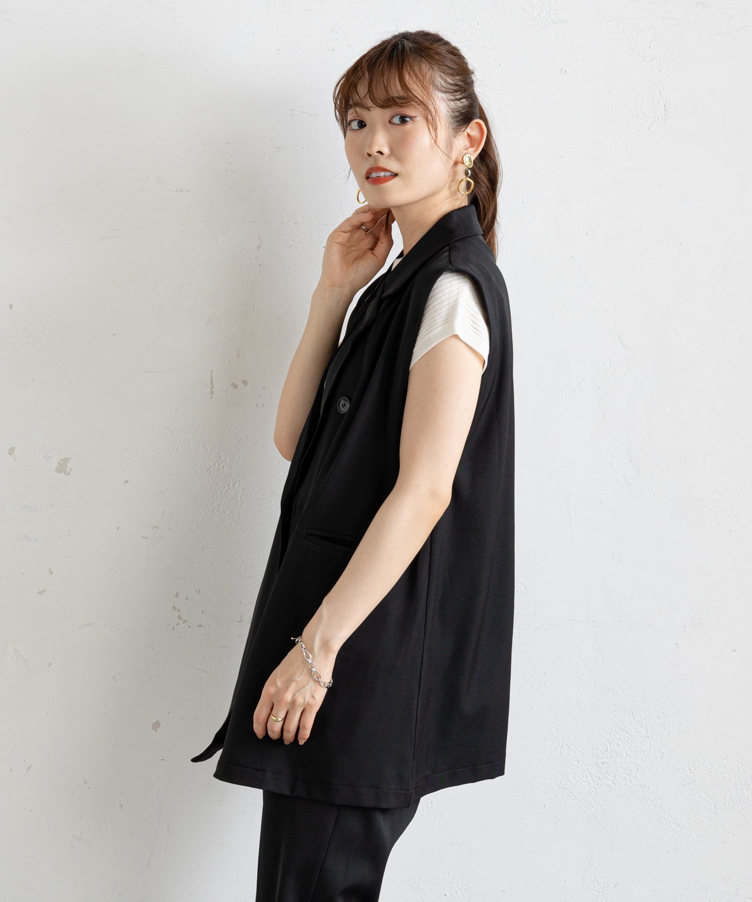 ●旬顔なノースリーブタイプのテーラードジャケットと