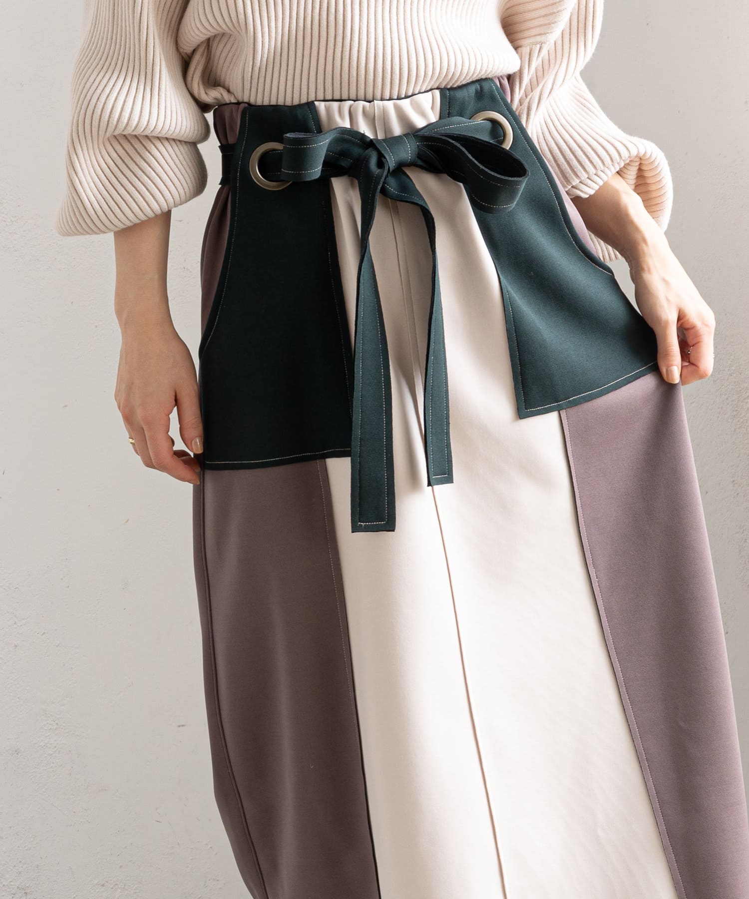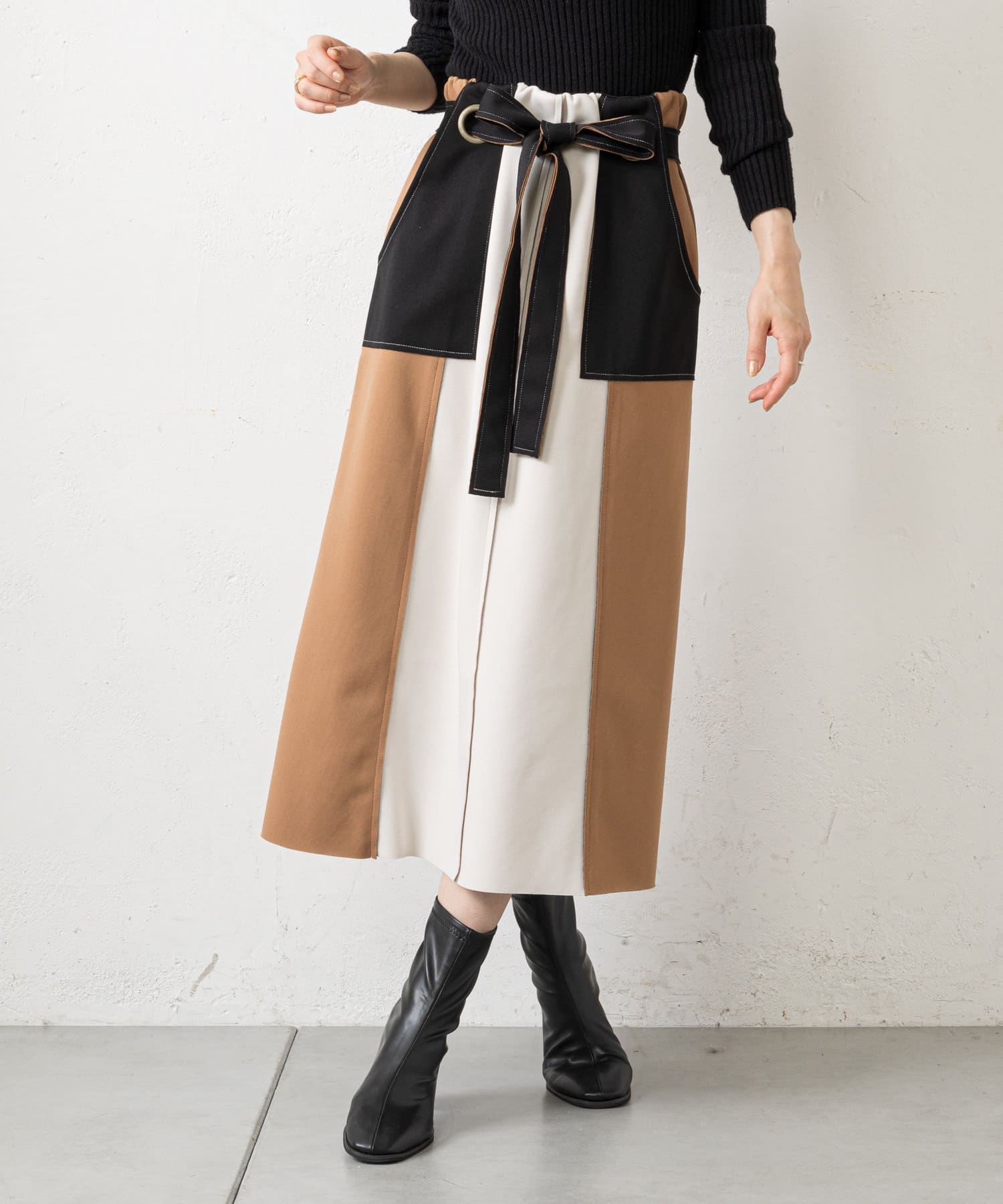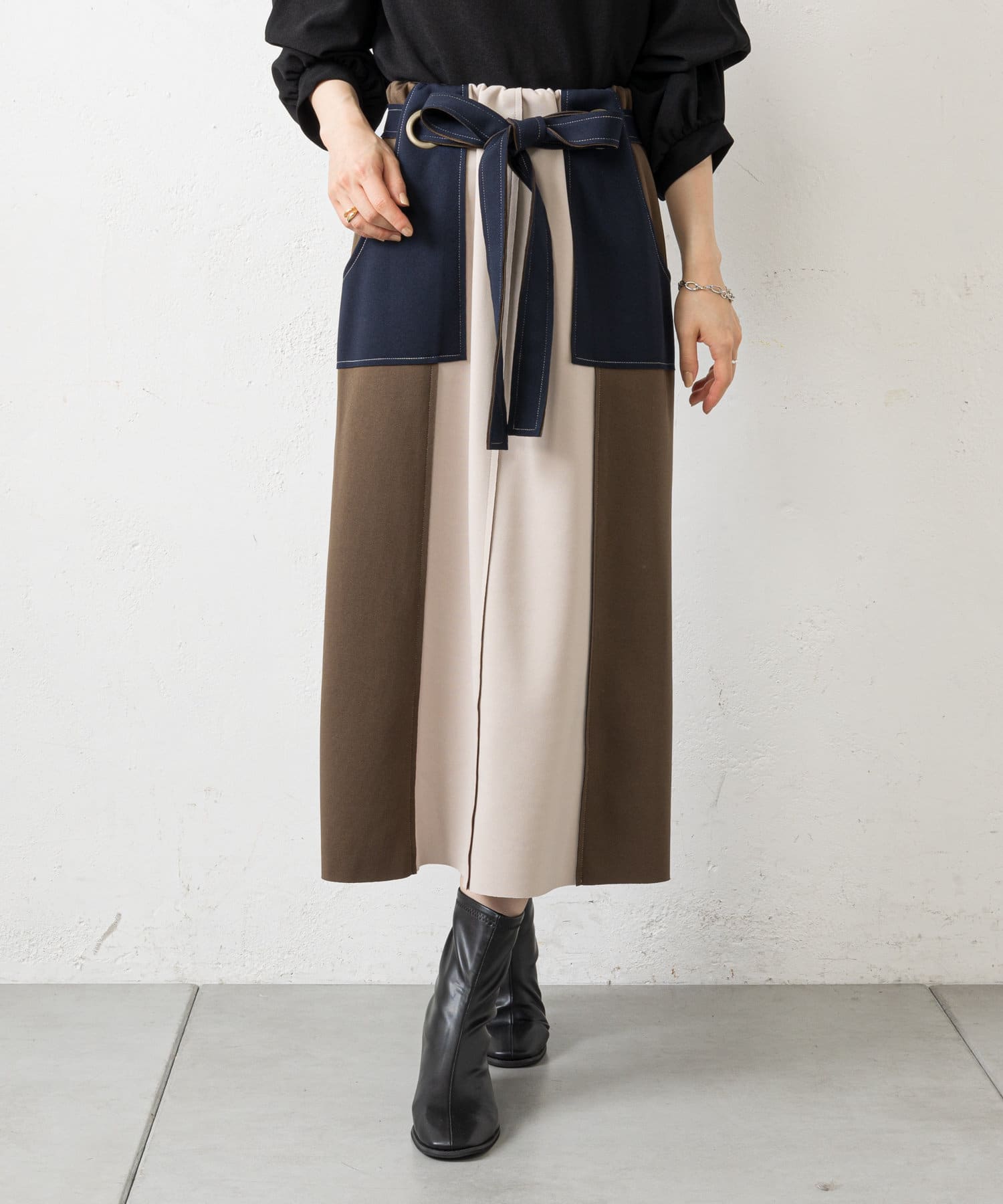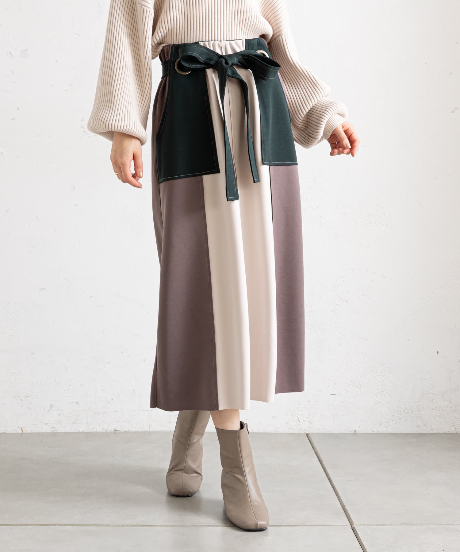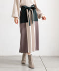 【ウエストゴム仕様】マルチカラー配色ナロースカート