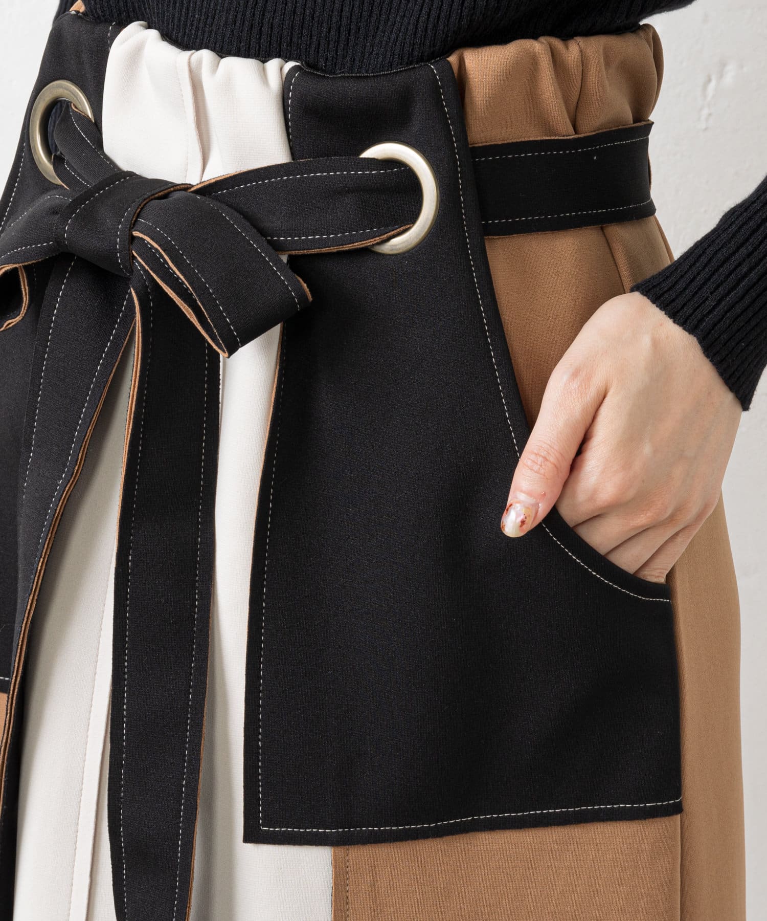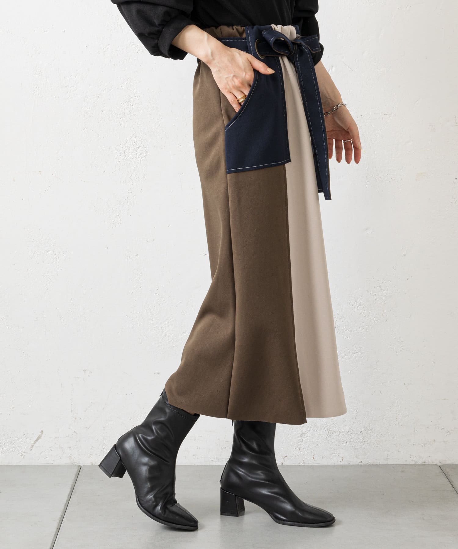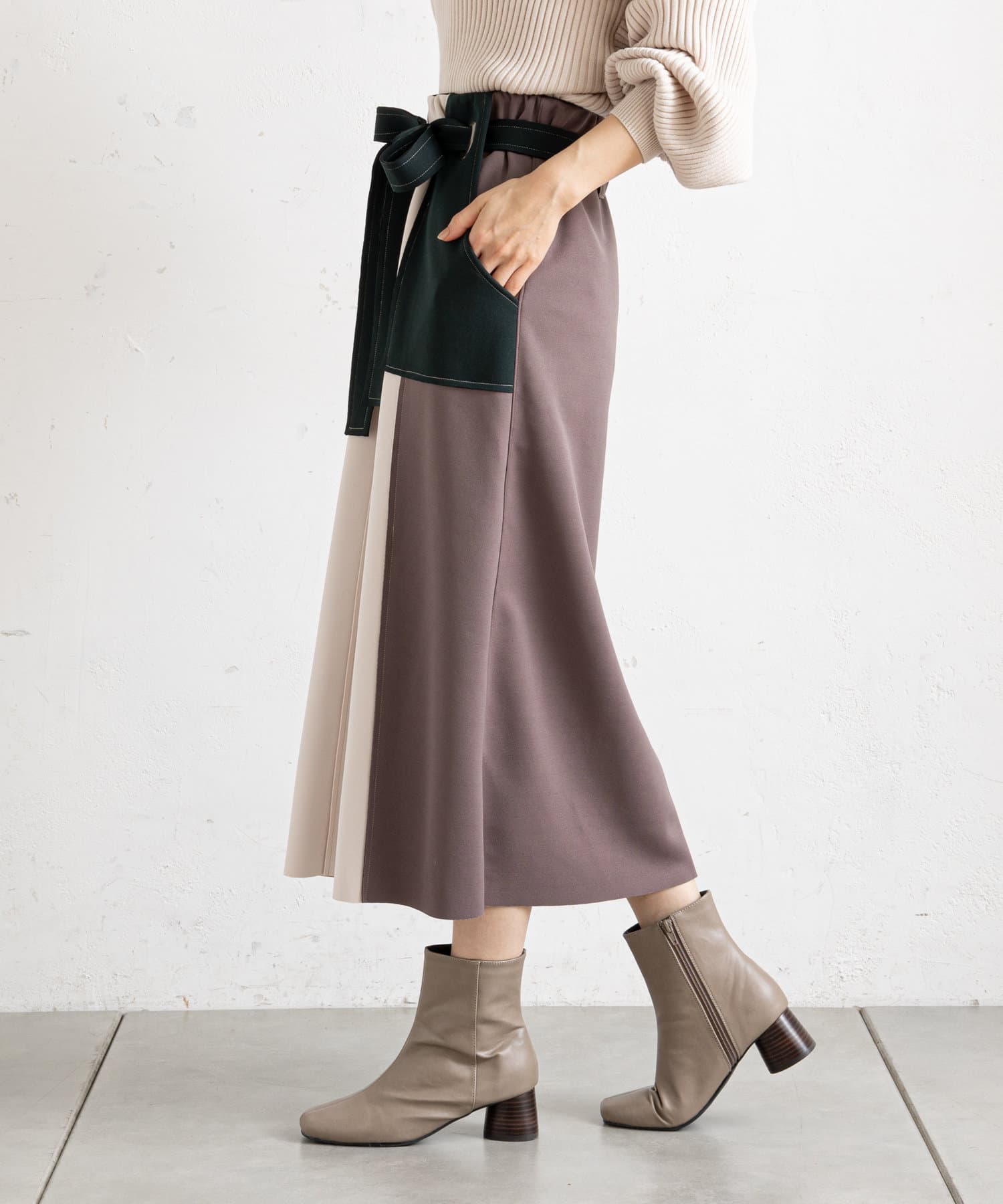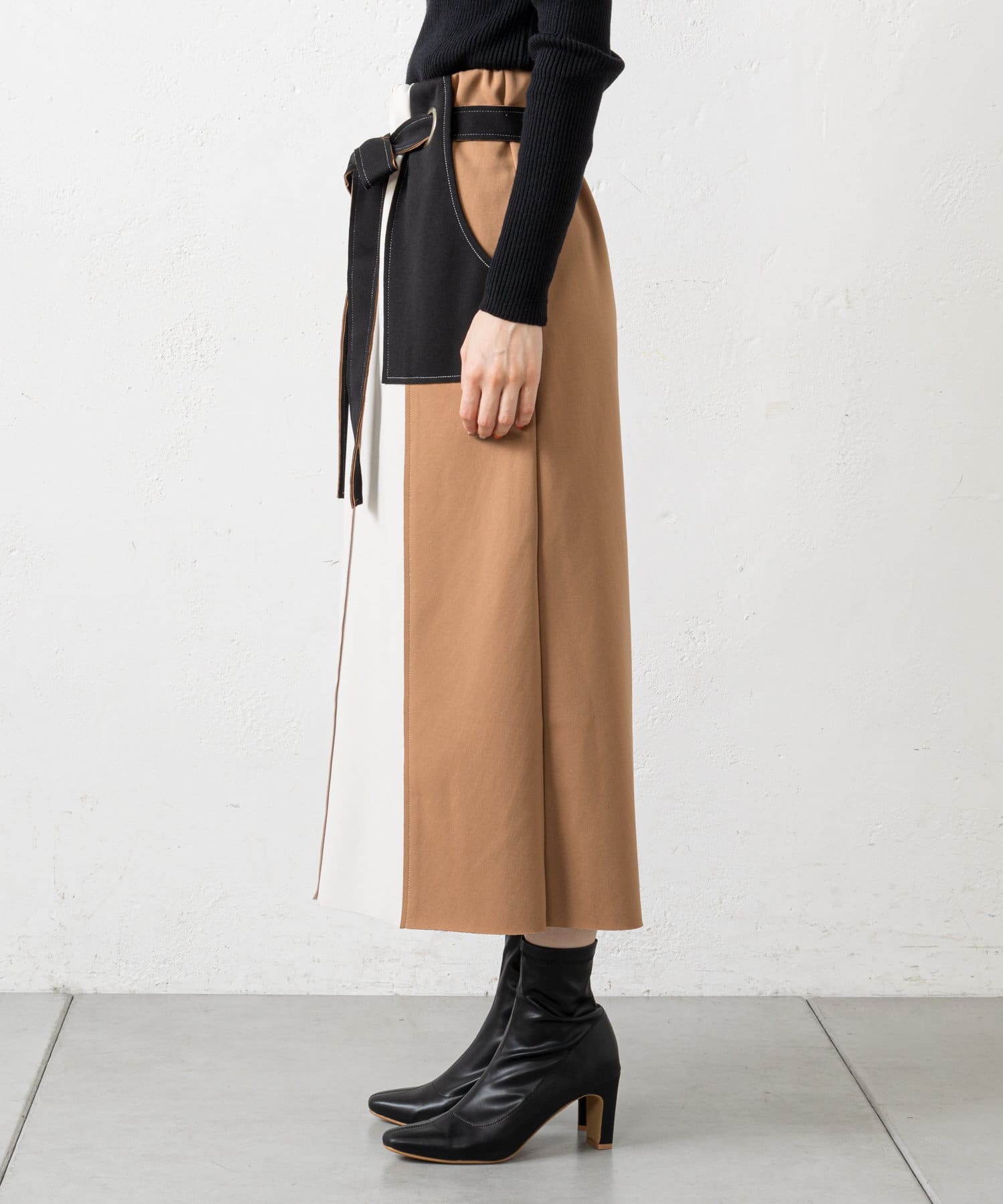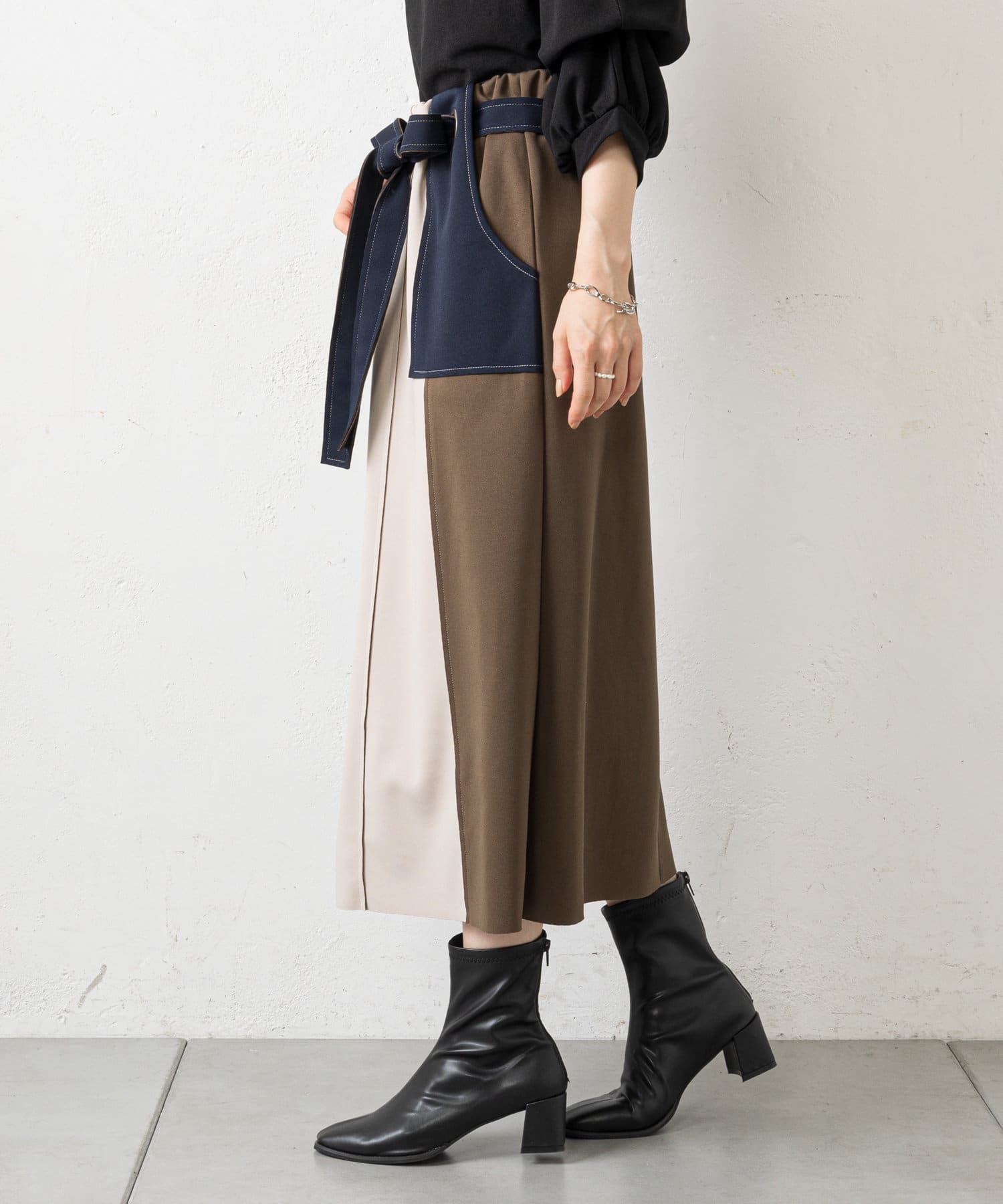 【ウエストゴム仕様】マルチカラー配色ナロースカート