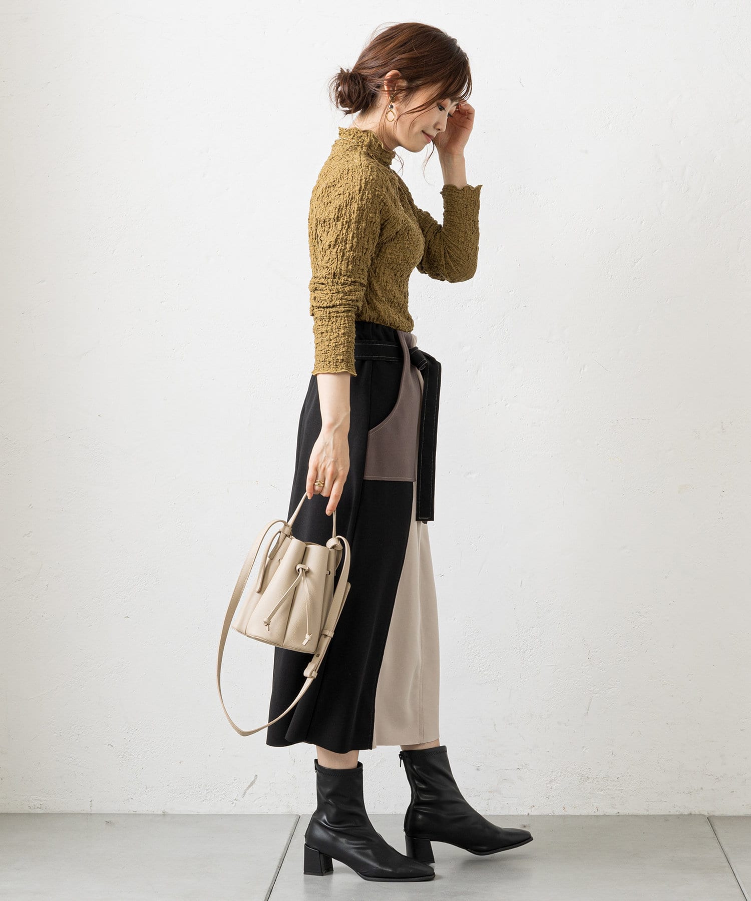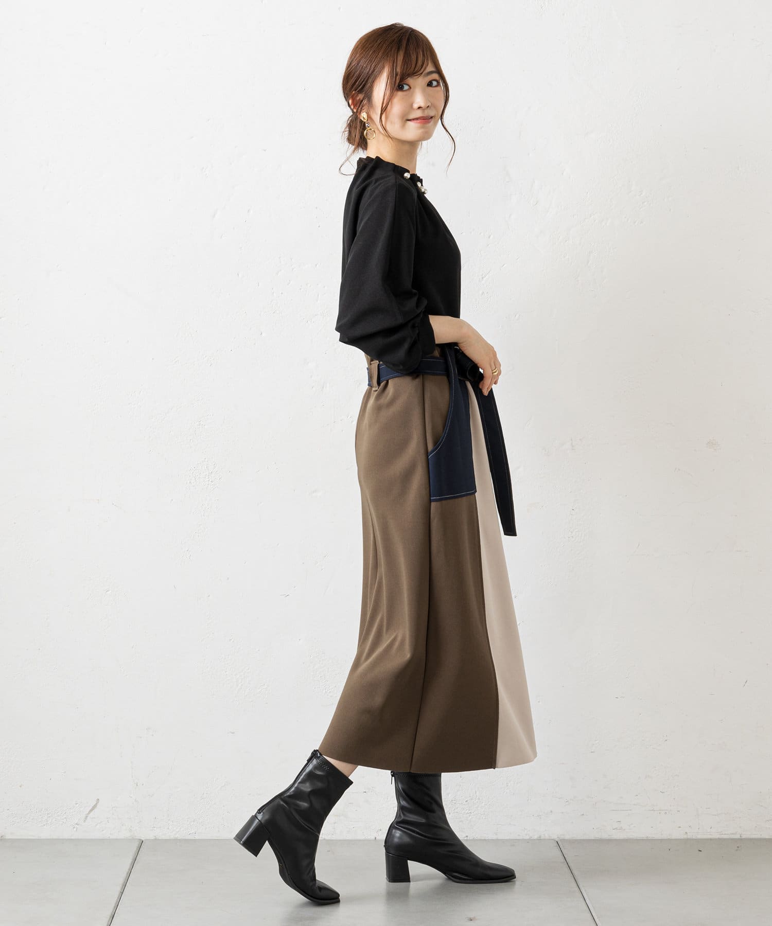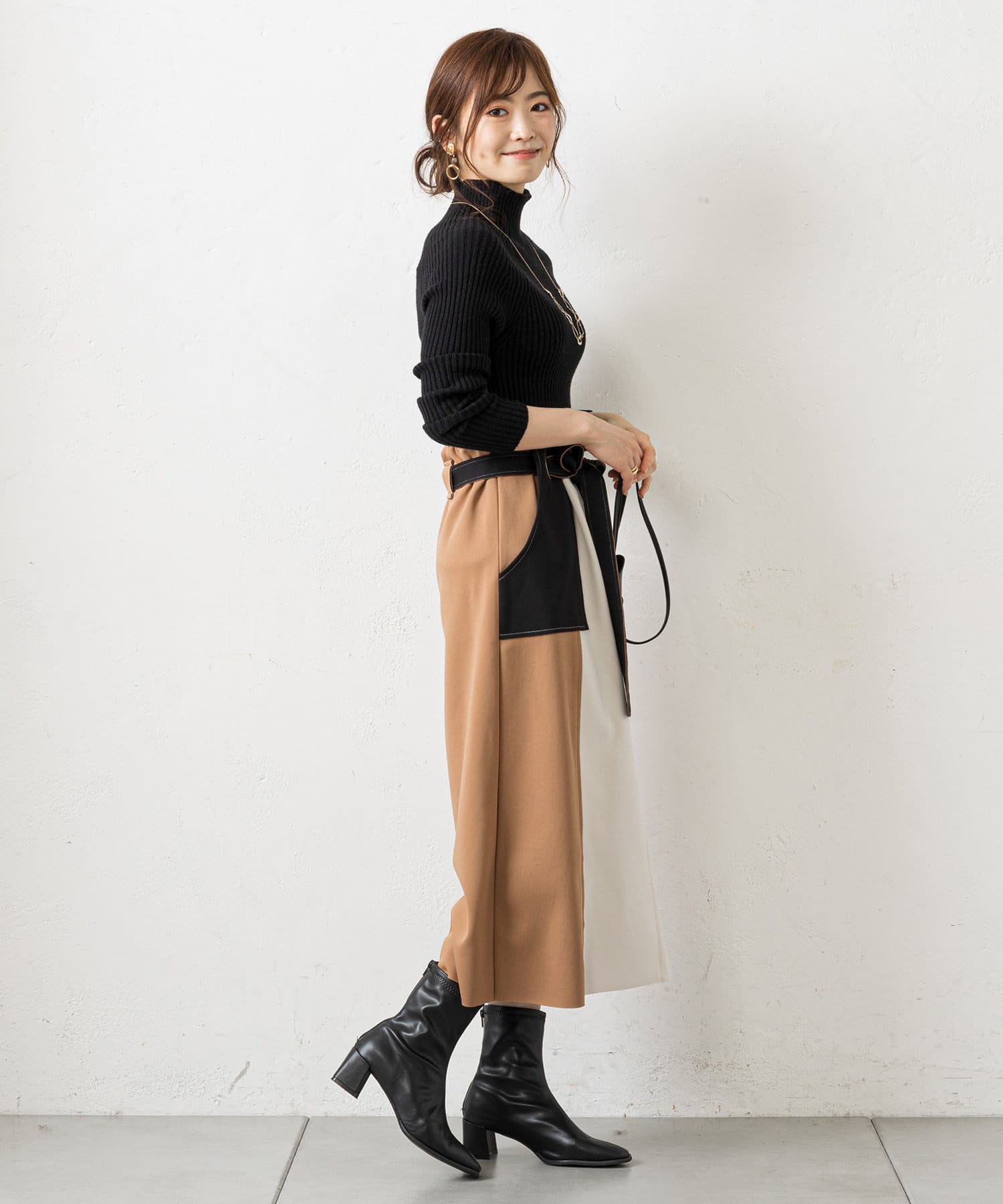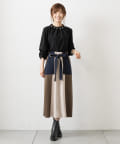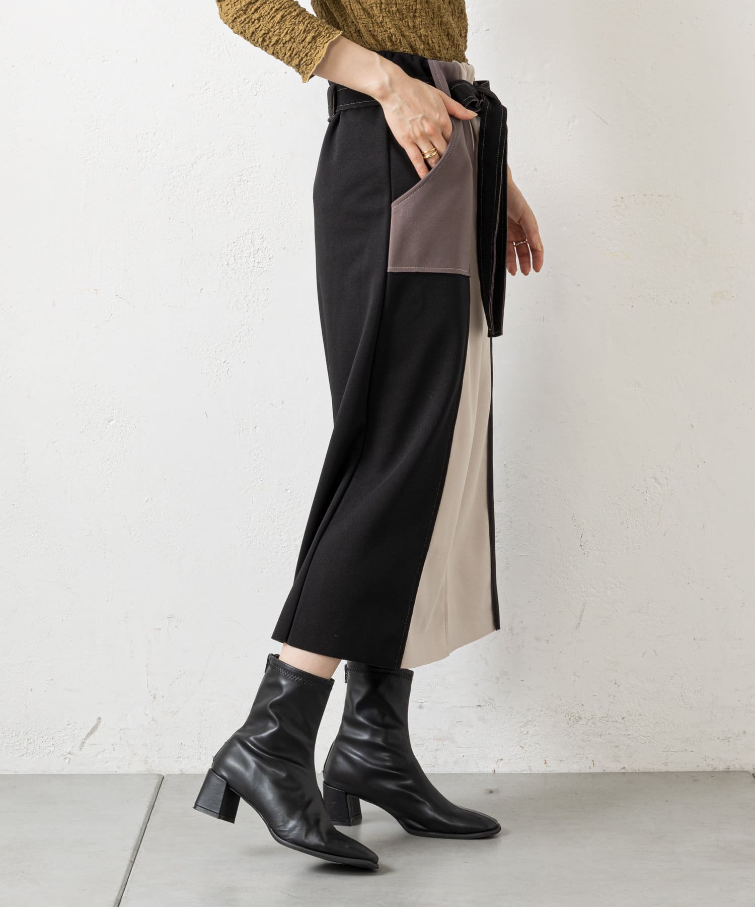 【ウエストゴム仕様】マルチカラー配色ナロースカート