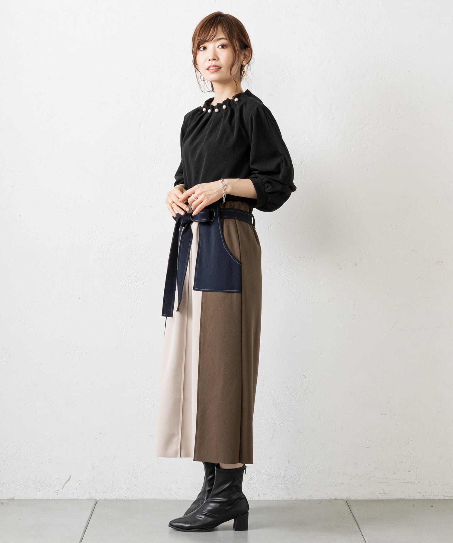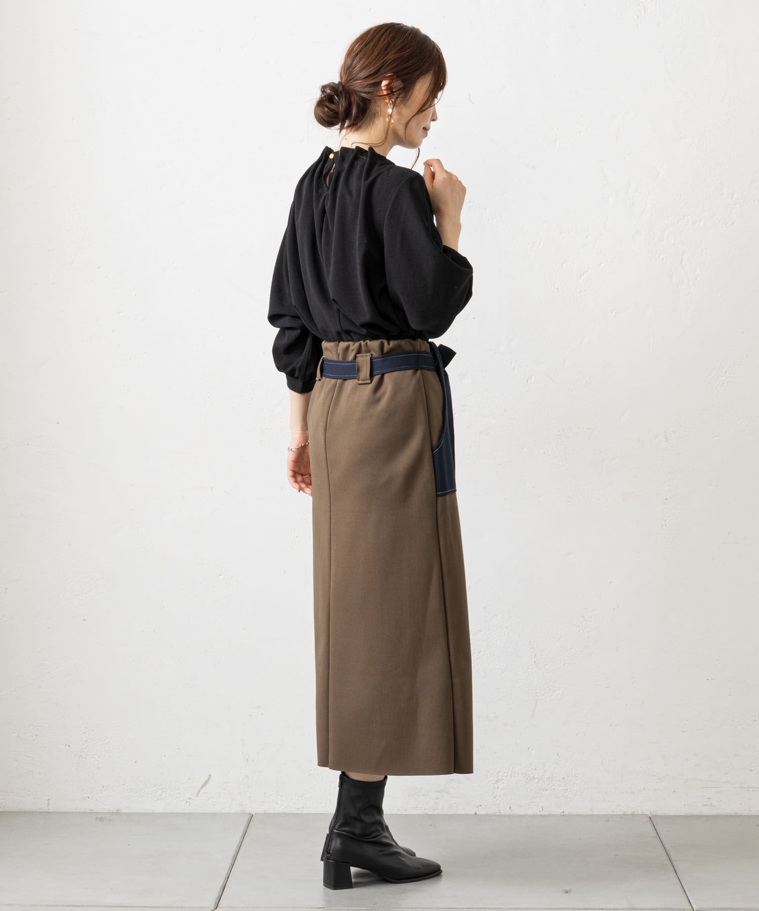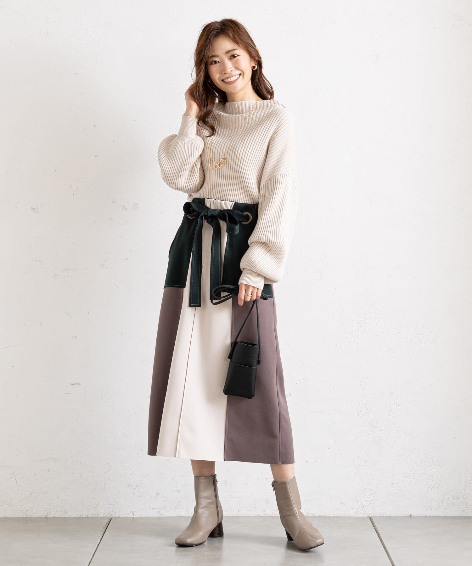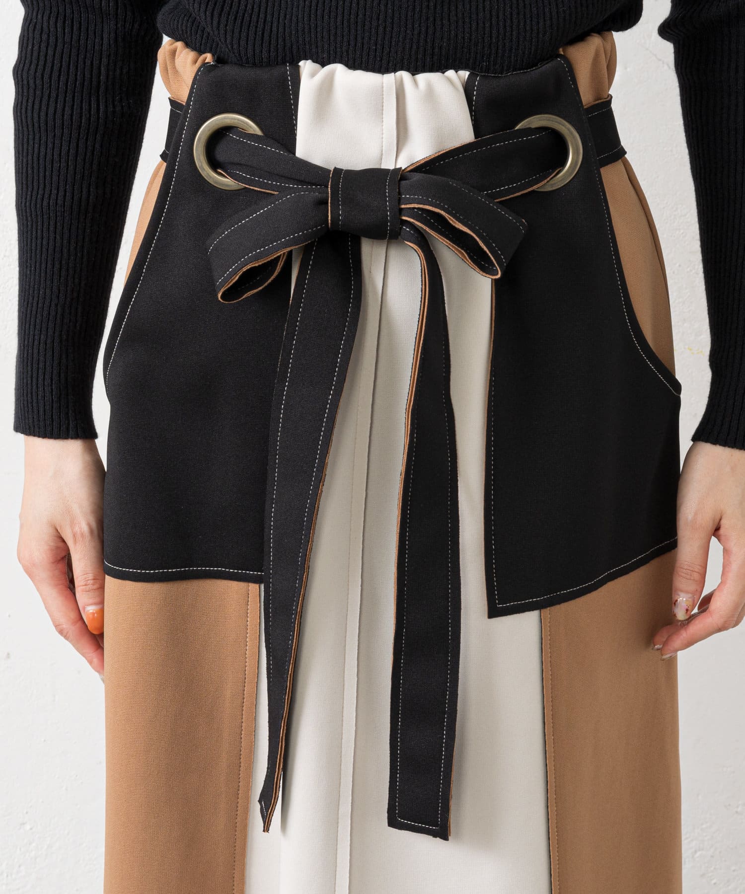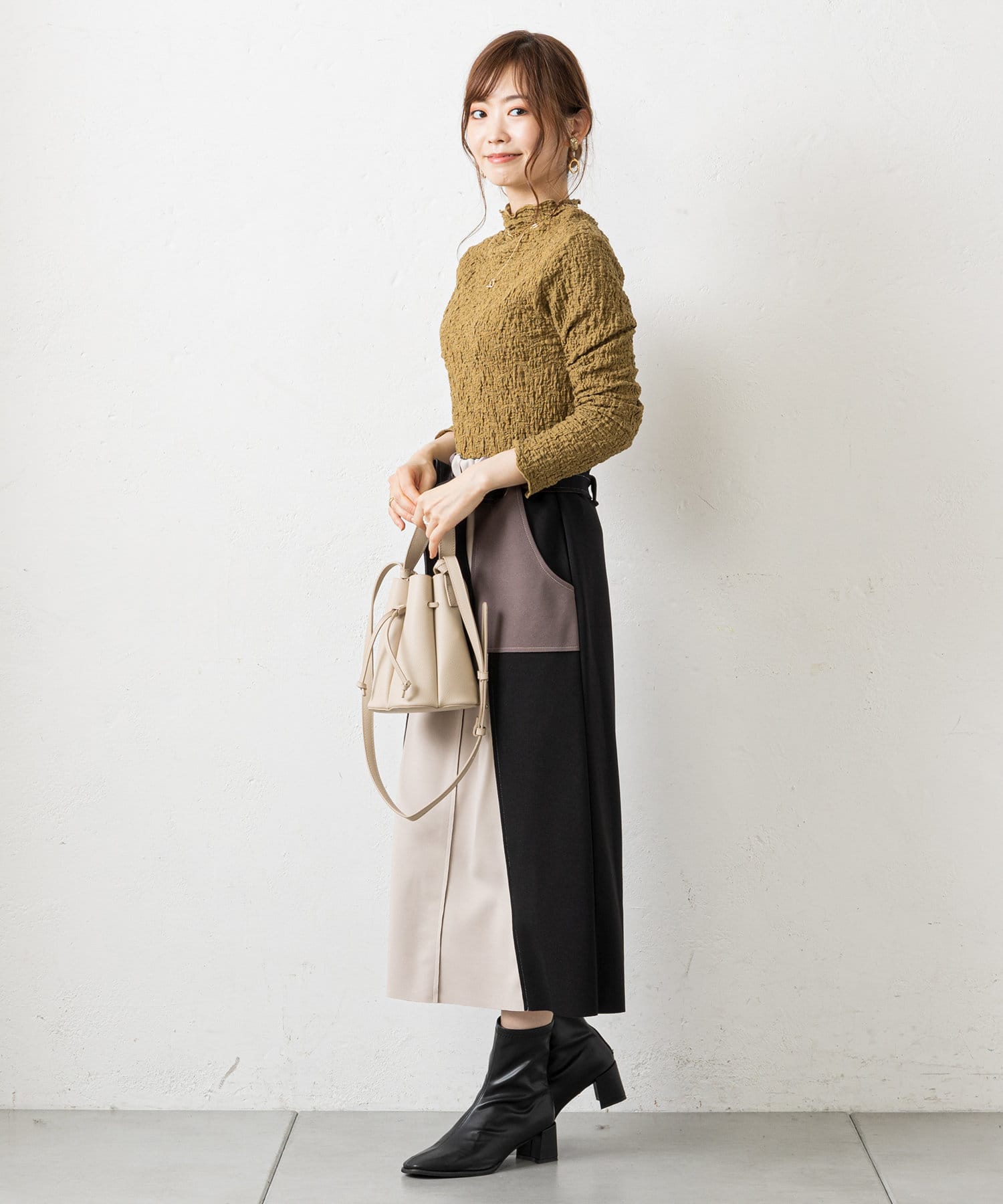 【ウエストゴム仕様】マルチカラー配色ナロースカート