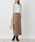 ●V開きでノーカラーのネックラインが顔回りをスッキリ見せてくれる効果も