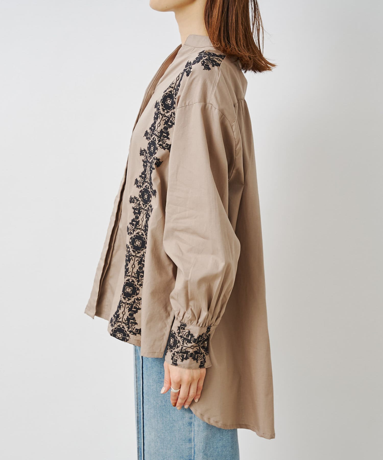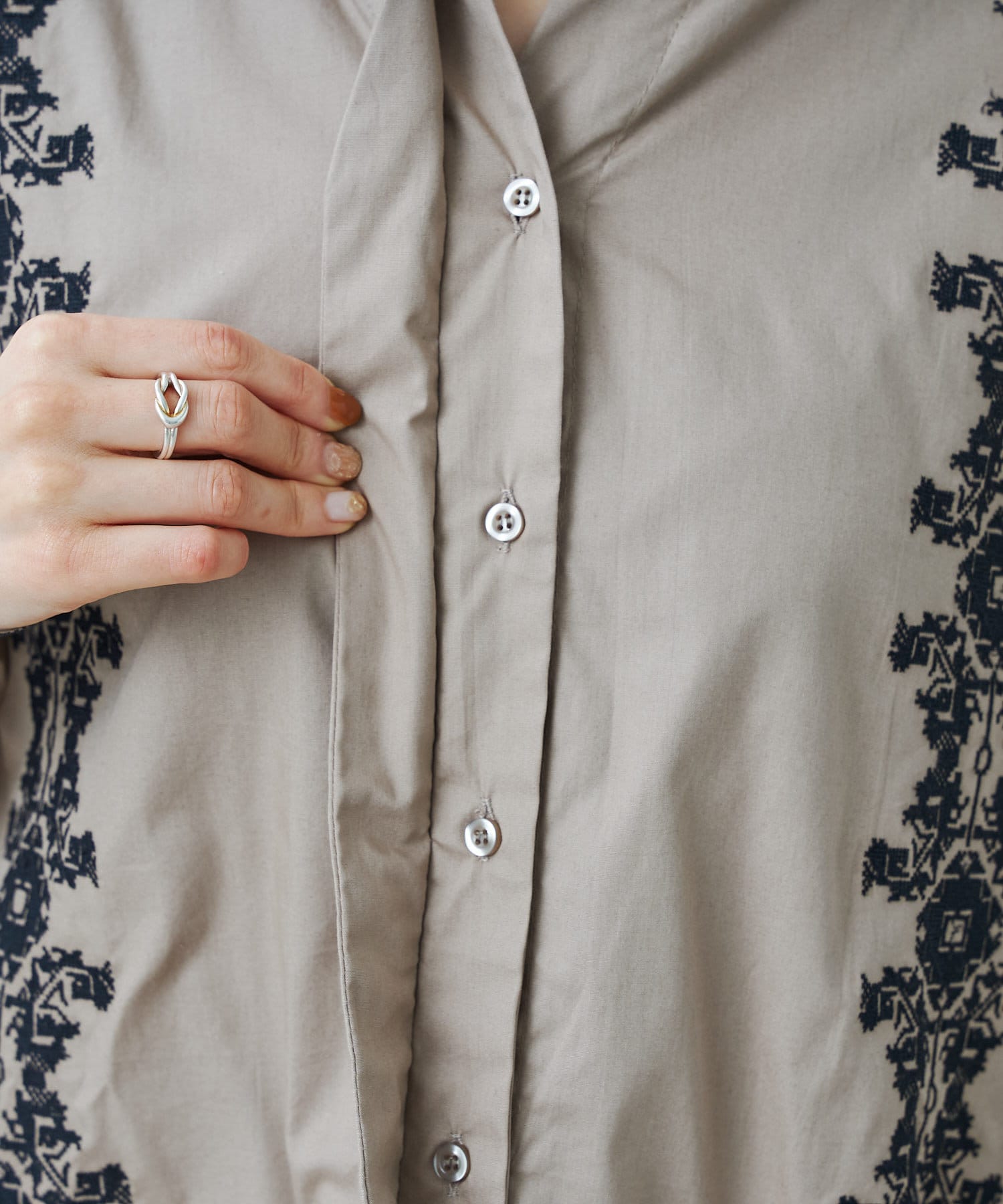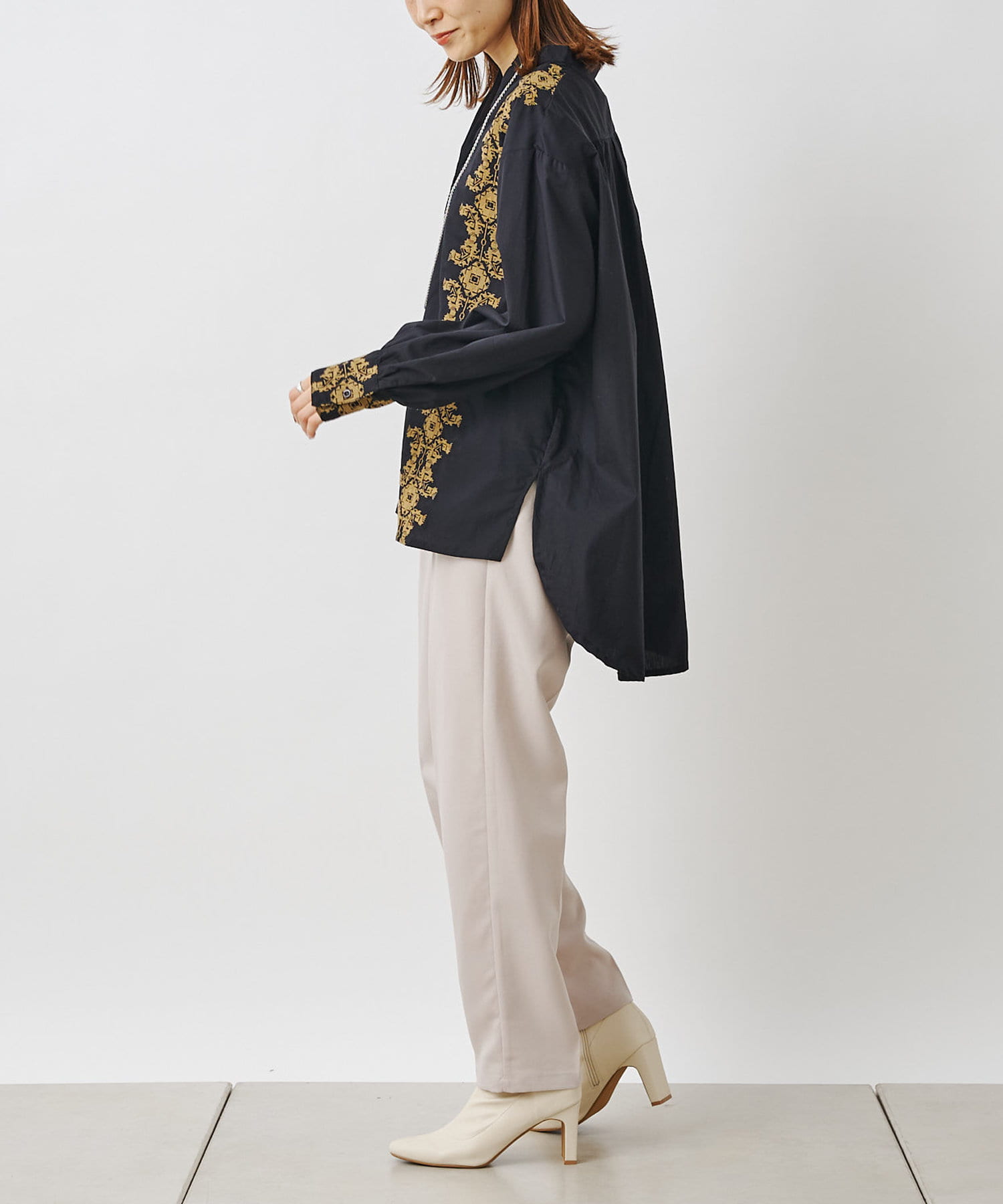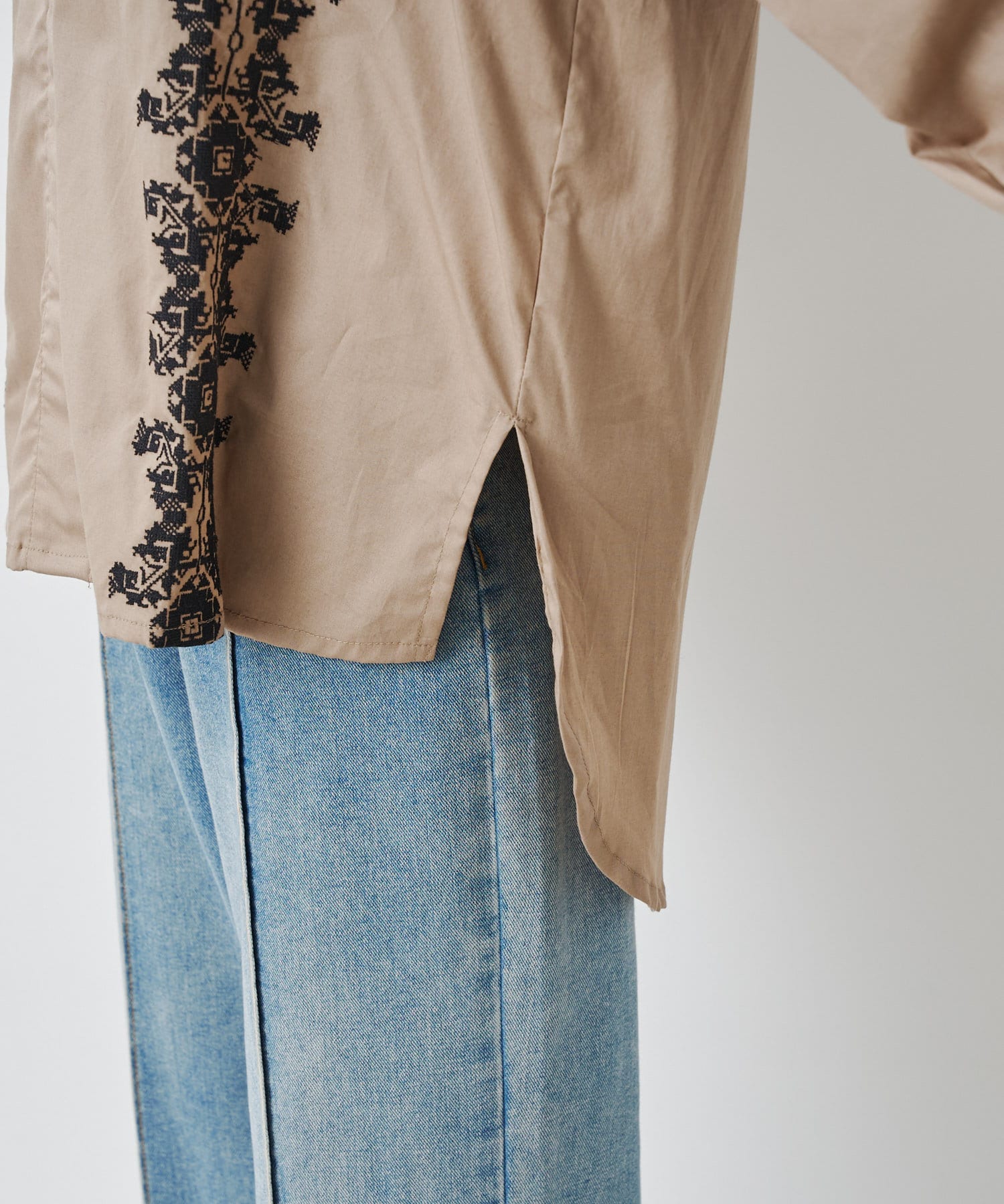 ●フロント&カフスに施した刺繍デザインが目を引く大人シャツ