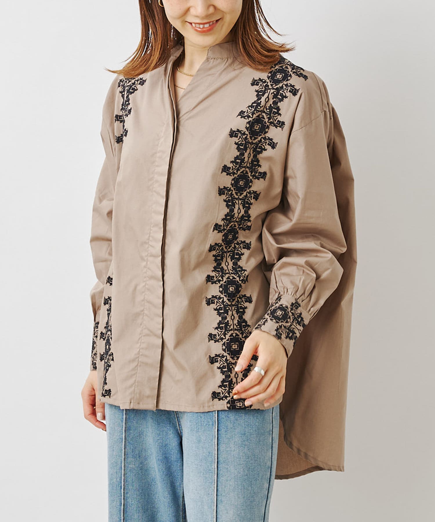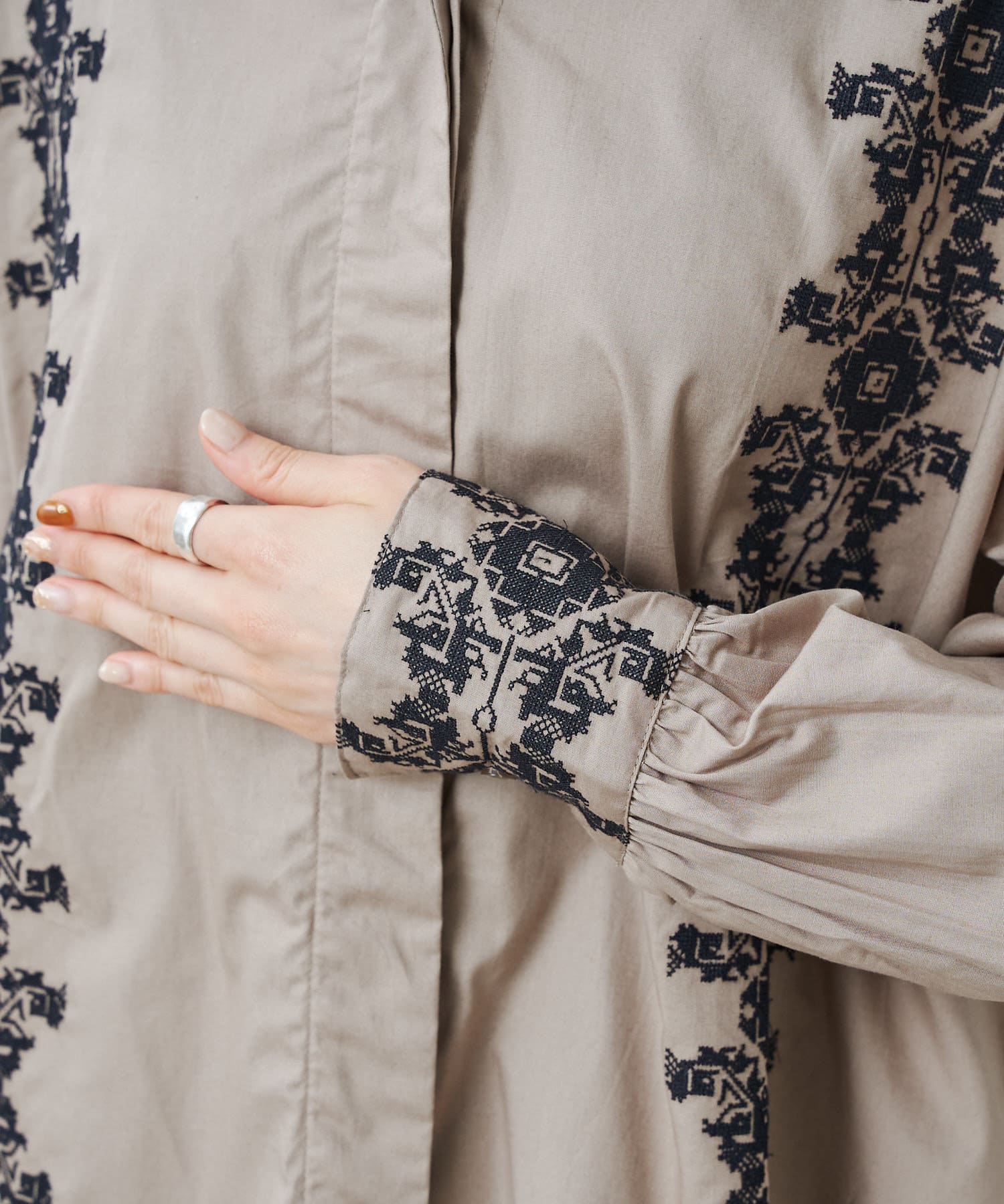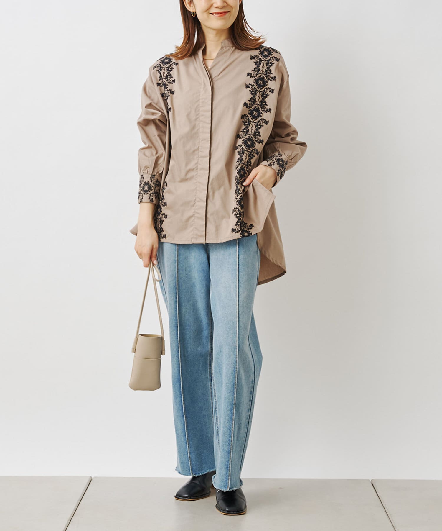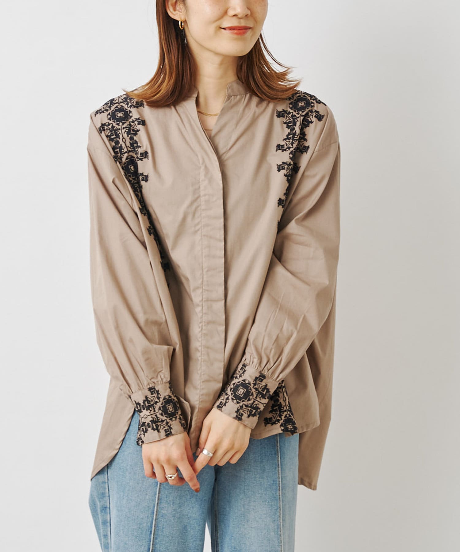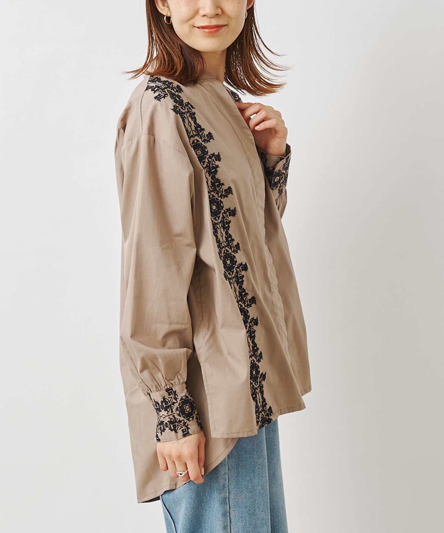 ●フロント&カフスに施した刺繍デザインが目を引く大人シャツ