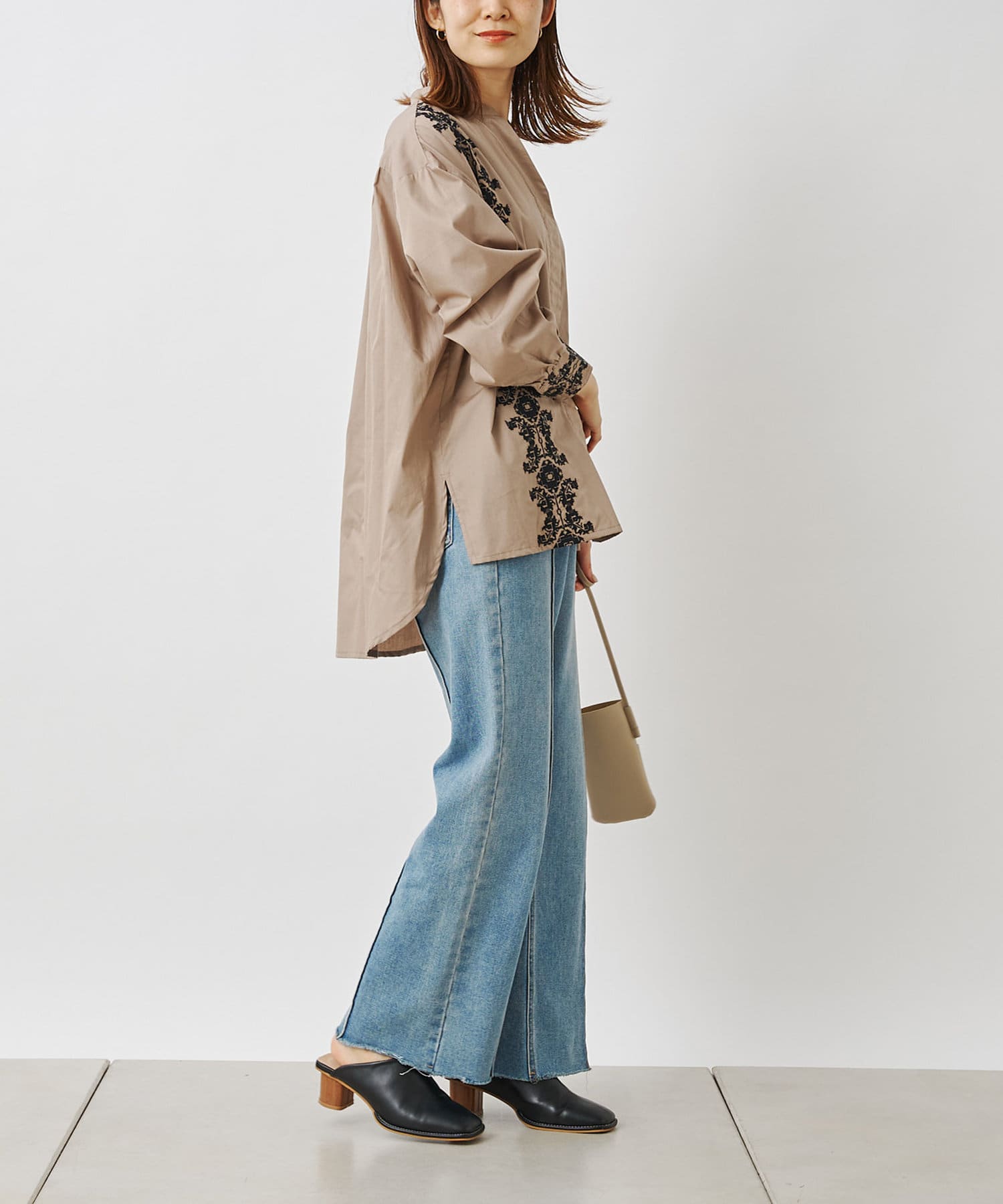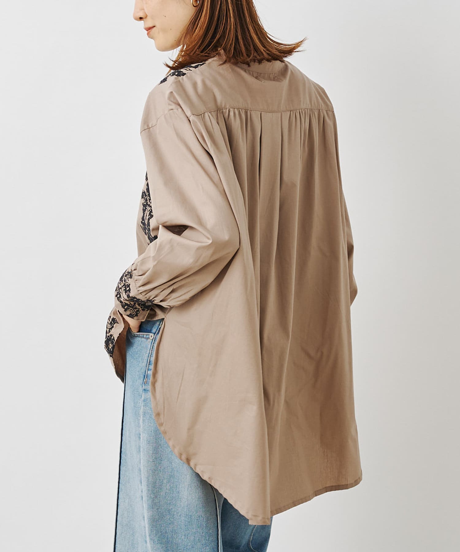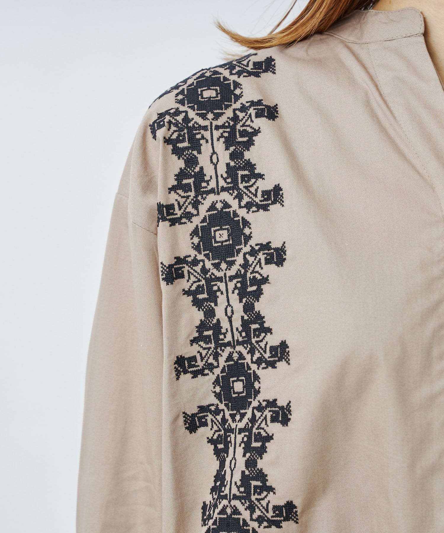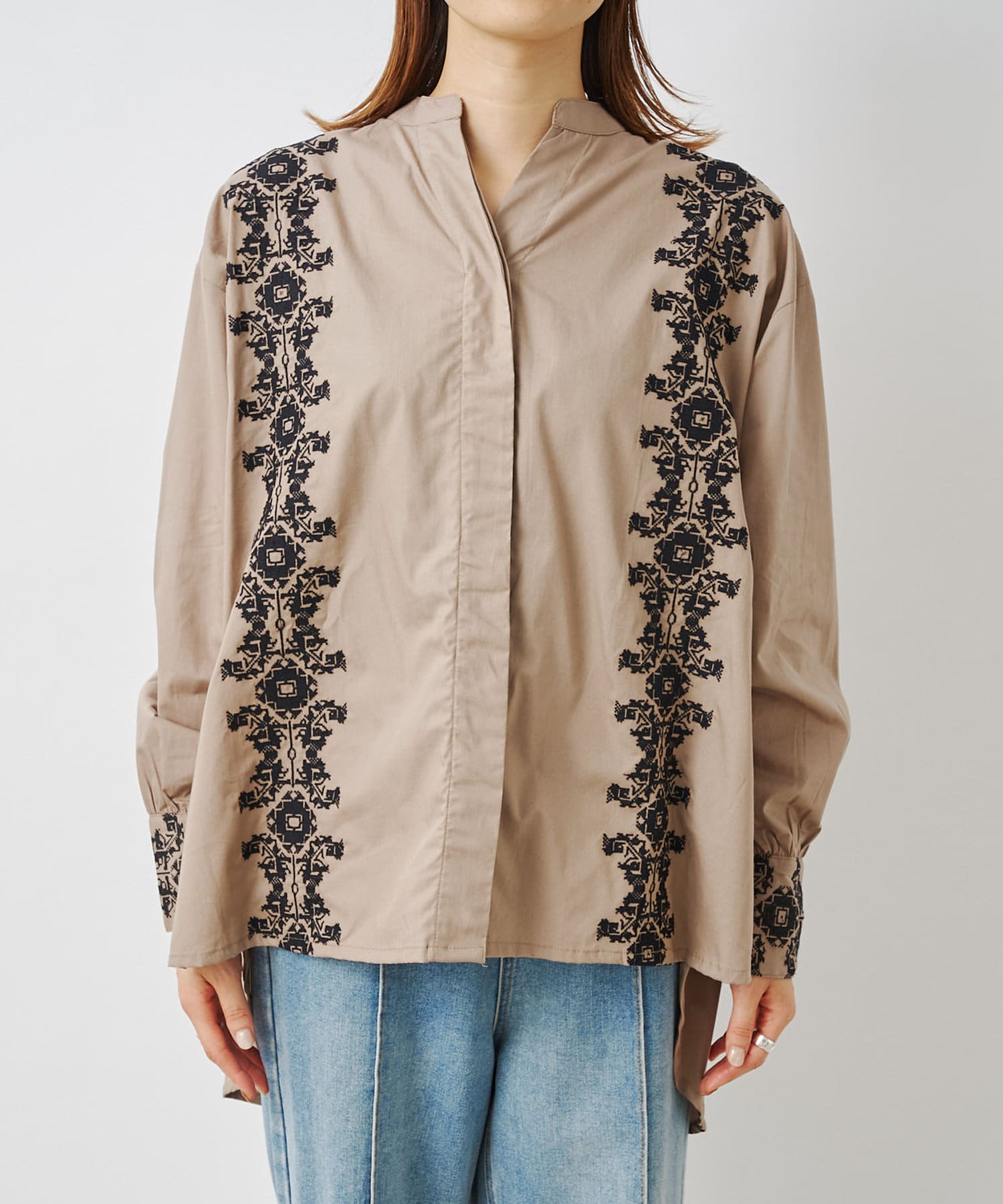 ●フロント&カフスに施した刺繍デザインが目を引く大人シャツ