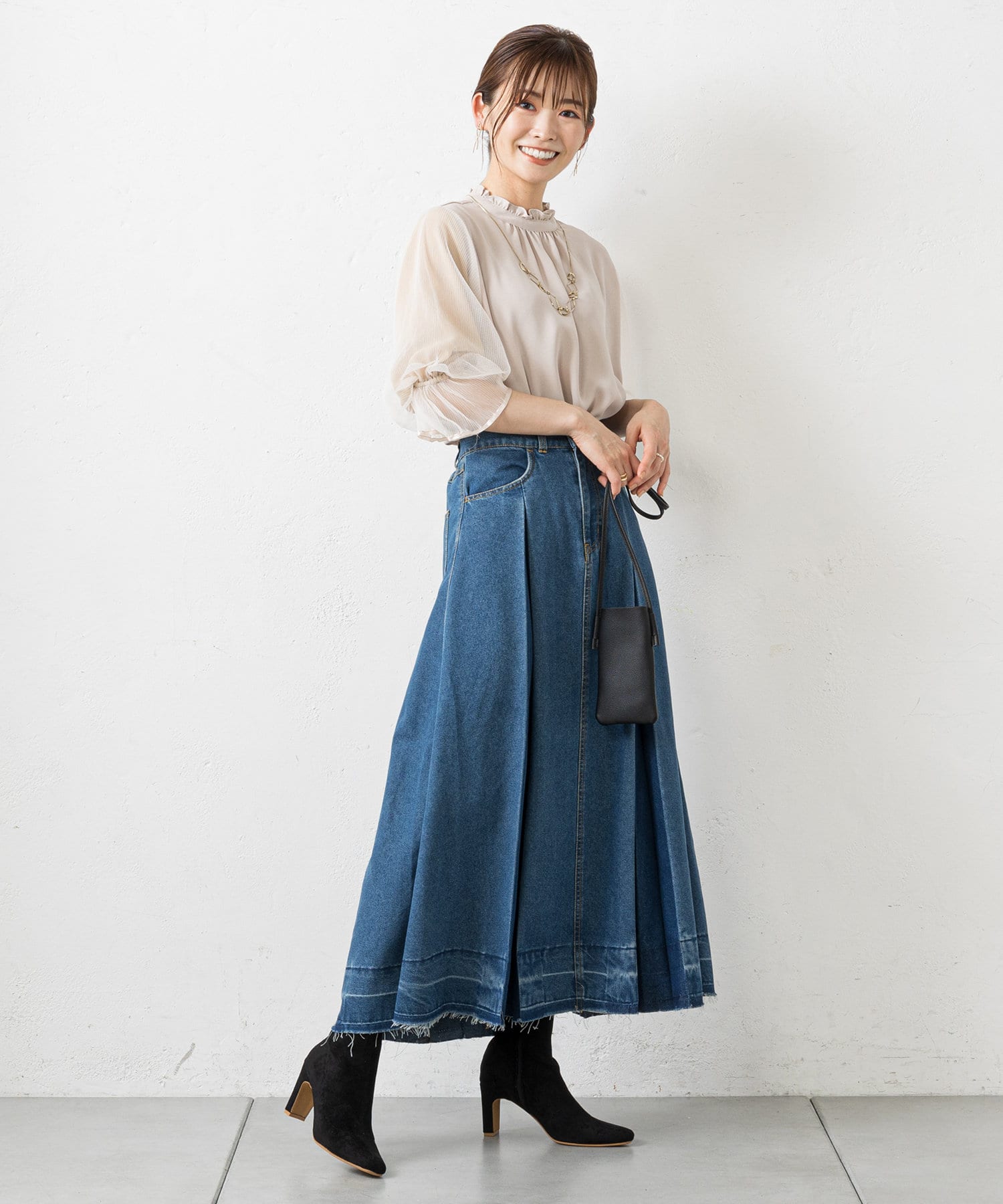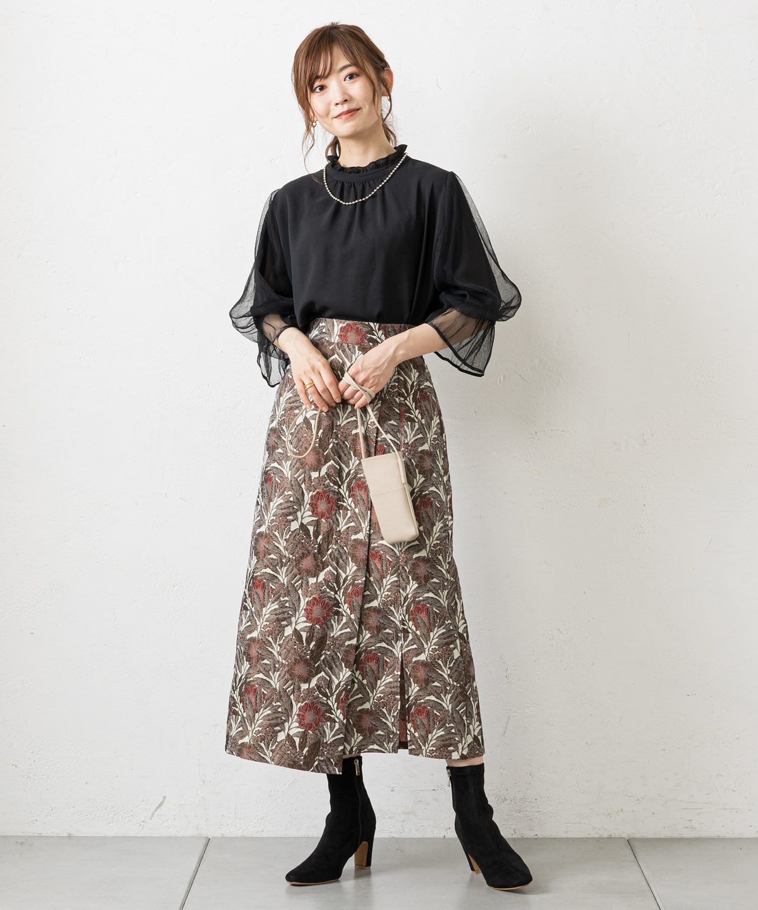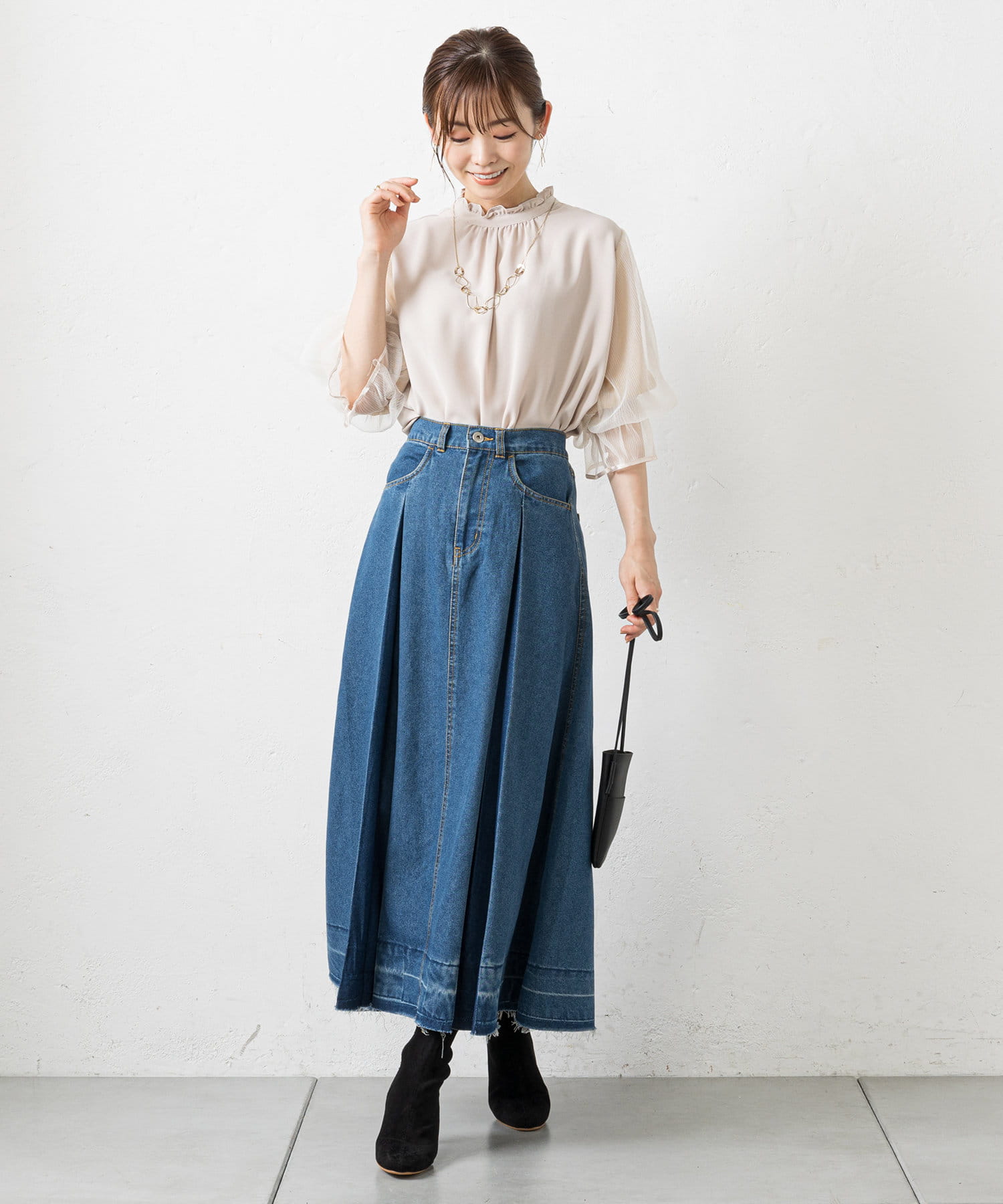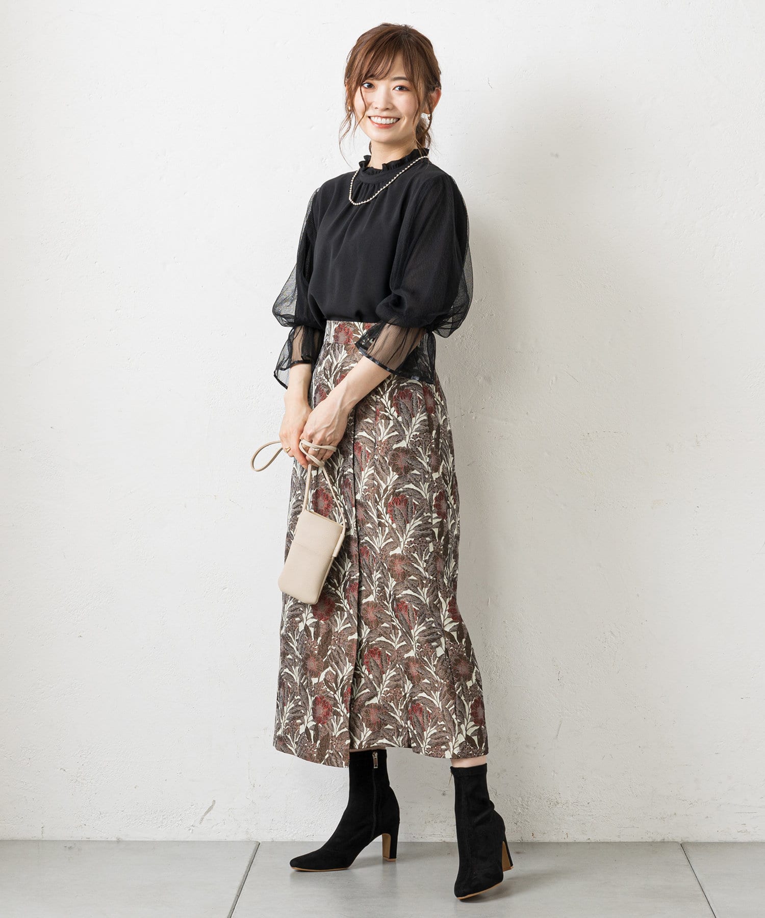 ・スカート合わせでキレイめな女性らしいスタイルに。