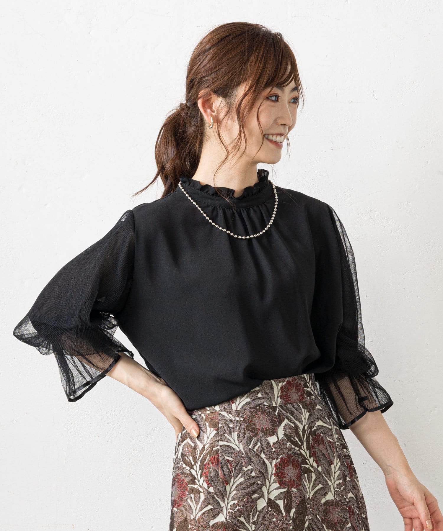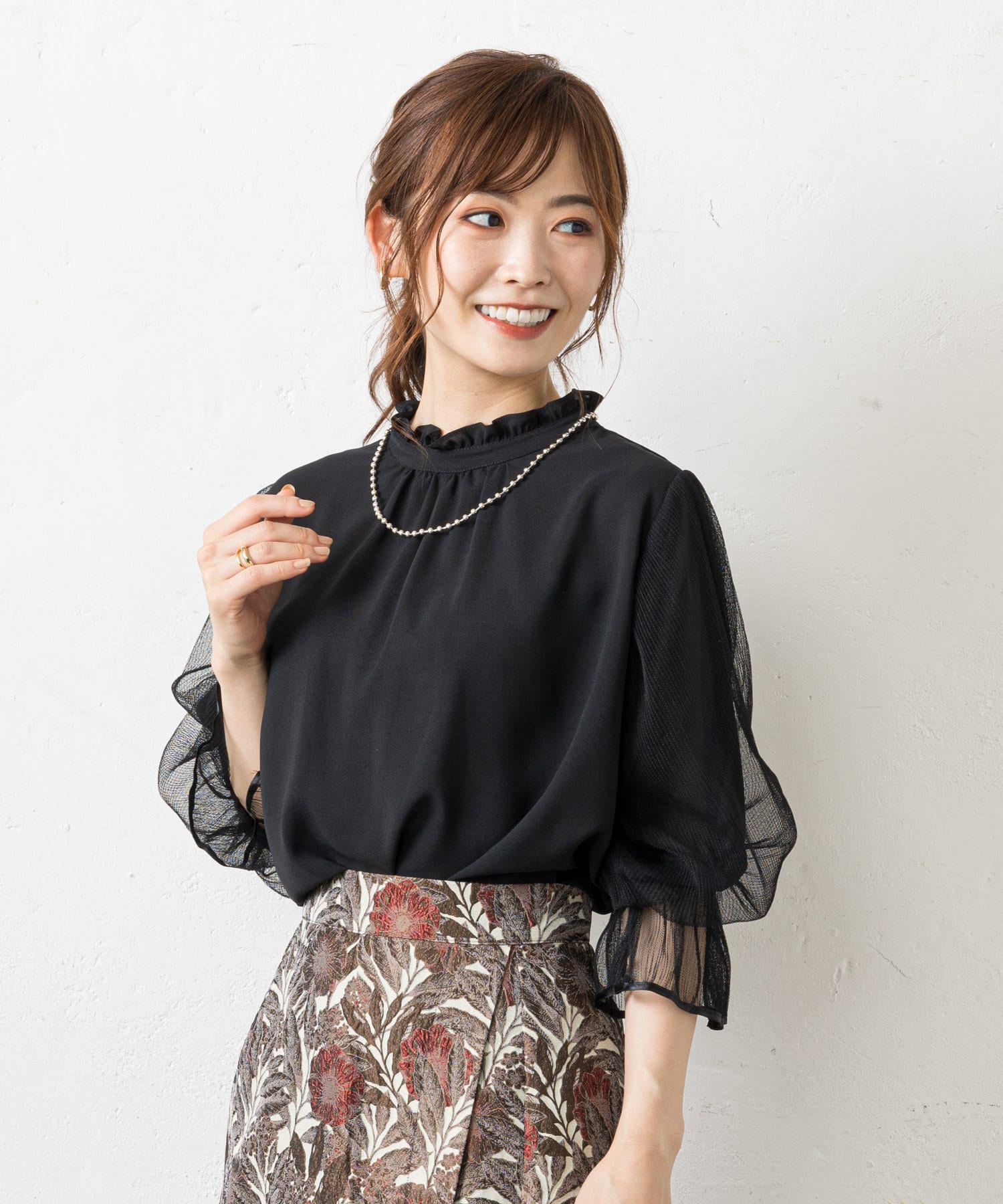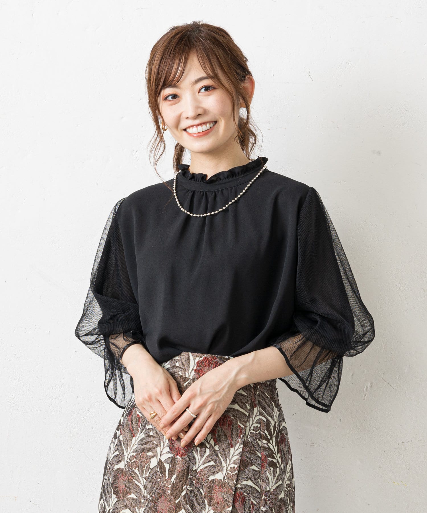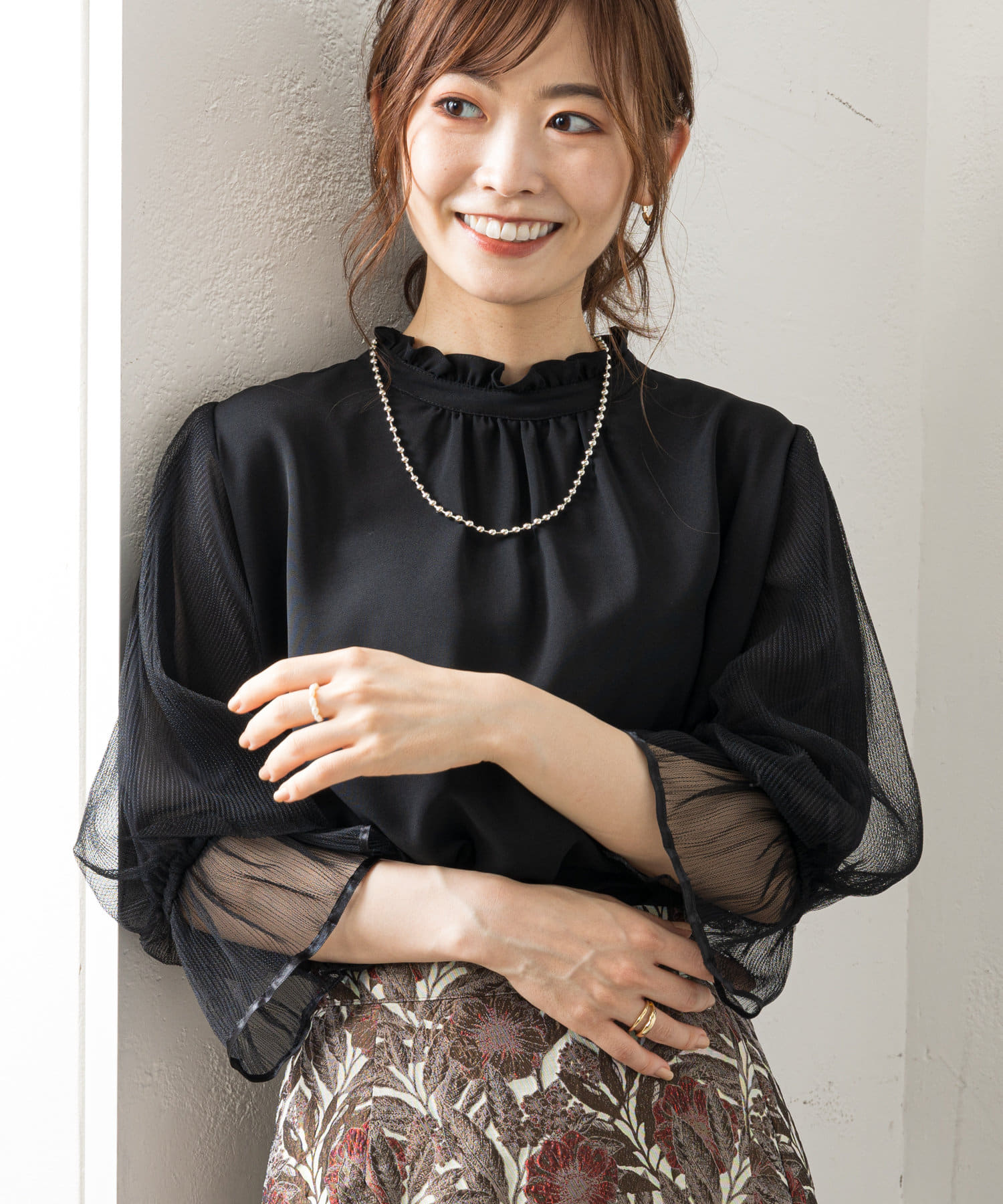 ふんわりチュールが女心をくすぐるデザインブラウス