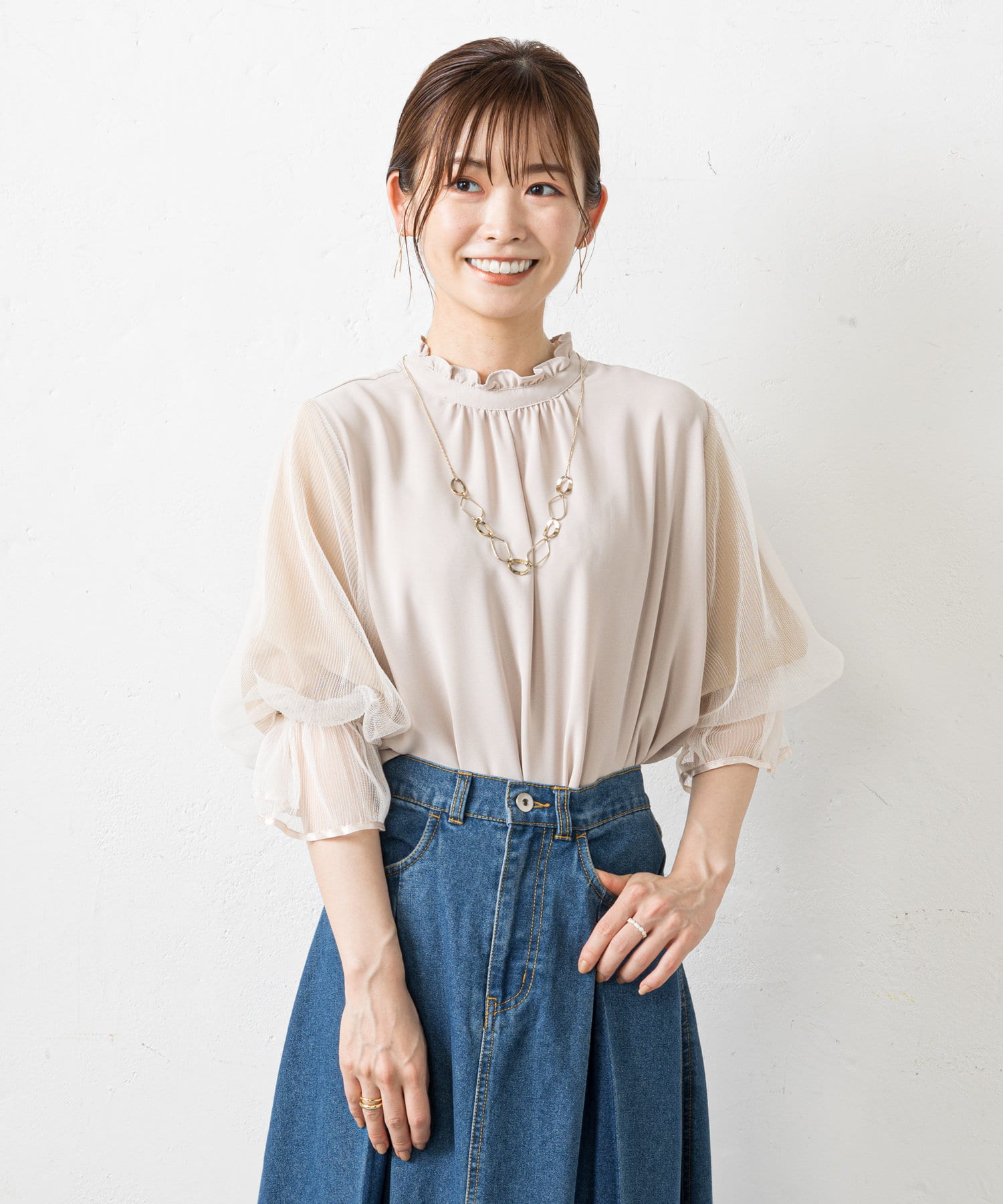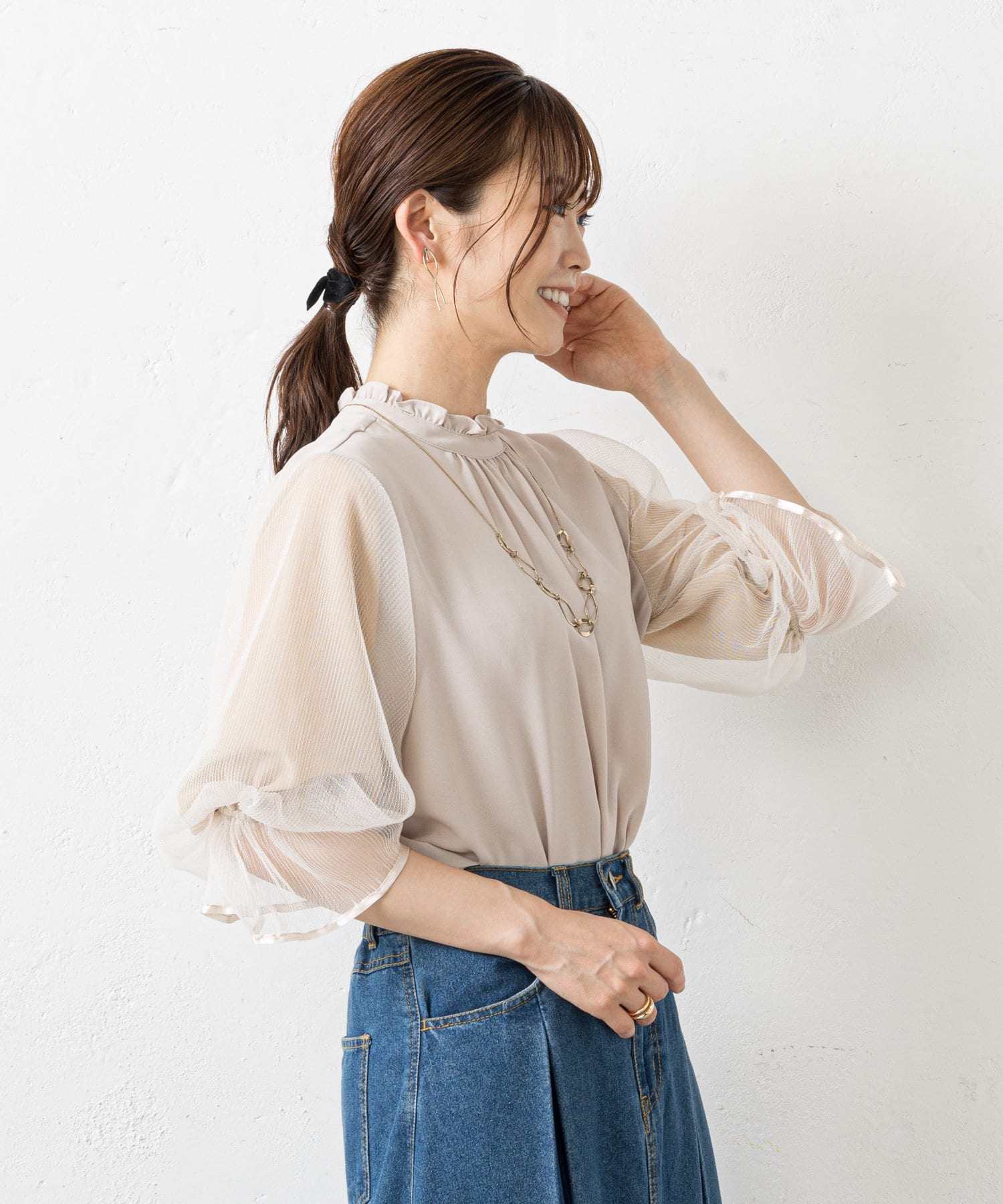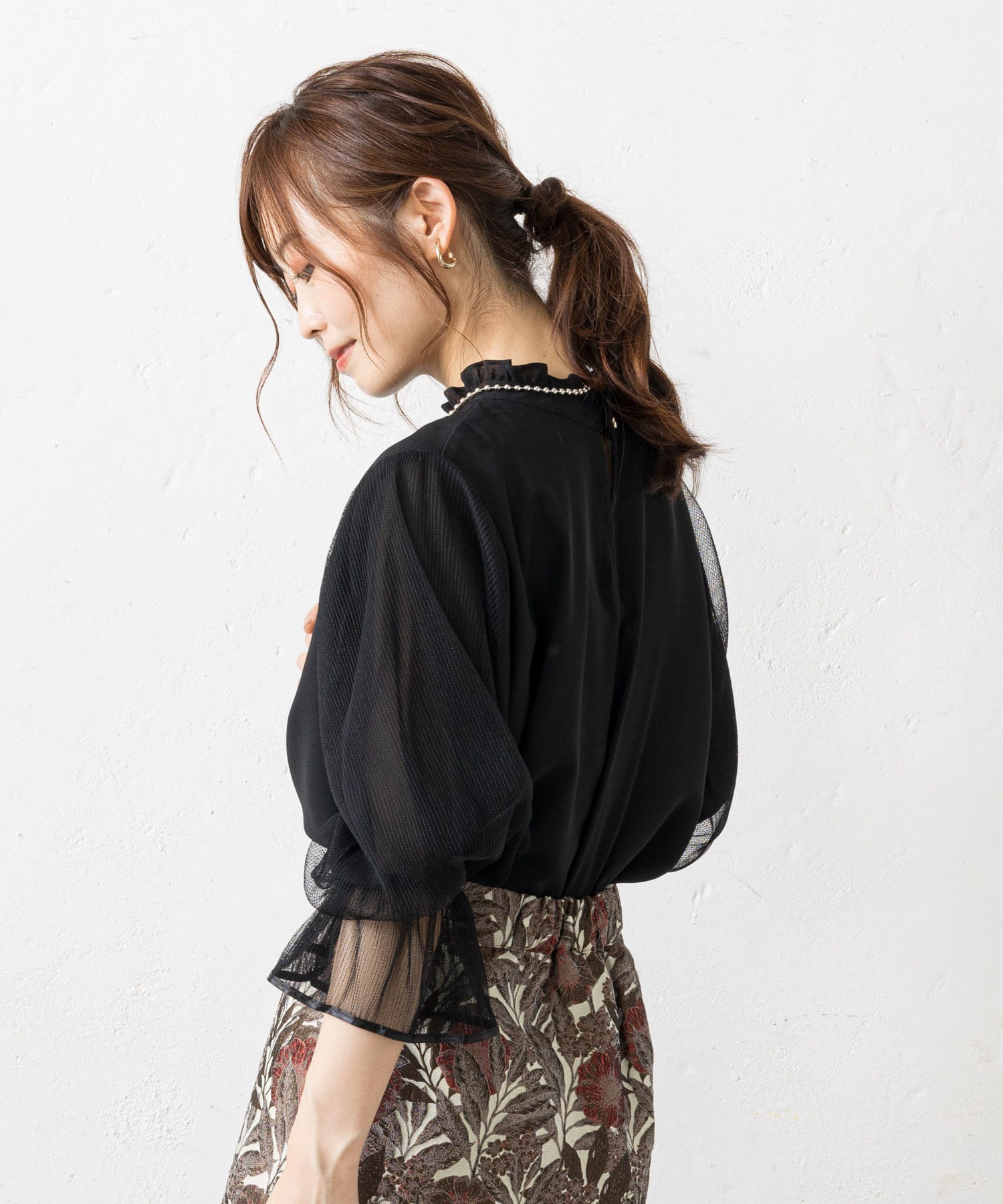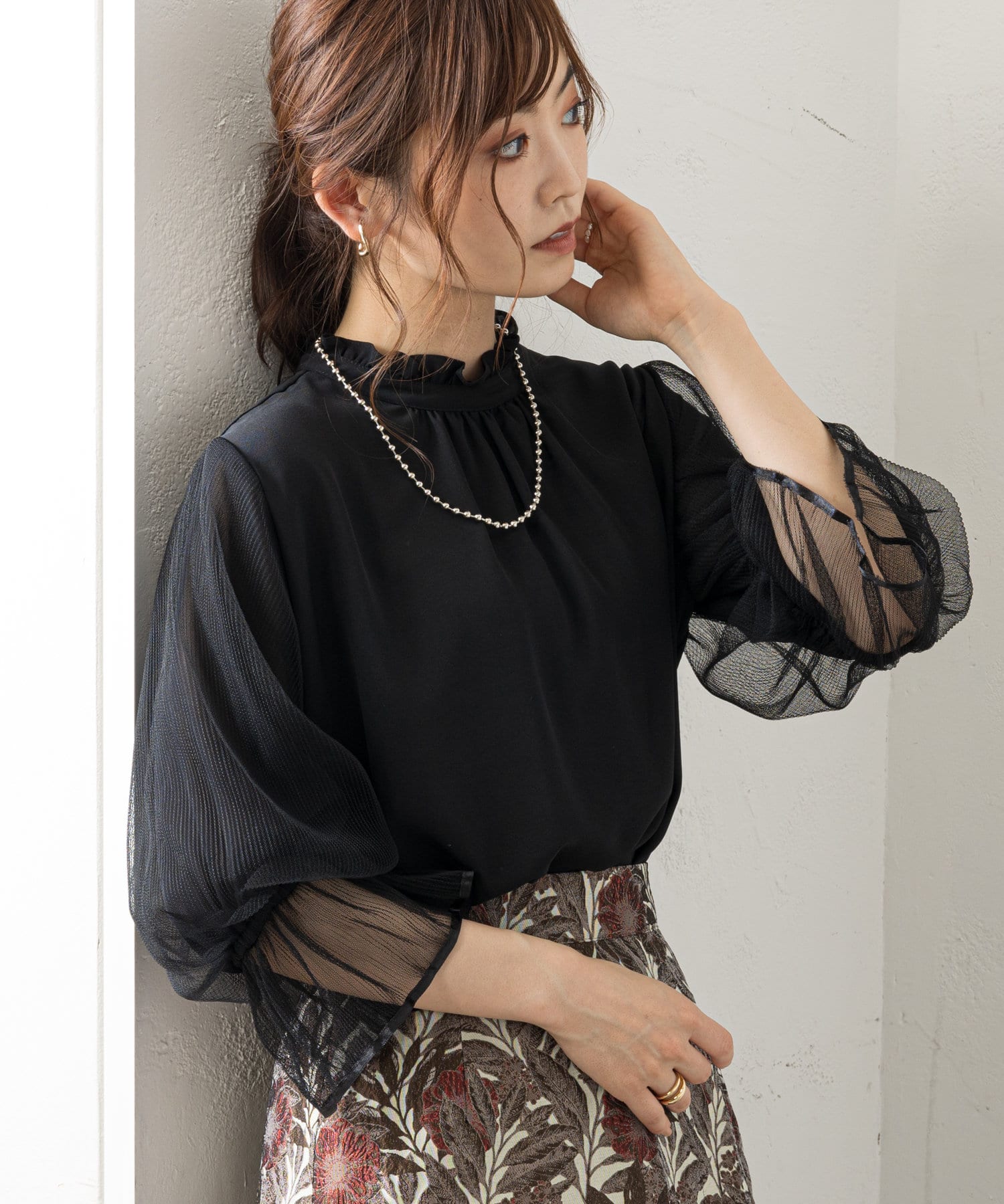 ふんわりチュールが女心をくすぐるデザインブラウス