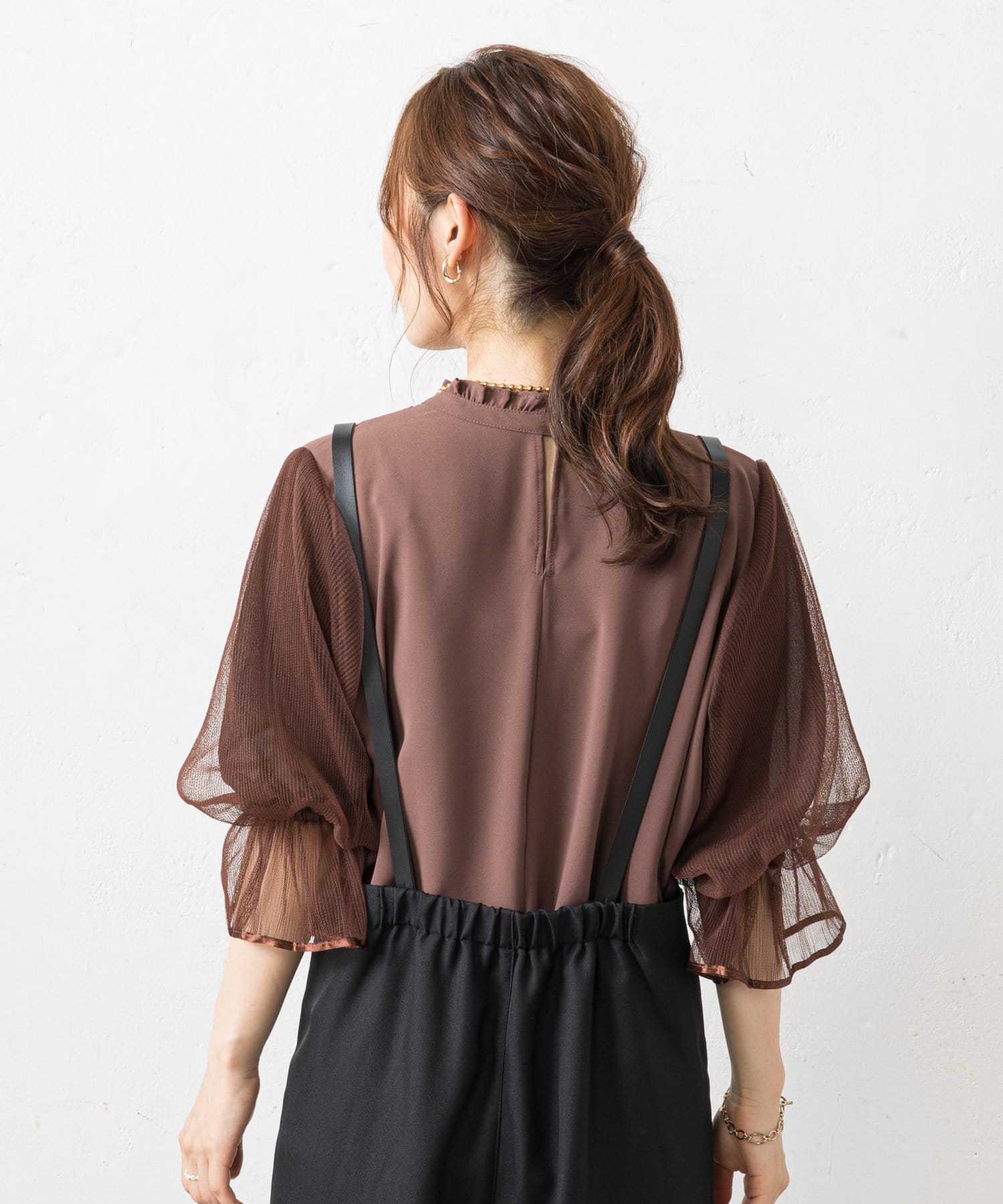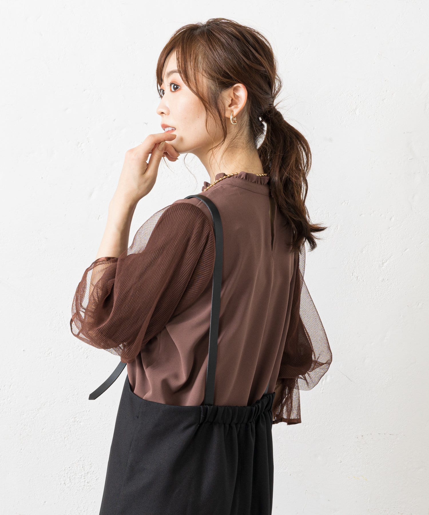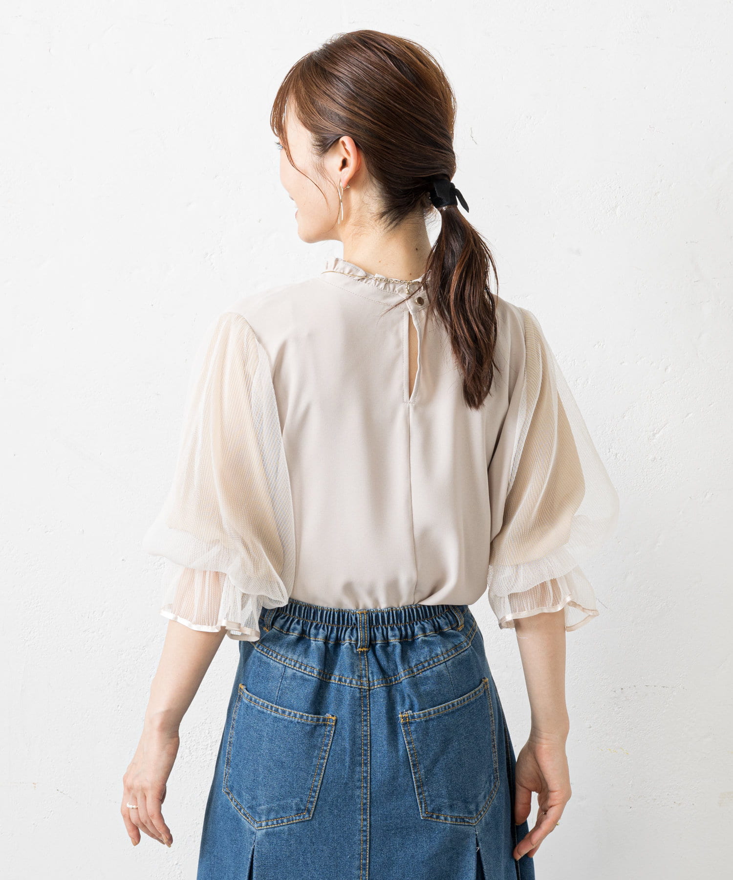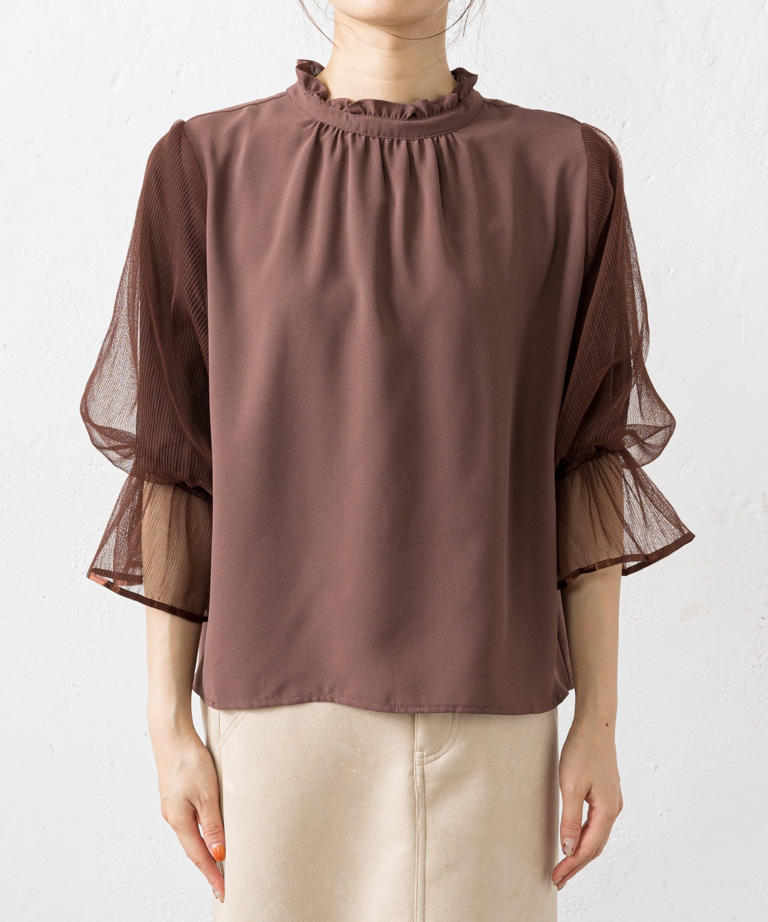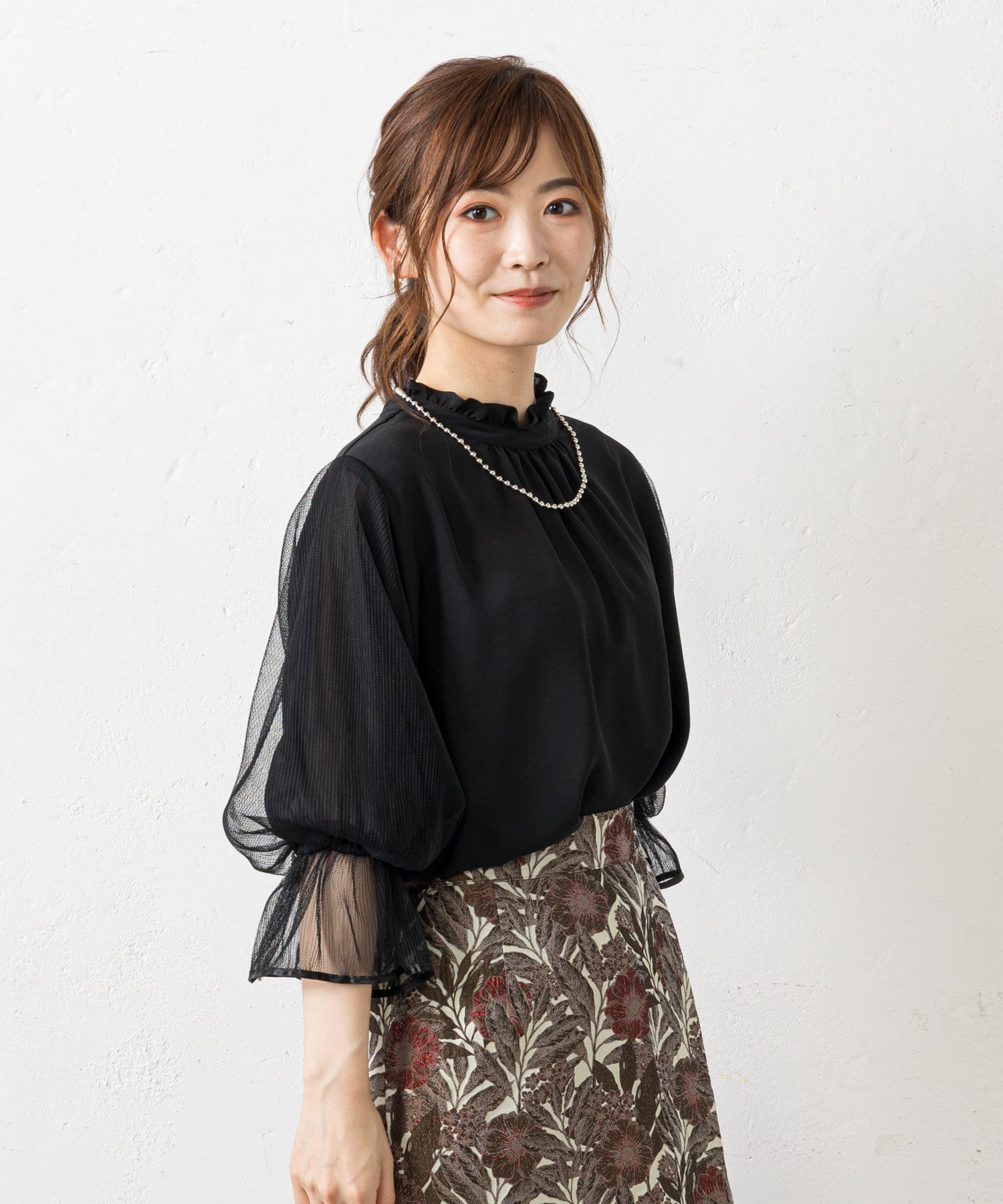 ふんわりチュールが女心をくすぐるデザインブラウス