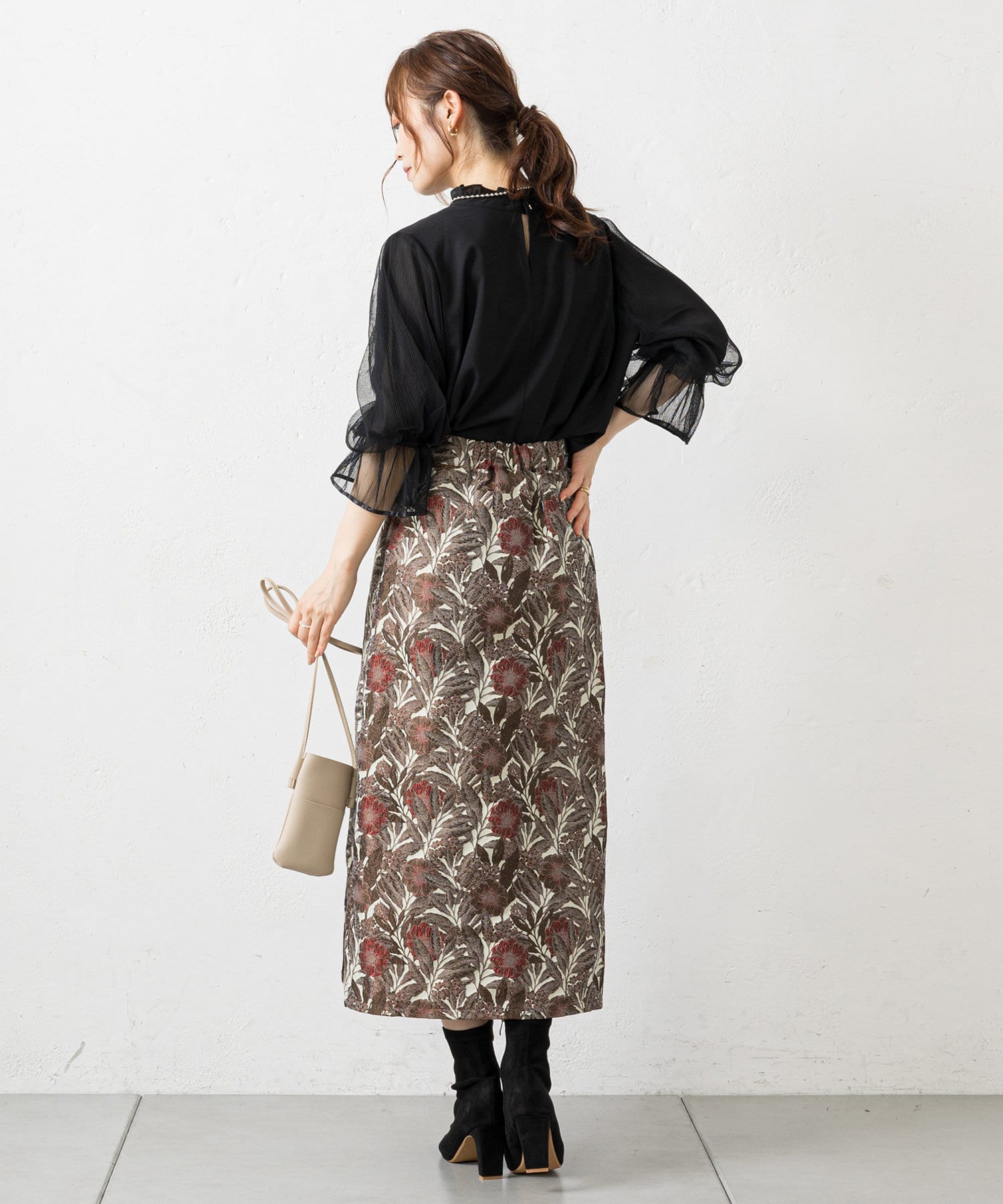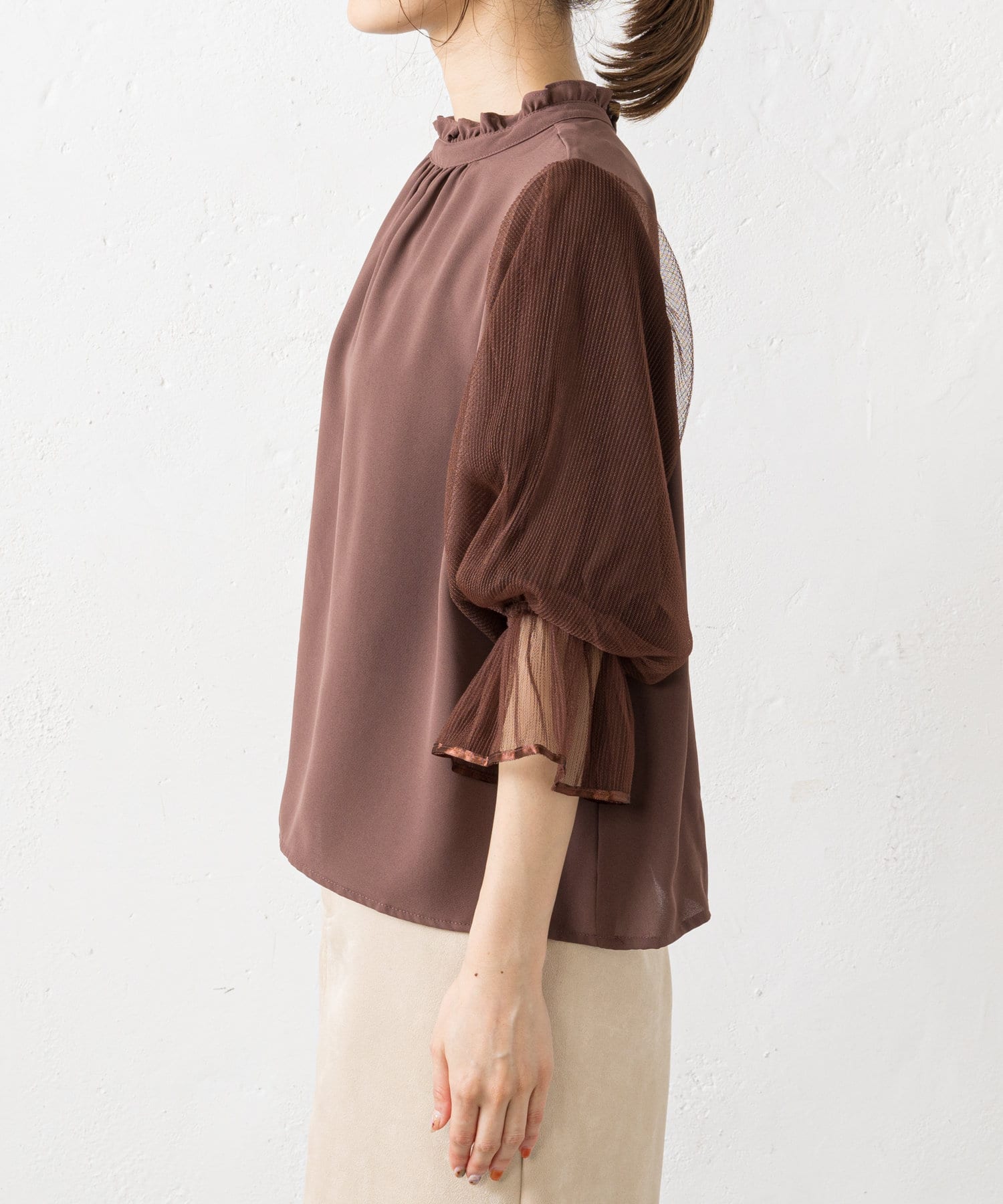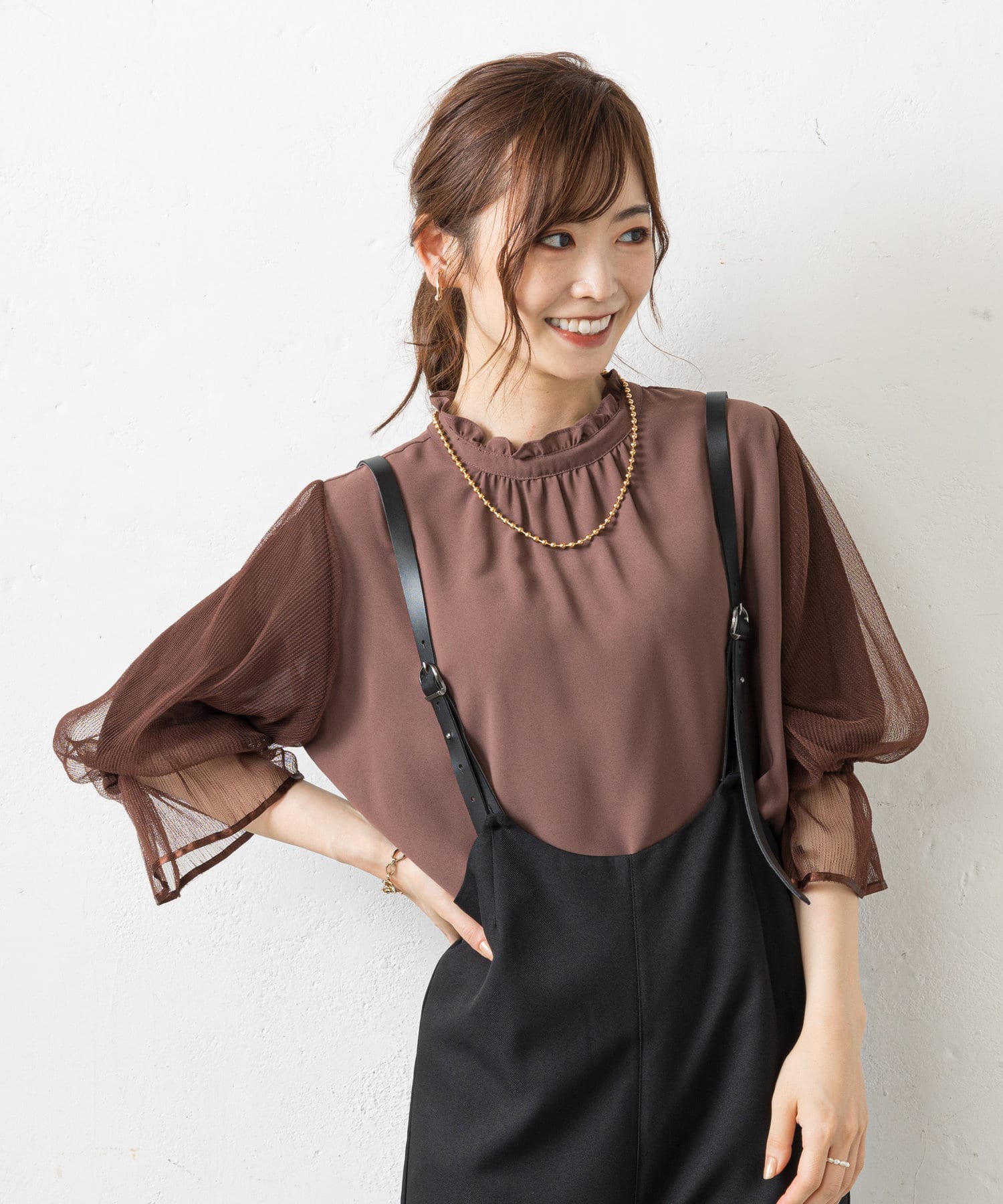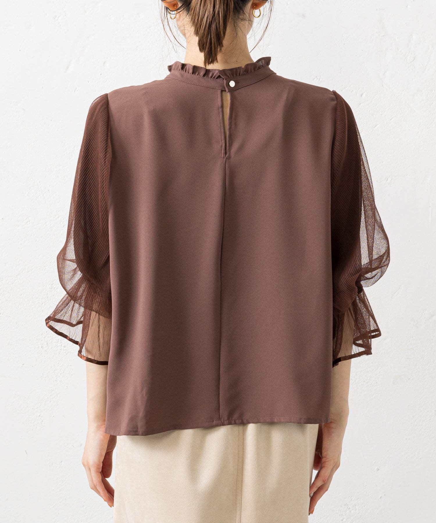ふんわりチュールが女心をくすぐるデザインブラウス