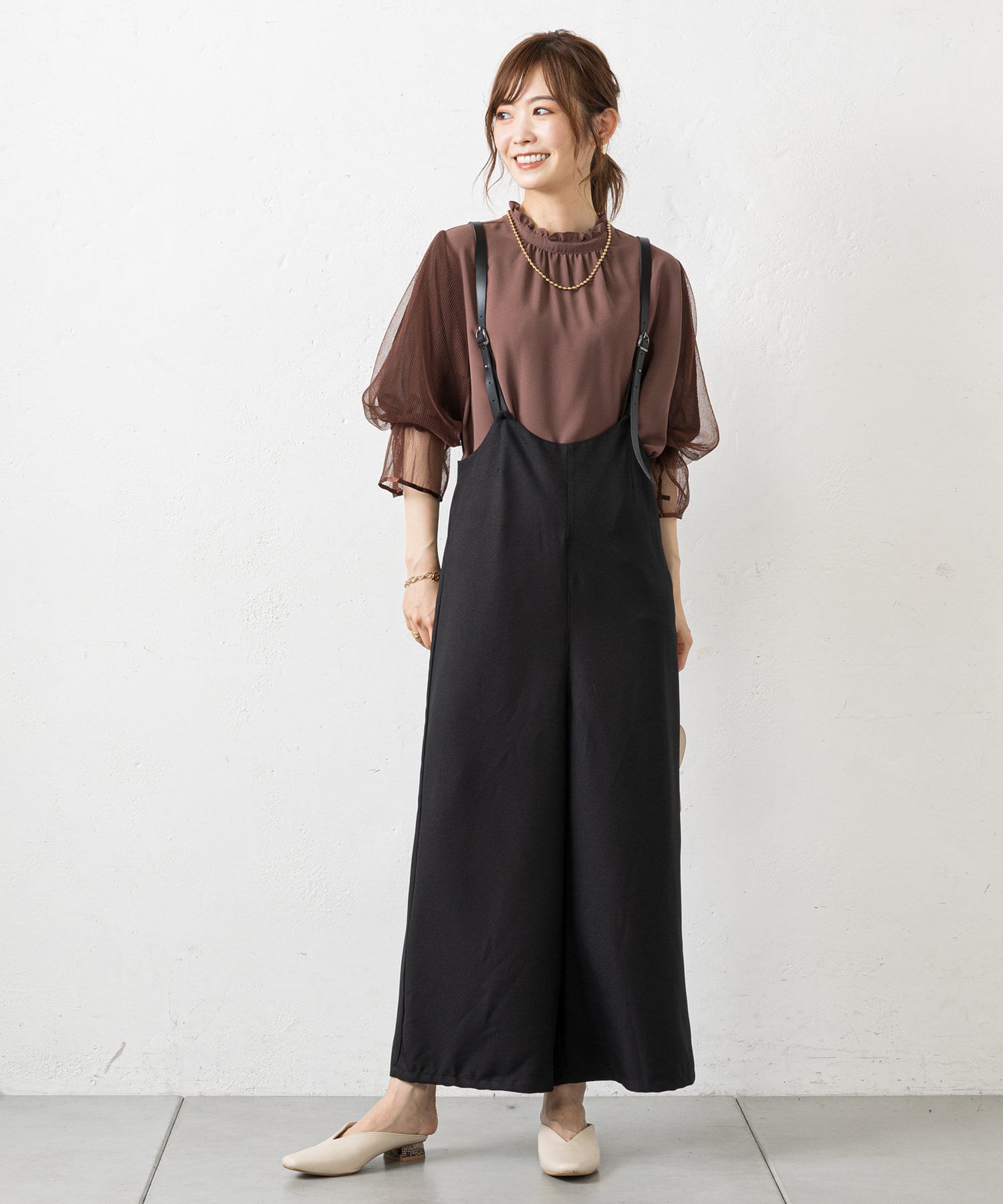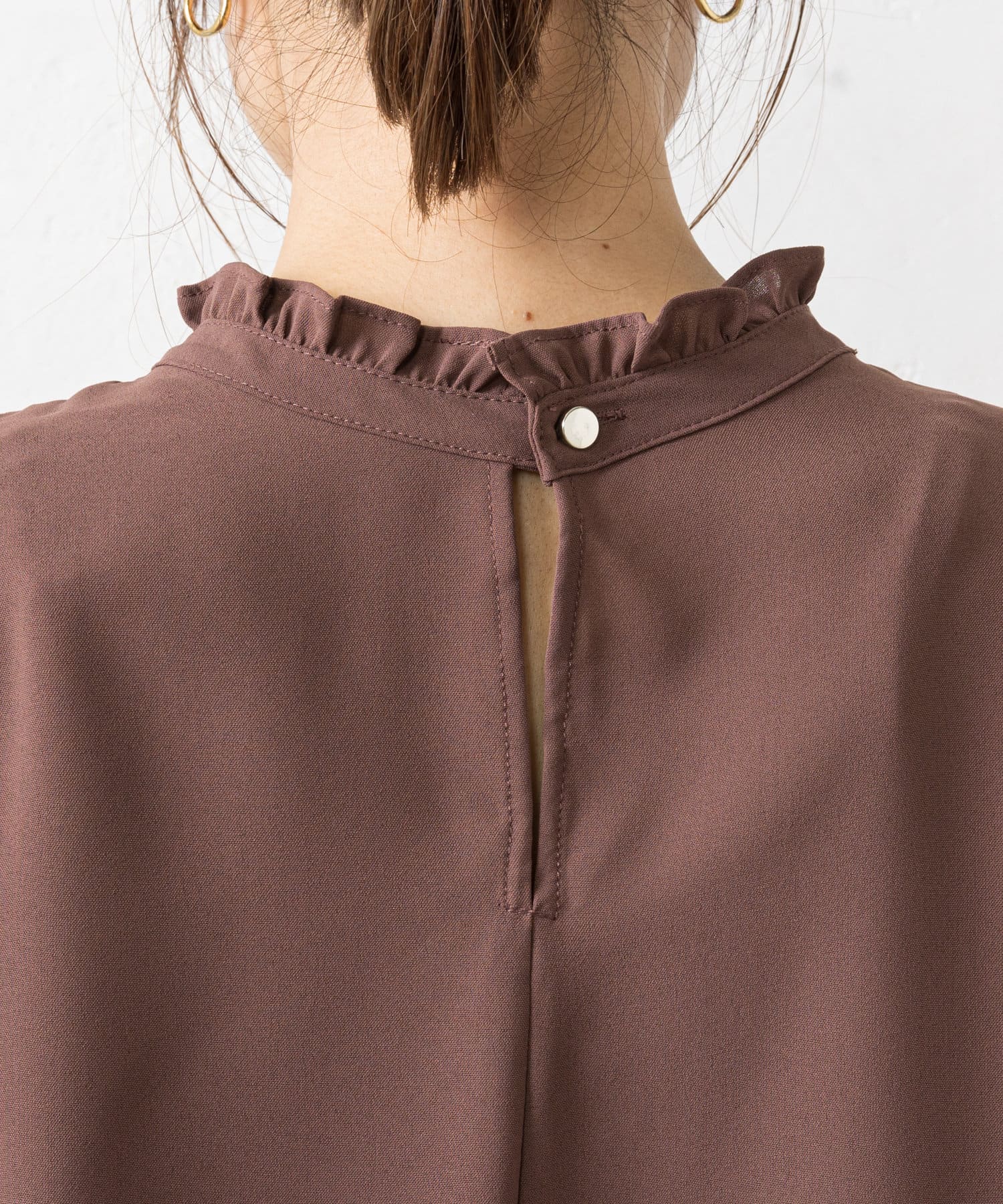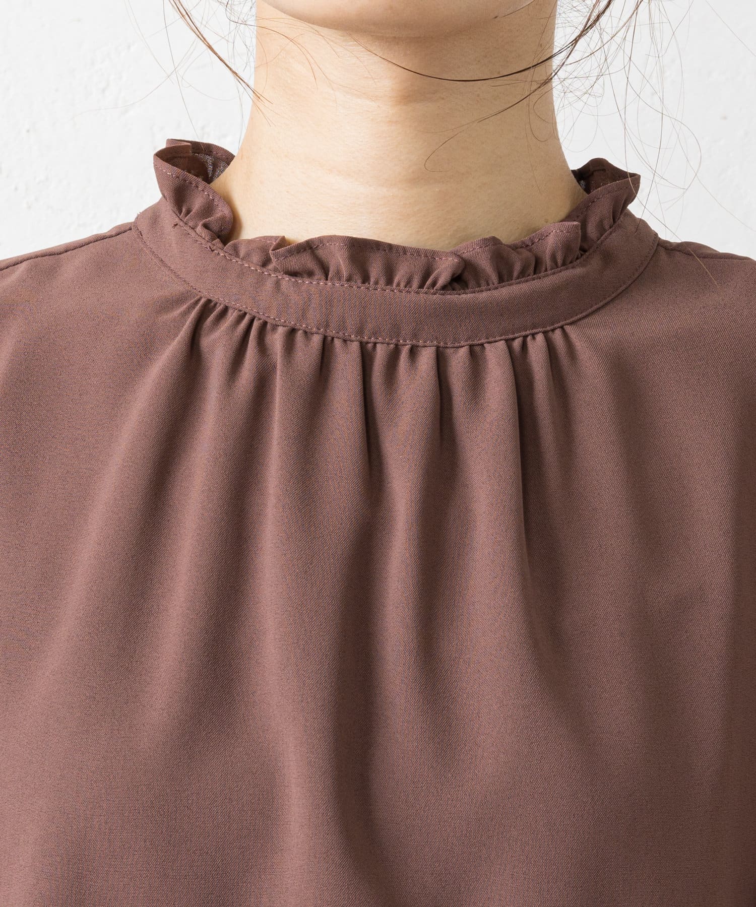 ●プチハイネックのフリル襟がクラシカルで上品な印象に
