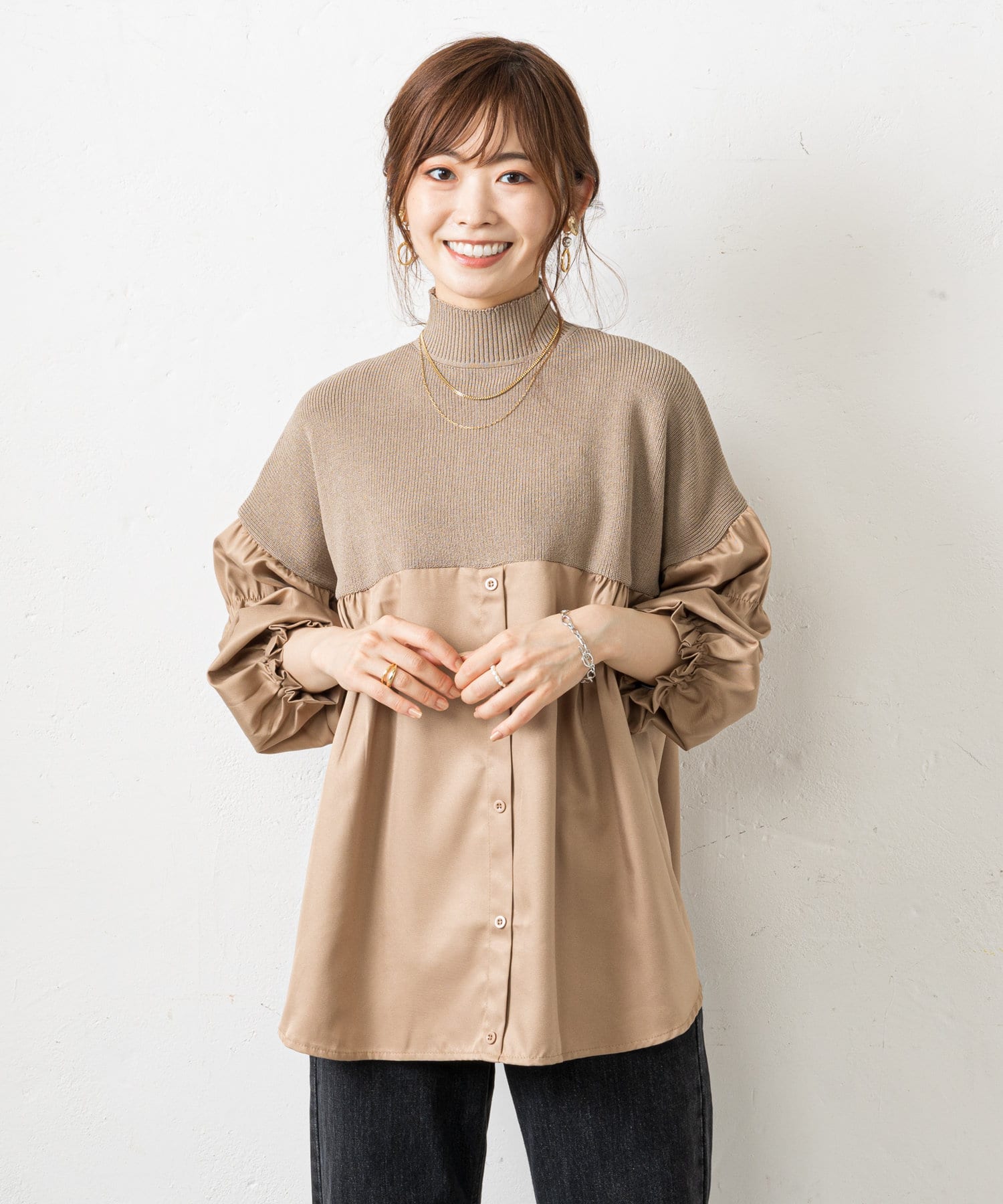 ニットとシャツがドッキングでとてもオシャレなデザインです。