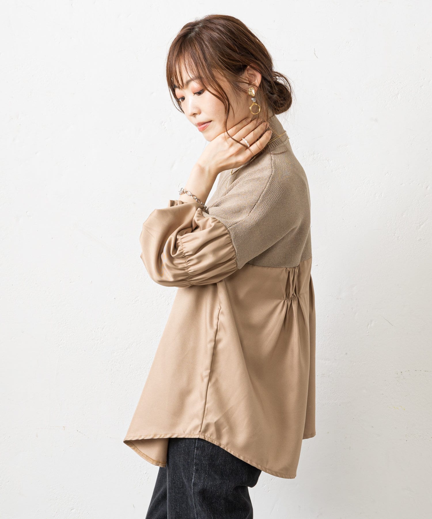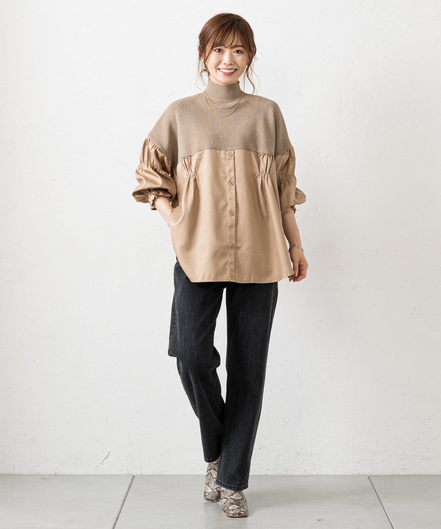 ●大胆なニット切り替えが目を引くドッキングデザイン