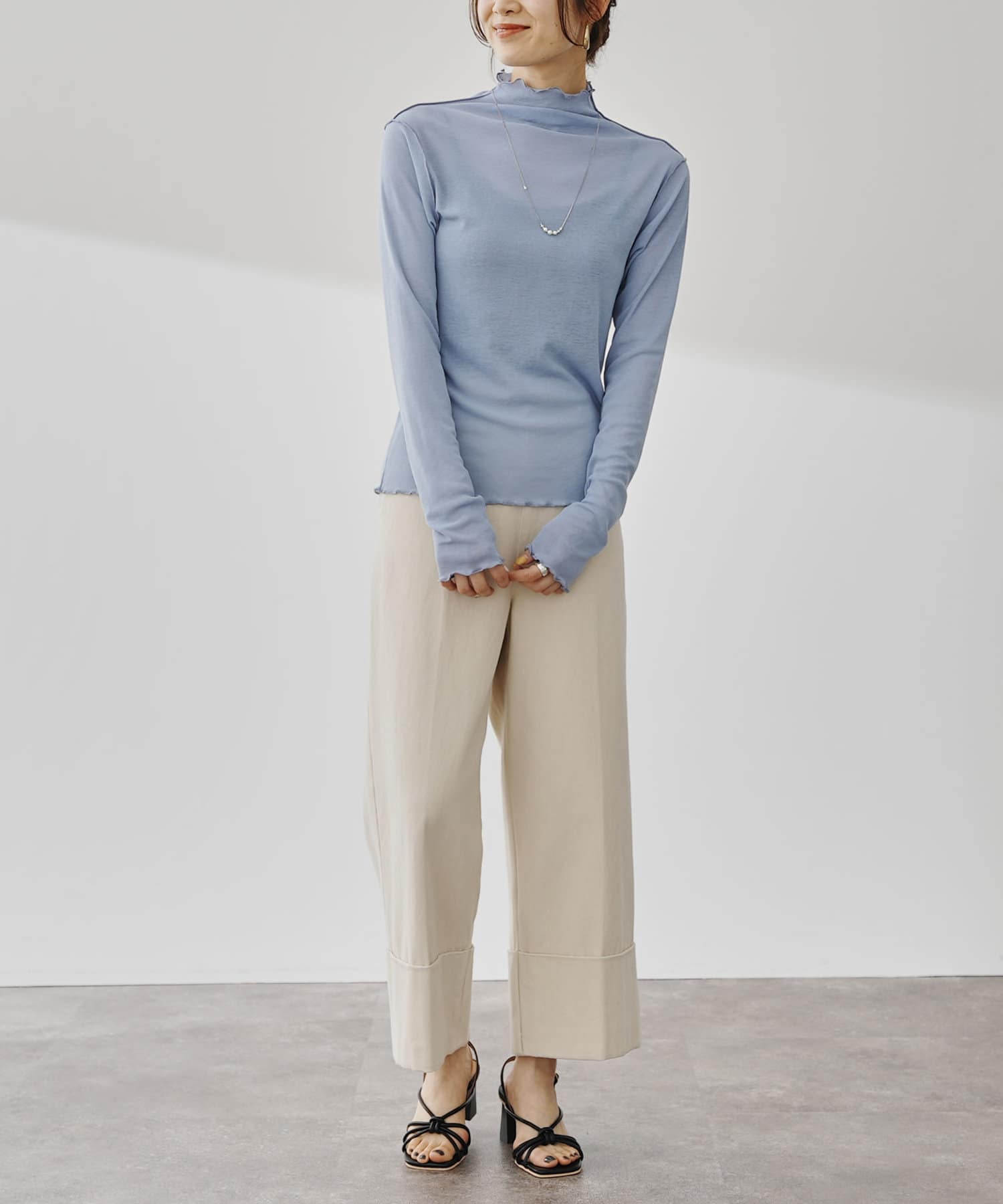 ●裾や袖、襟元のメロウデザインがトレンド感をプラス
