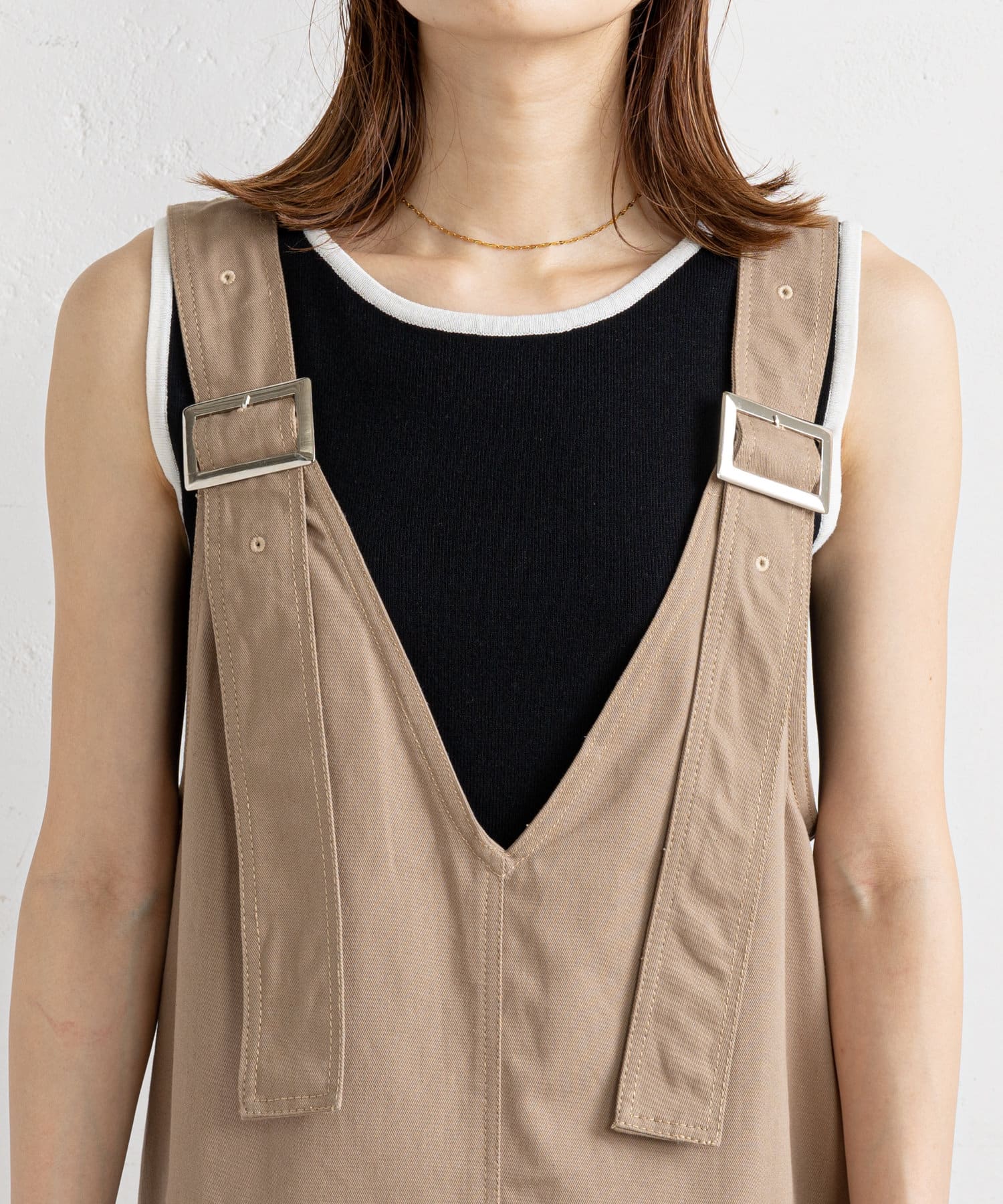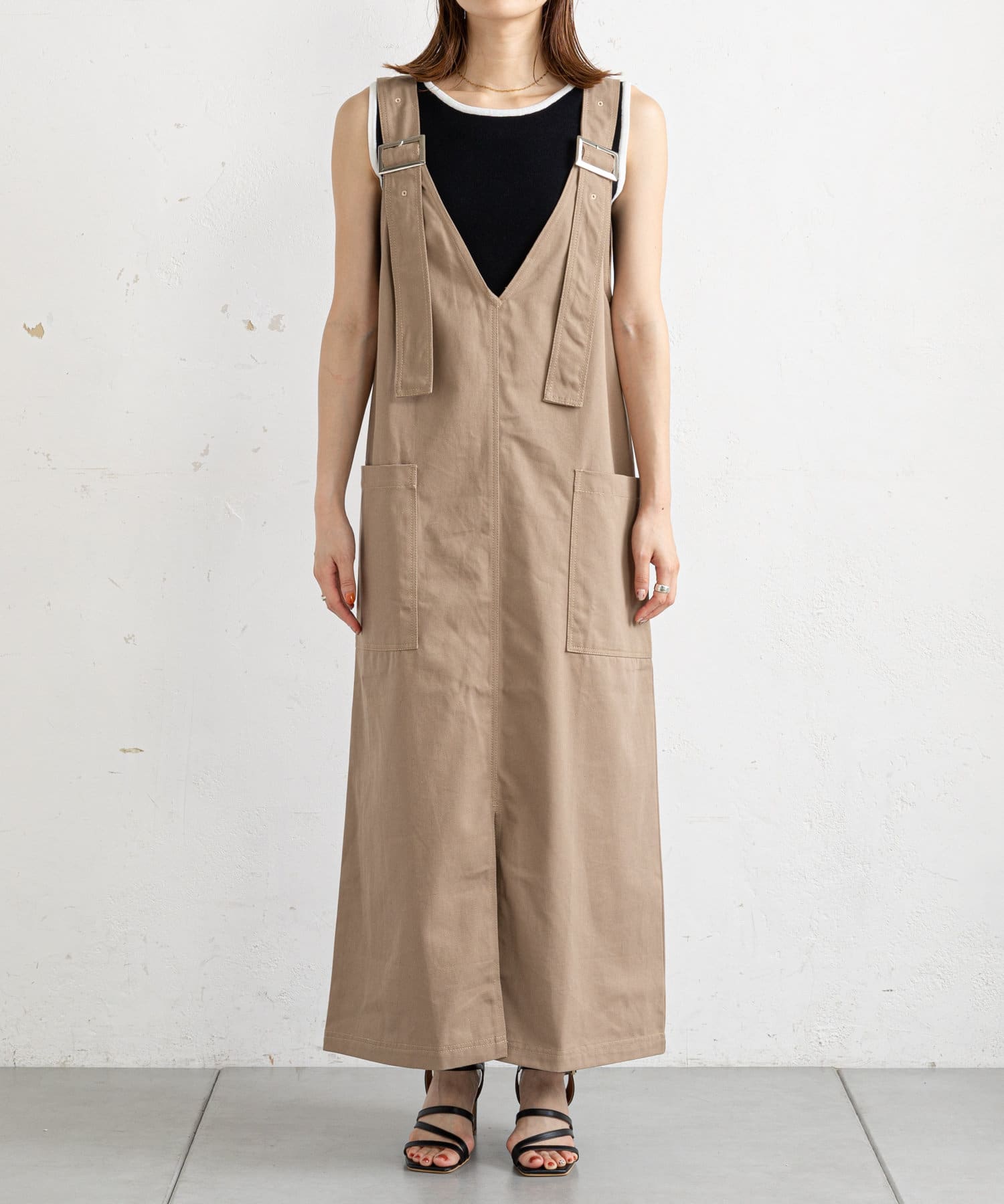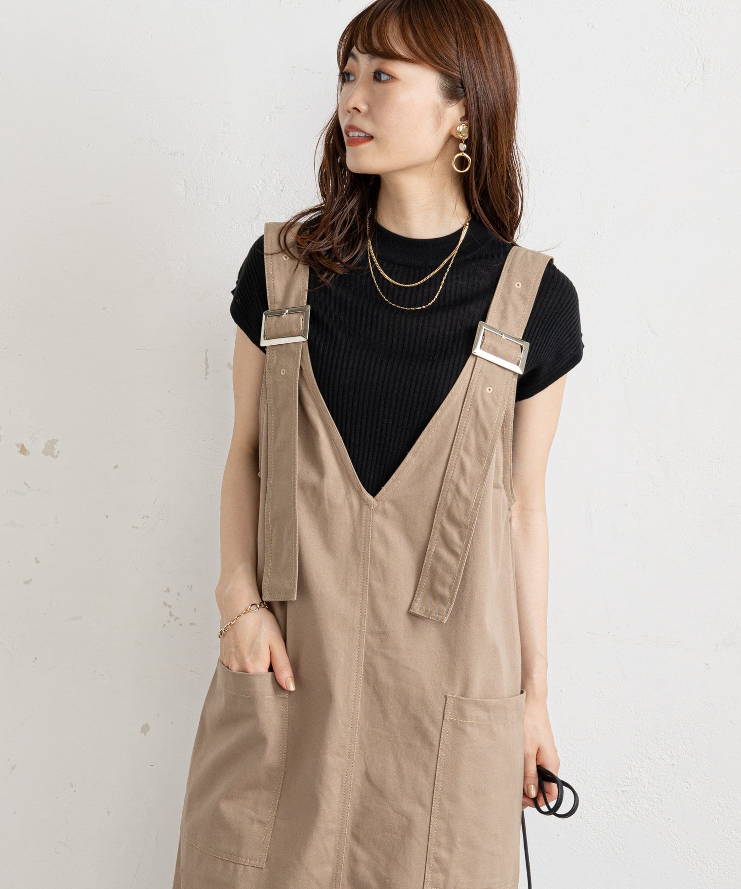 【肩紐調節可能】ツイルアウトポケットジャンスカ