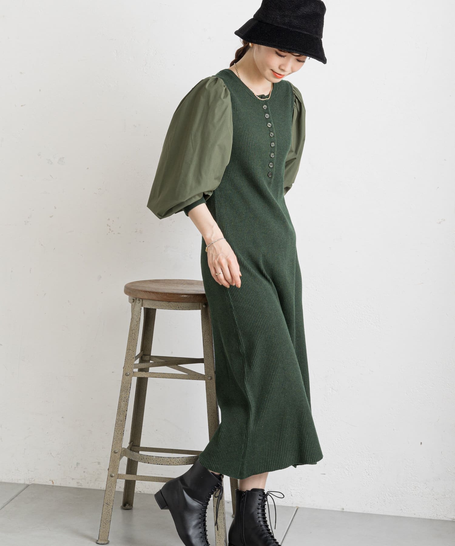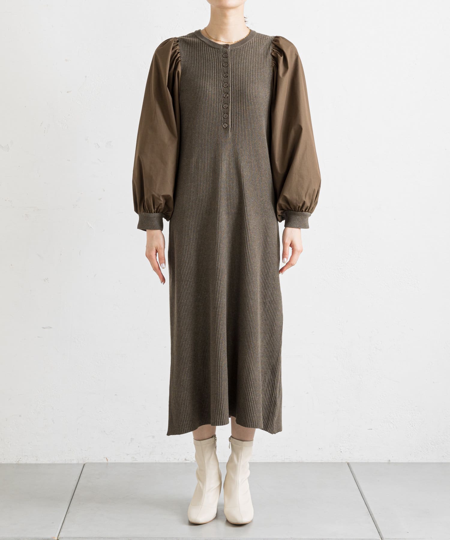 フロントボタンドッキングニットワンピース