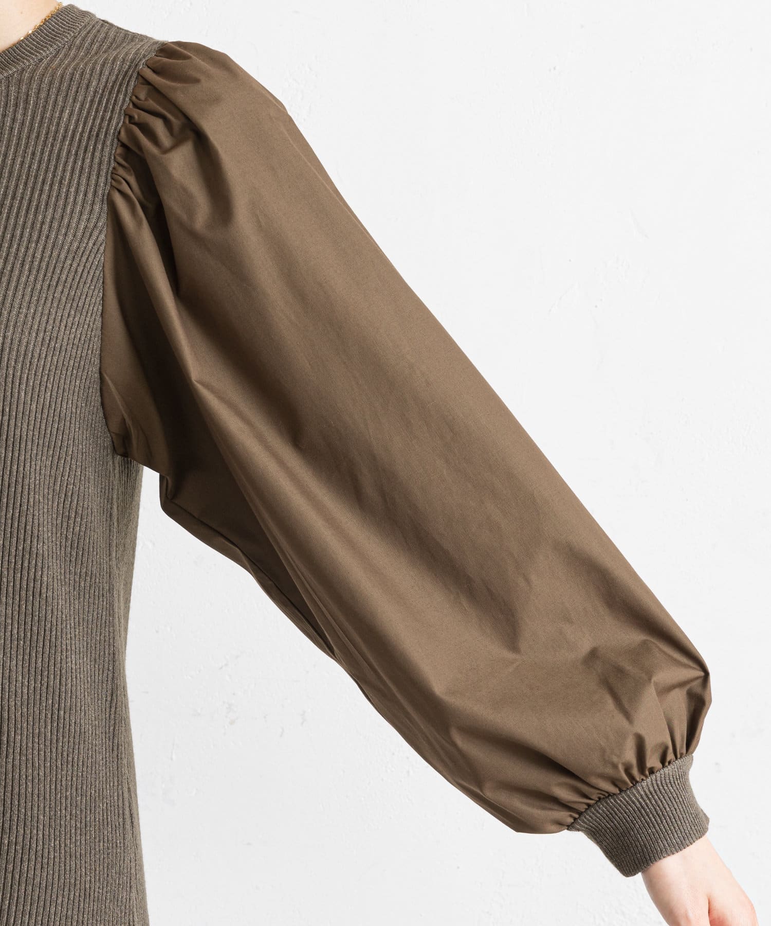 ●身頃はニット・袖はシャツ生地の異素材切替が、洗練された都会的な印象に