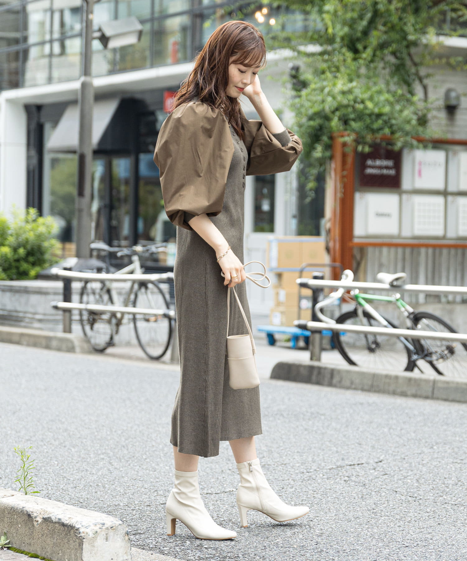 ●袖をくしゅっと捲し上げると、ふんわりシルエットがより引き立ちます