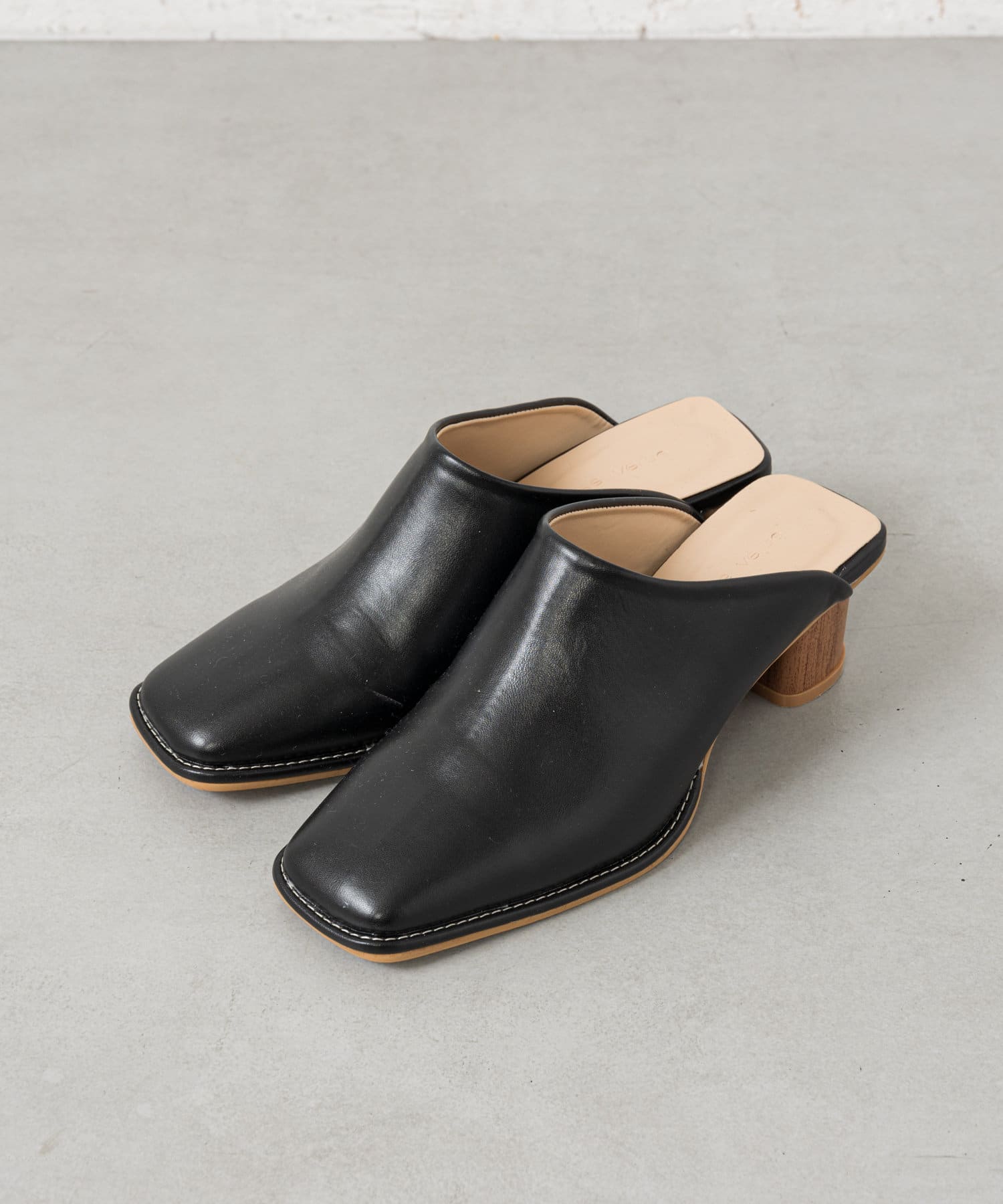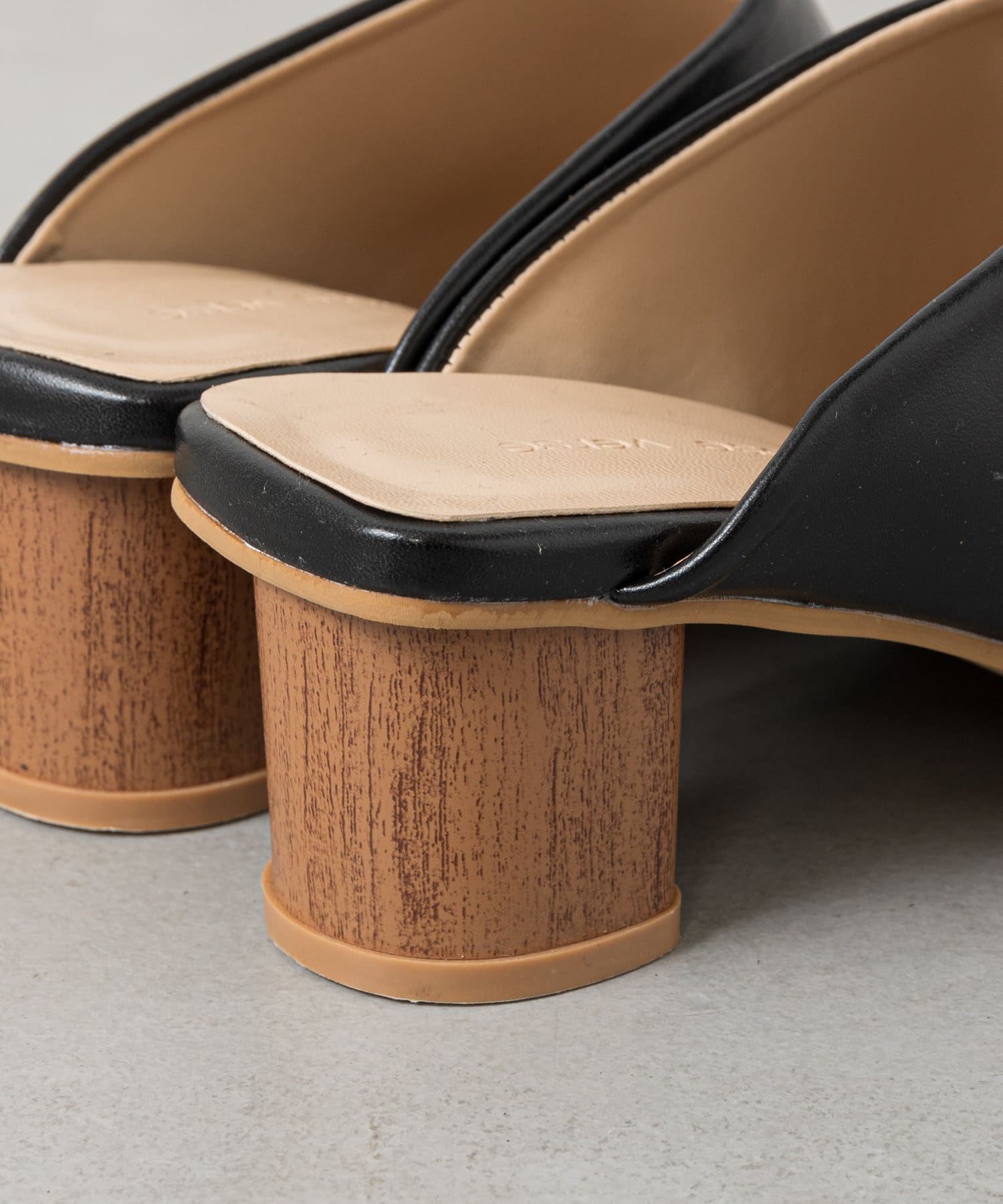 《WEB限定サイズあり》【XS~XXLサイズ】ウッドヒールステッチ入りミュール