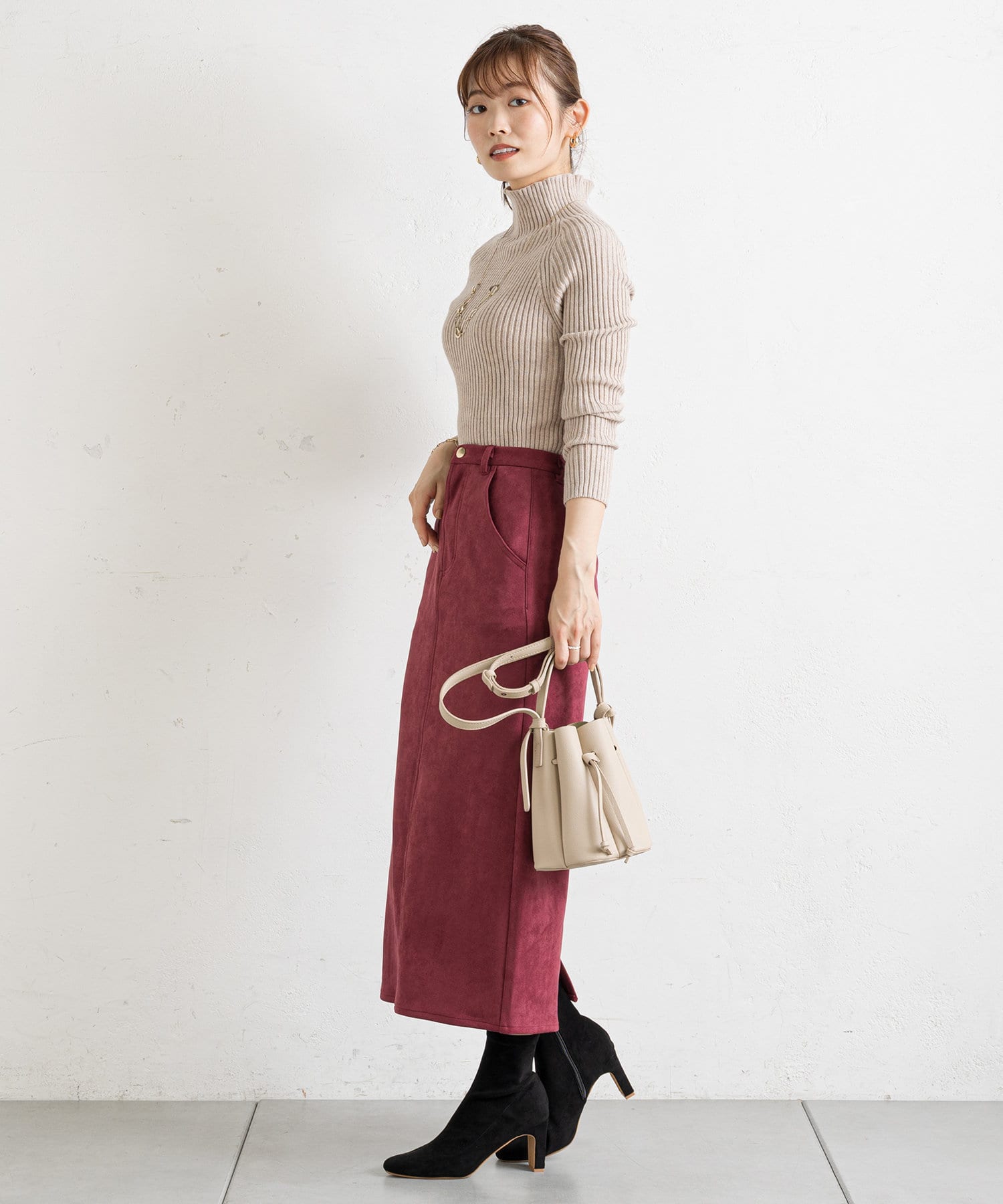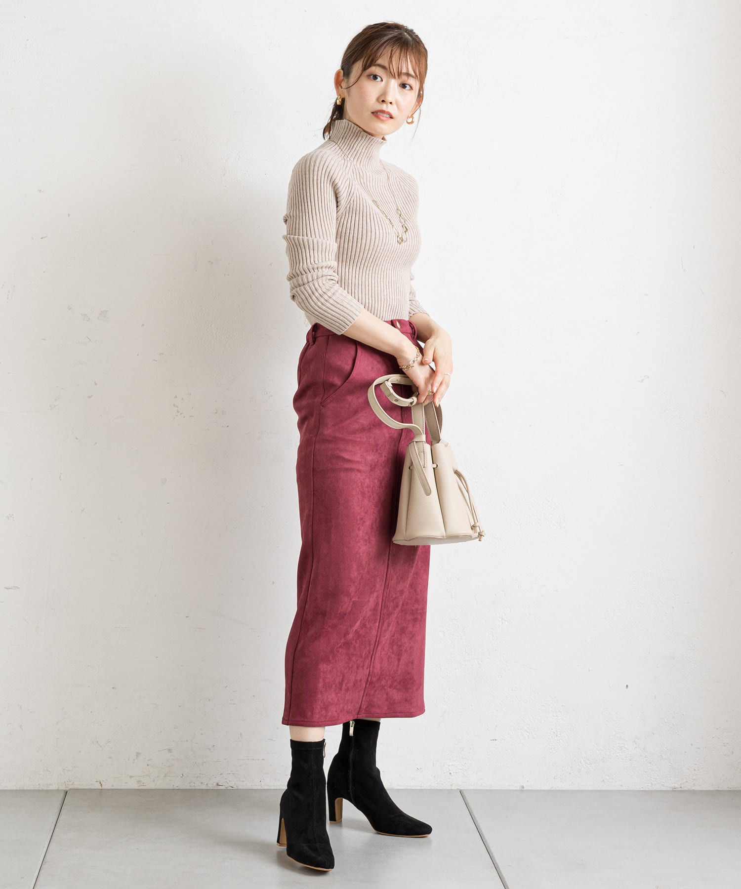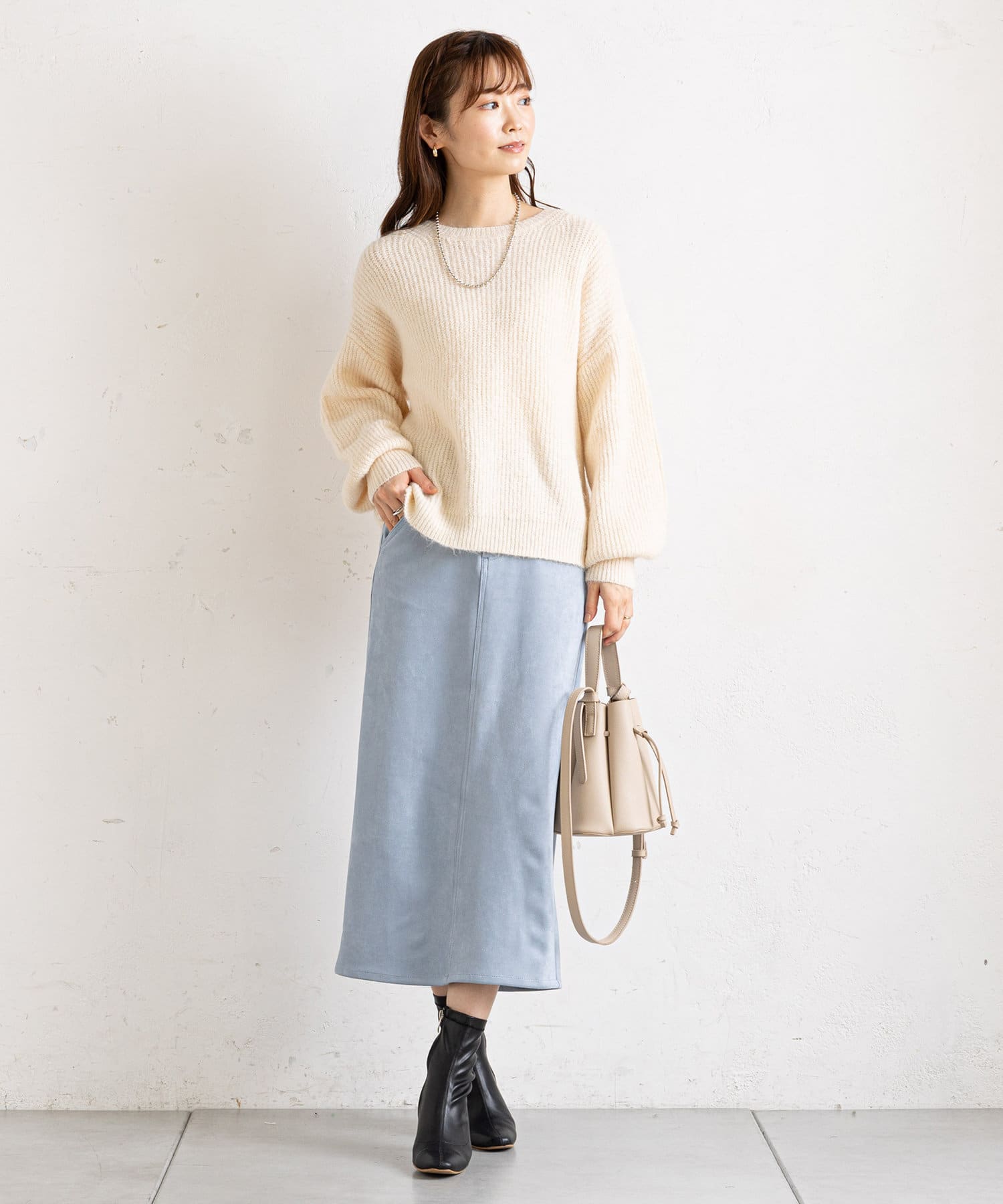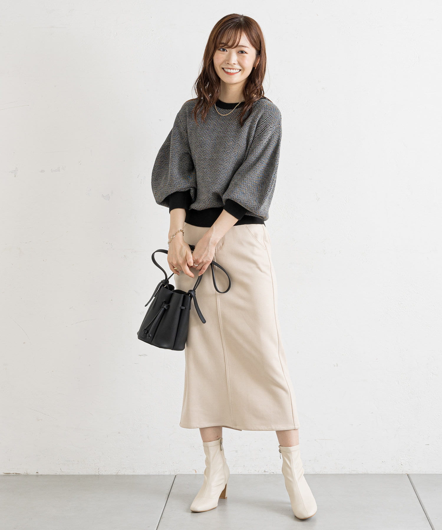 ・コンパクトなリブニット合わせでレディライクな秋コーデに