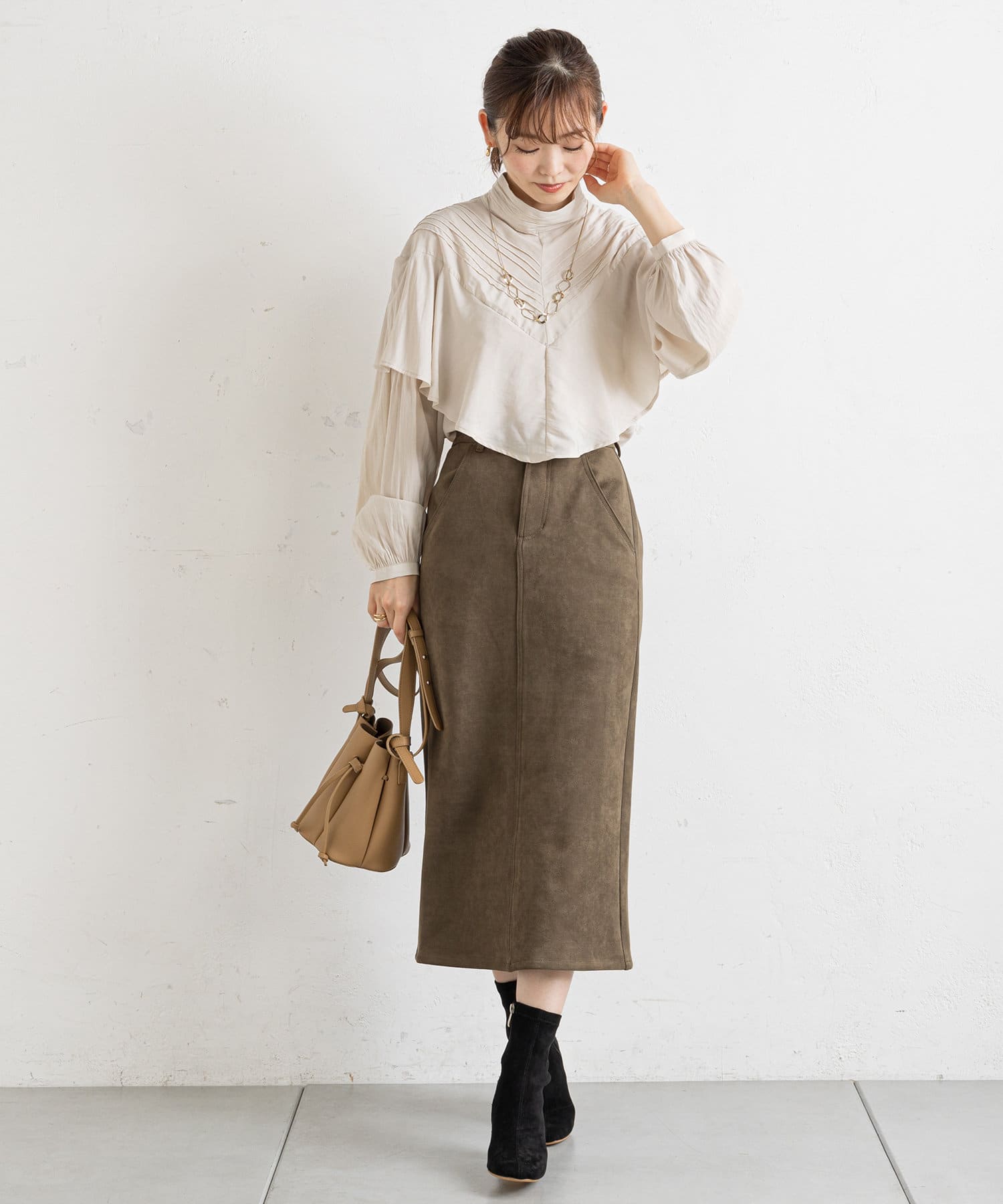 ・ブラウスをタックインしてキレイめお出かけコーデにも◎