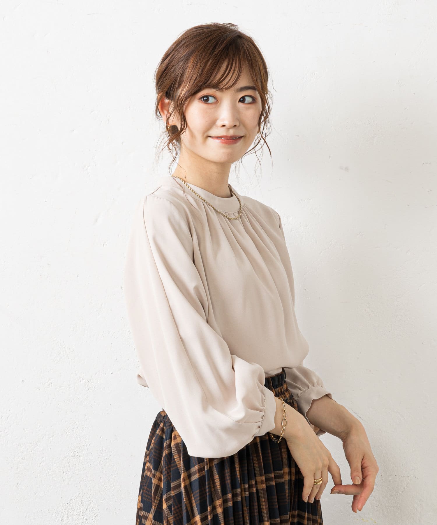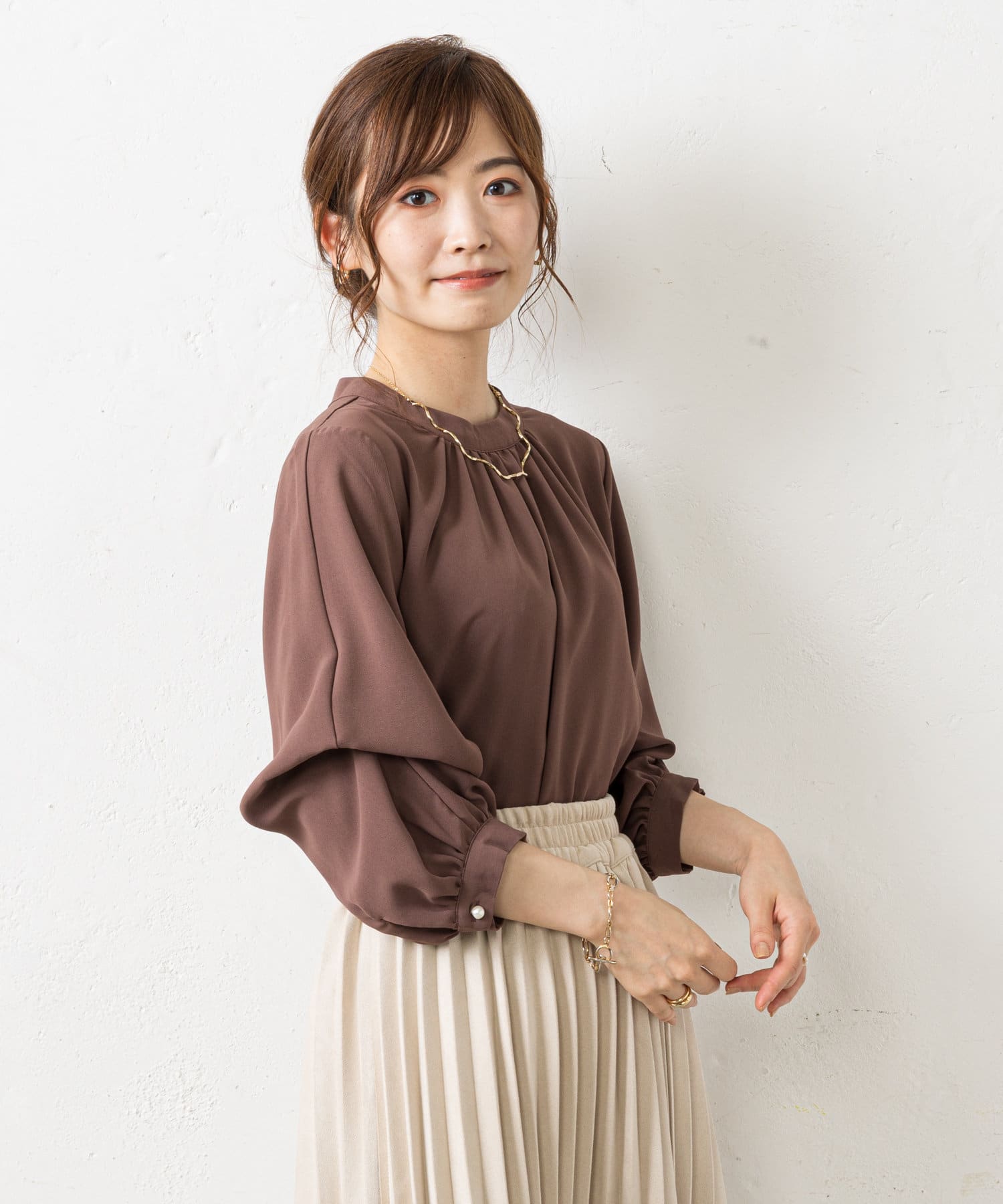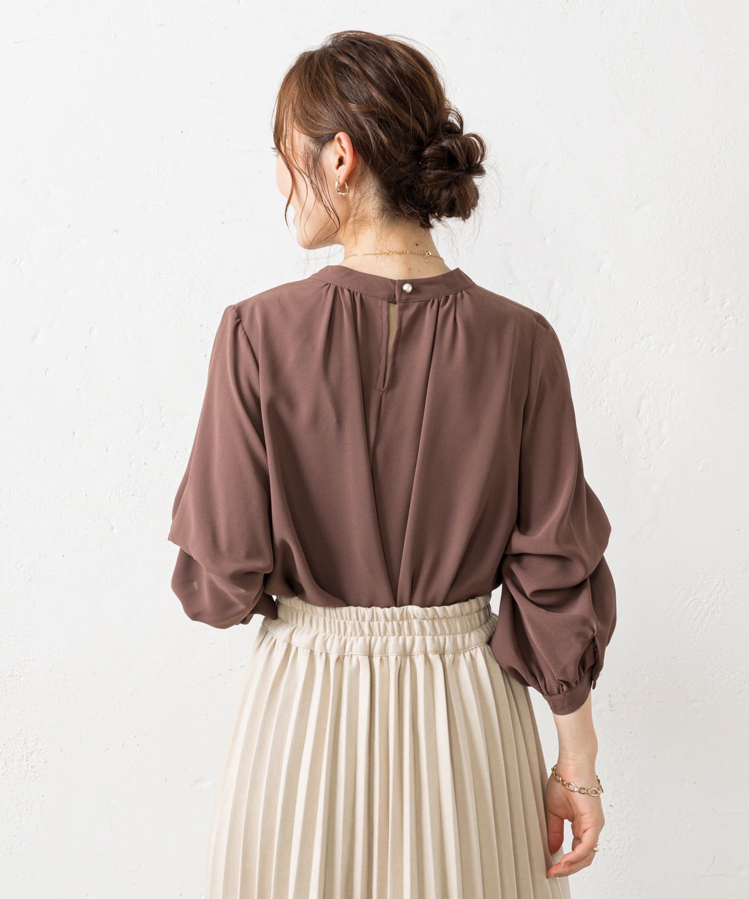 ●袖・首部分ついているパールボタンが女性らしい可憐な印象に