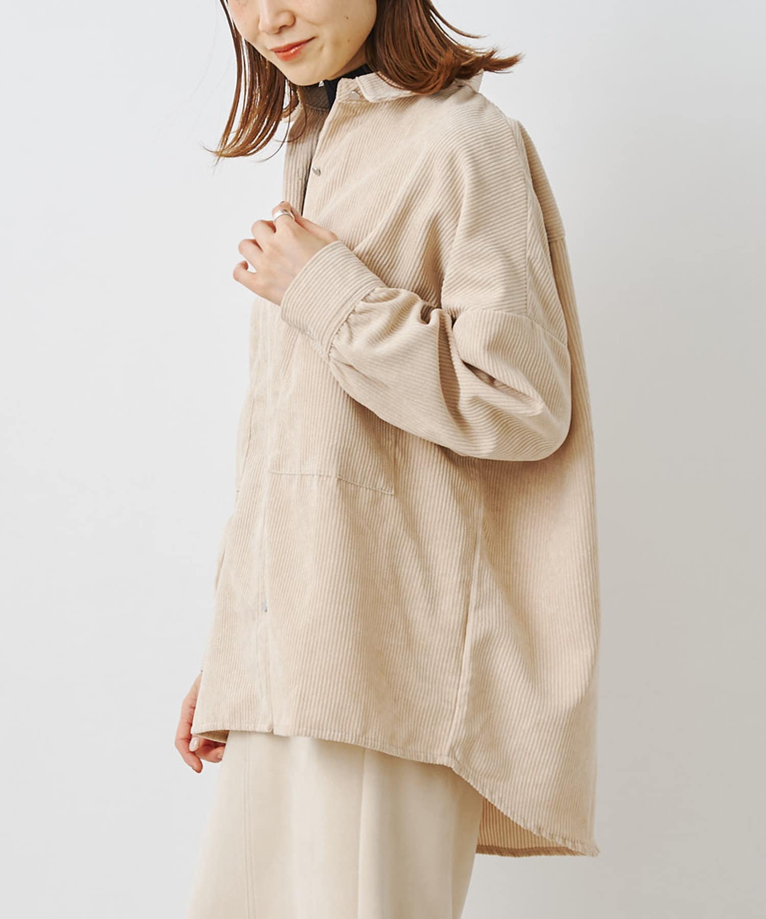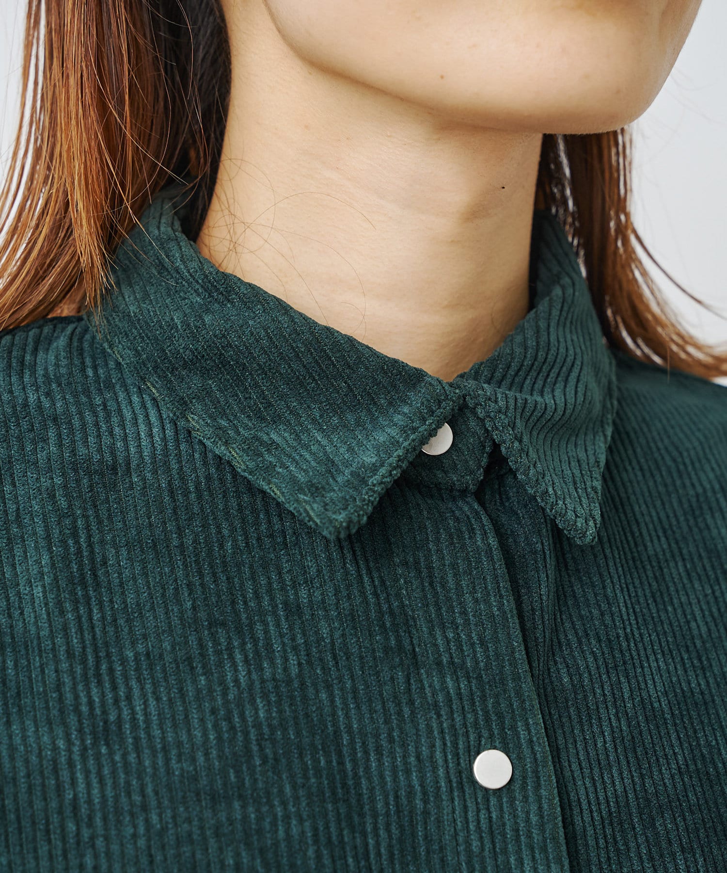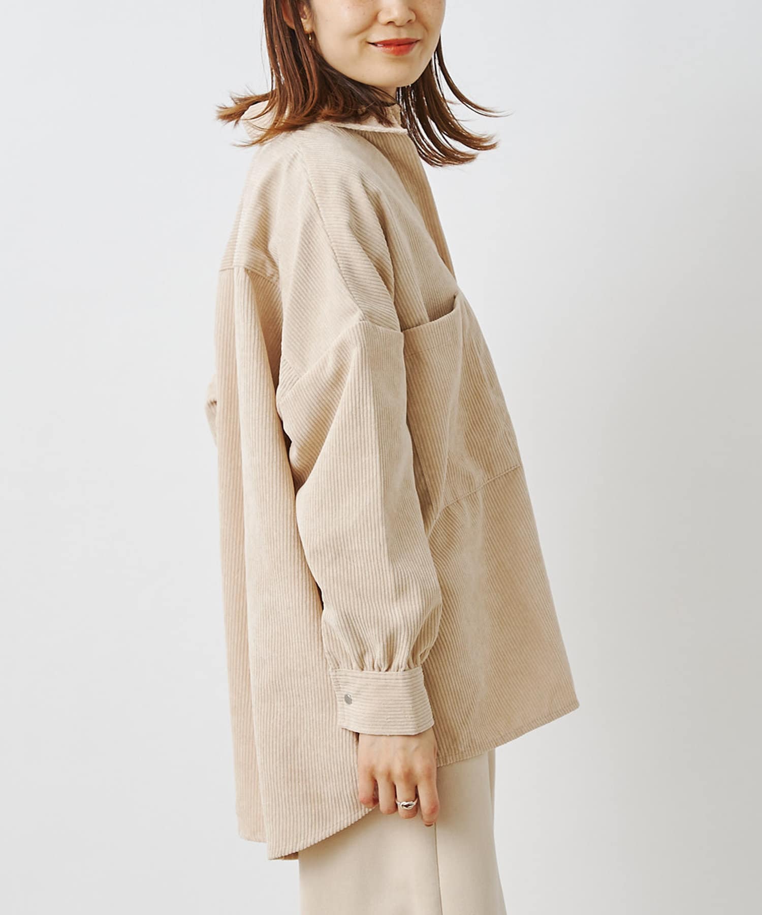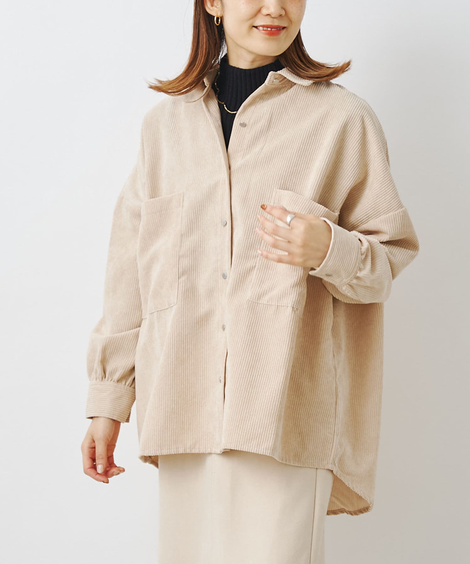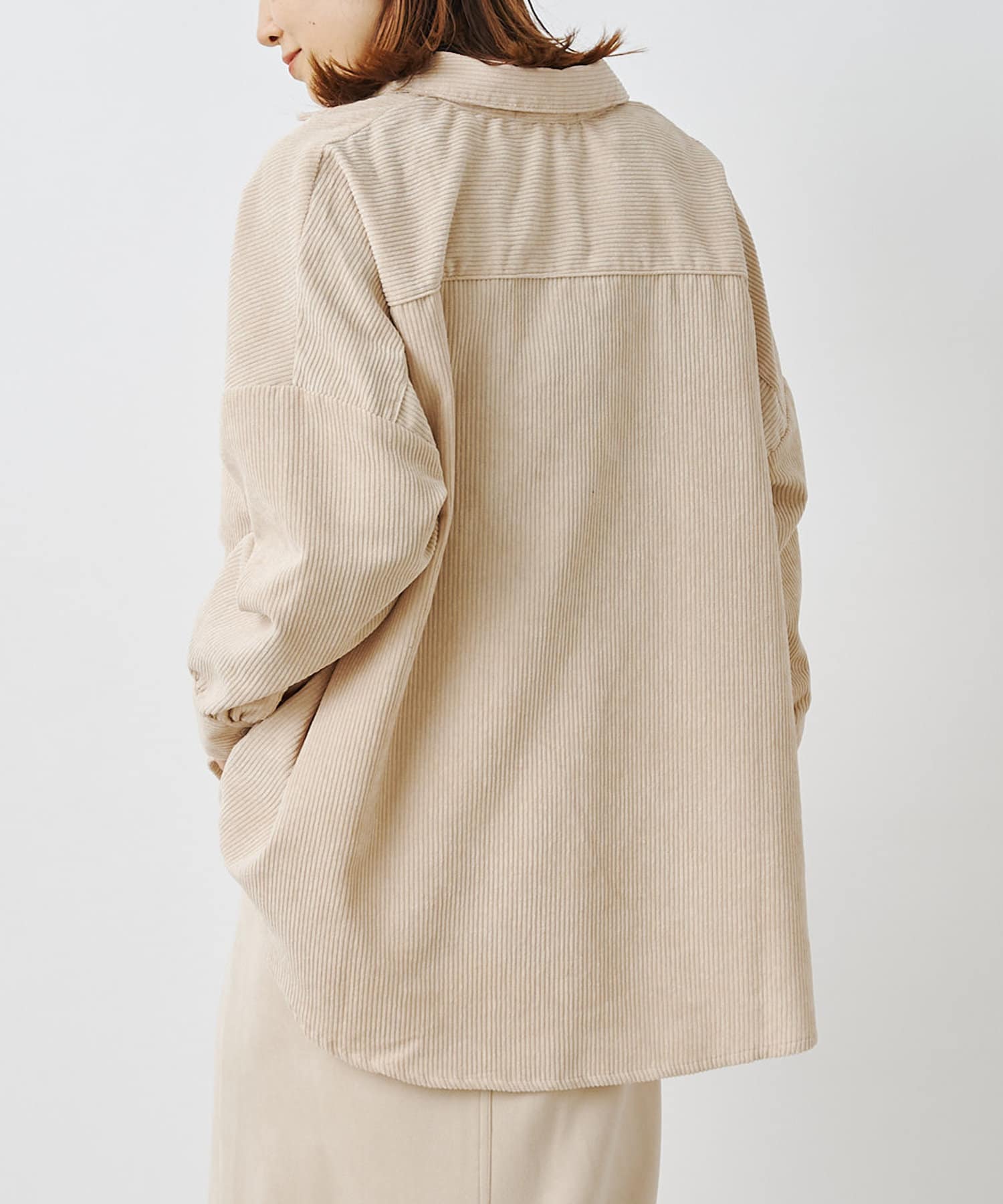 ●秋冬らしい温かみのあるコーデュロイ素材のシャツ