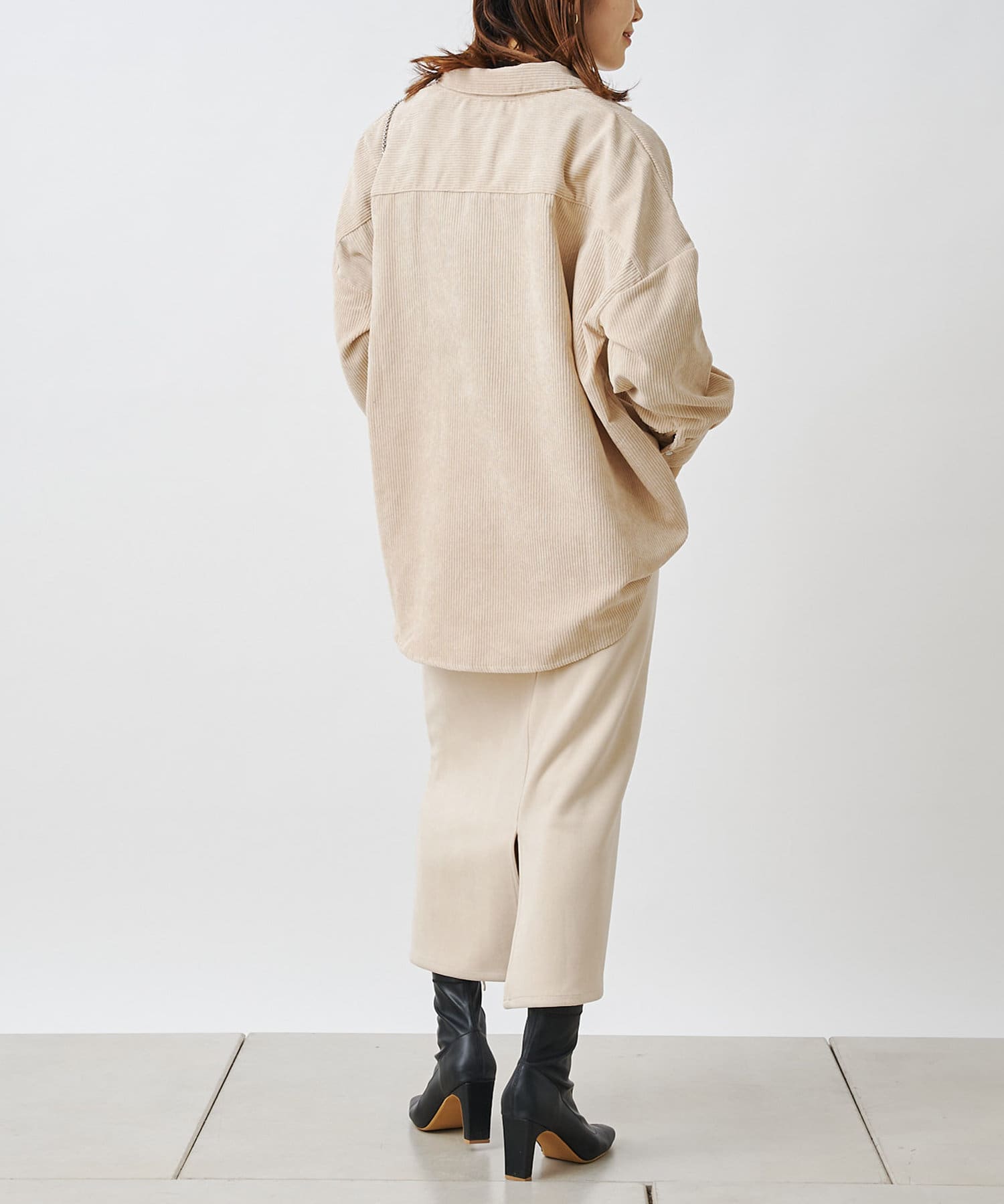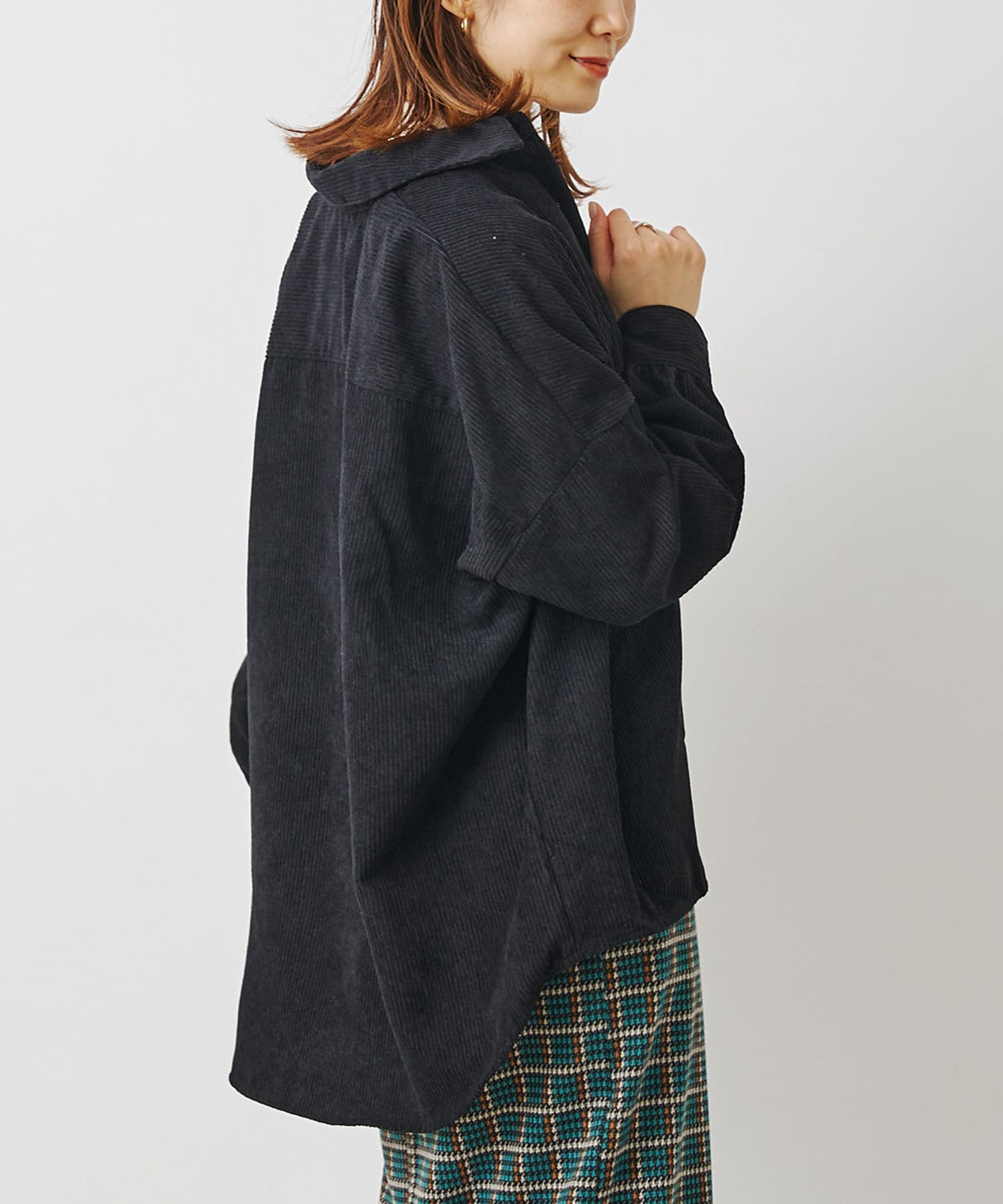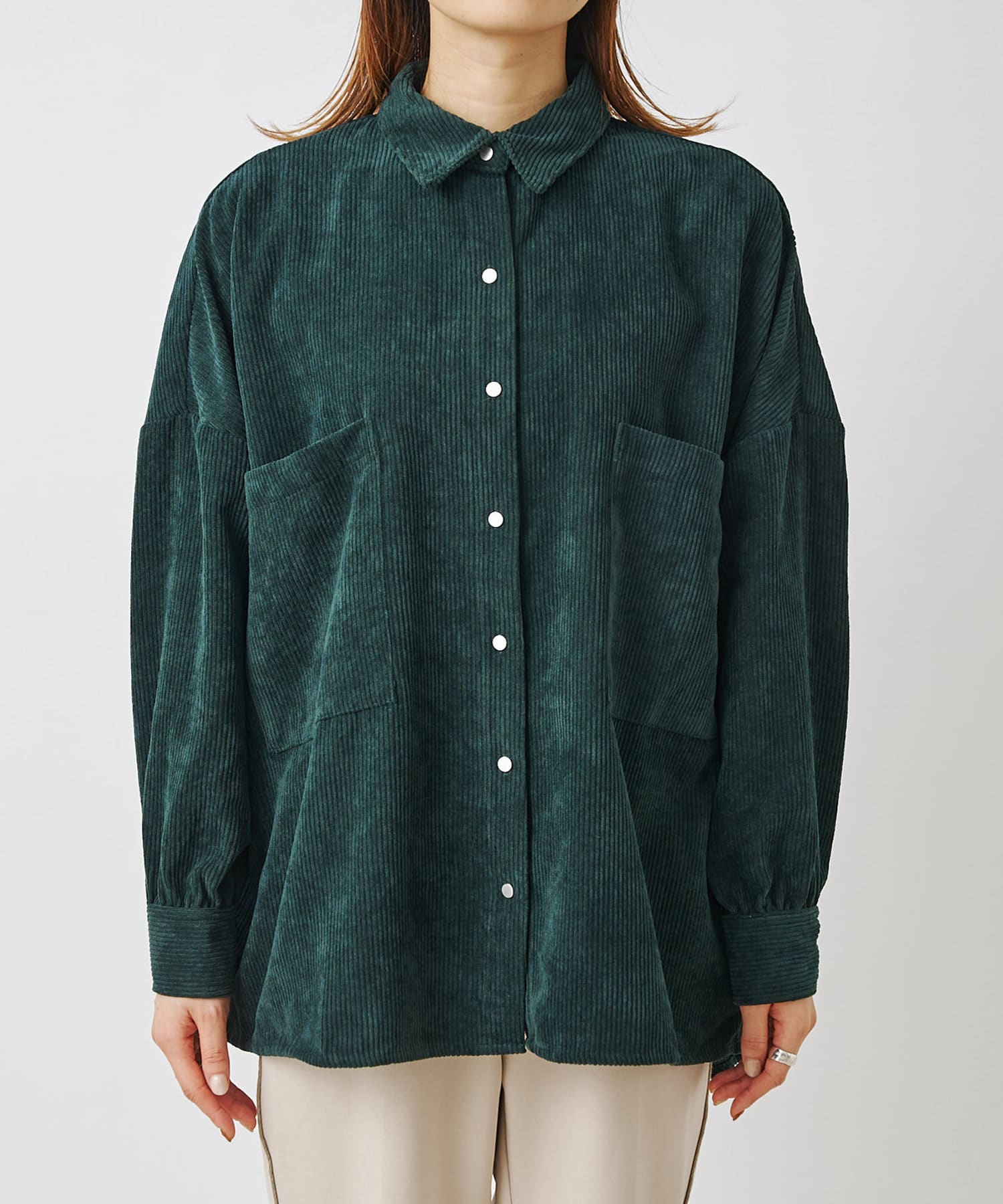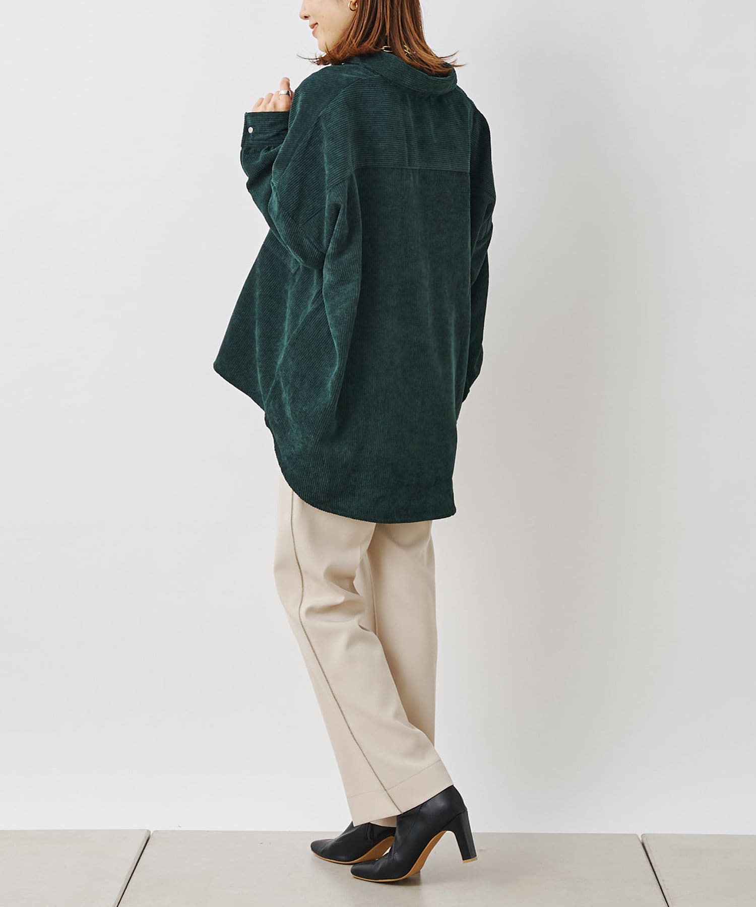 ●秋冬らしい温かみのあるコーデュロイ素材のシャツ