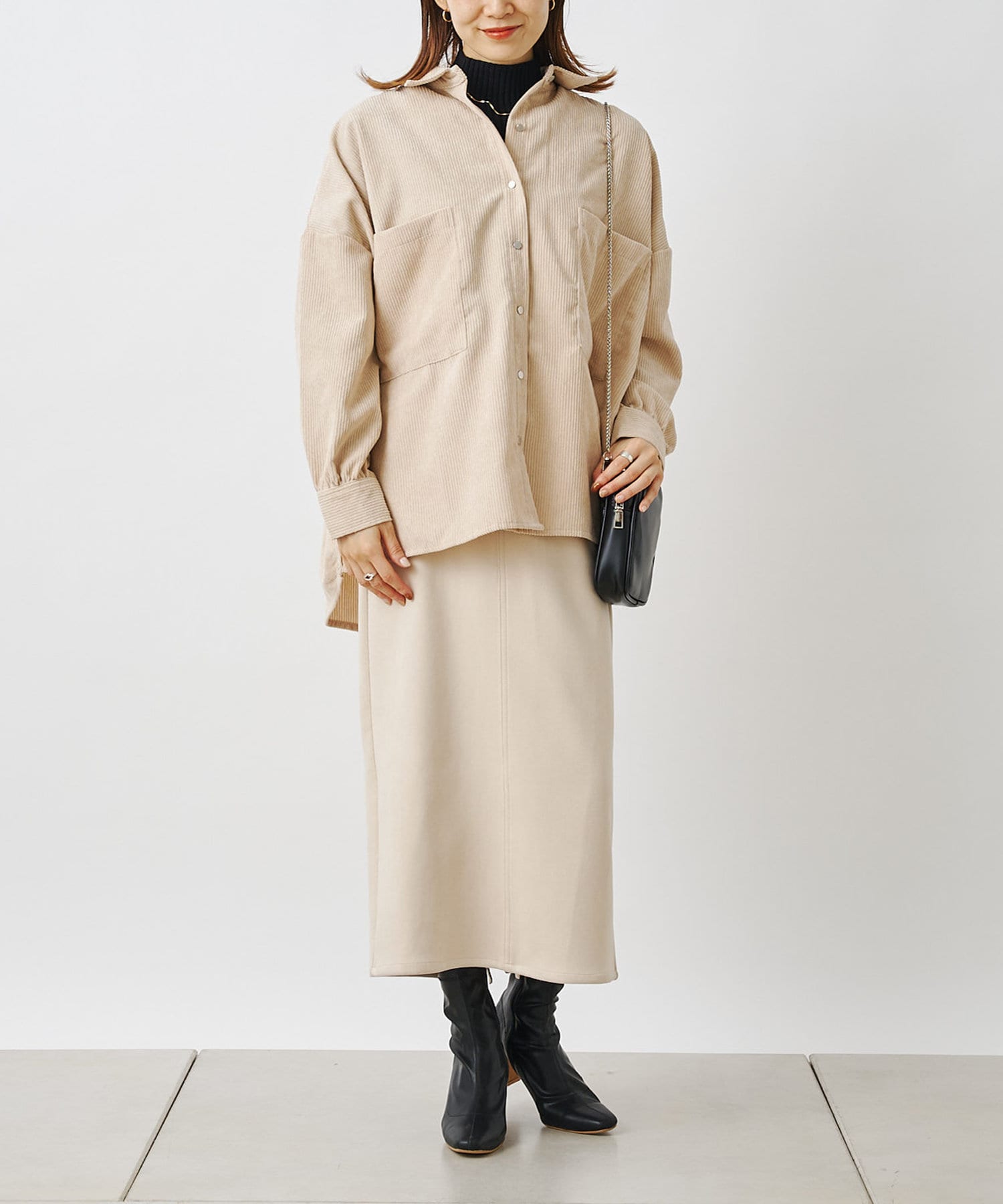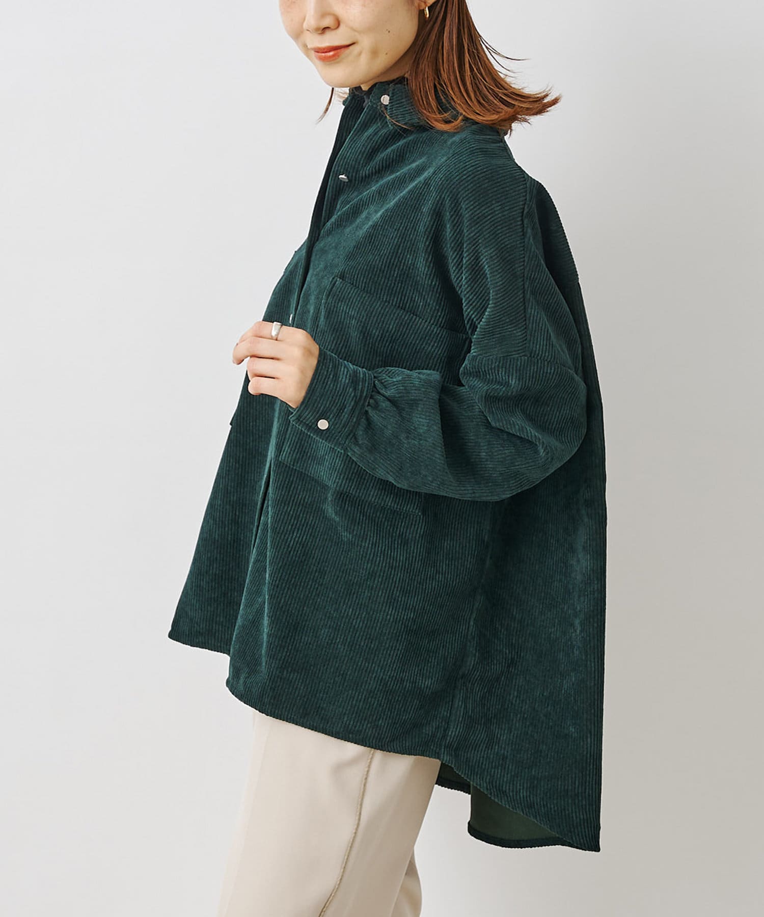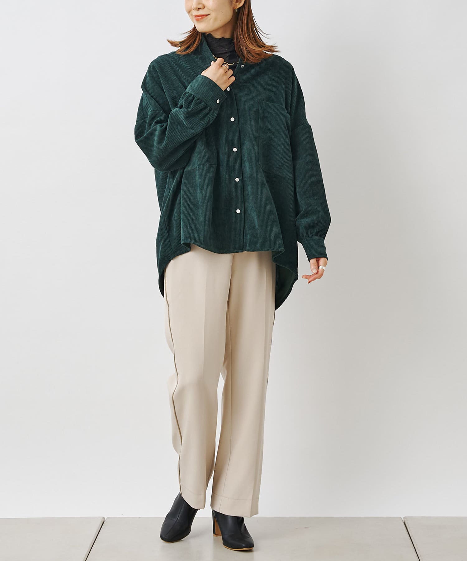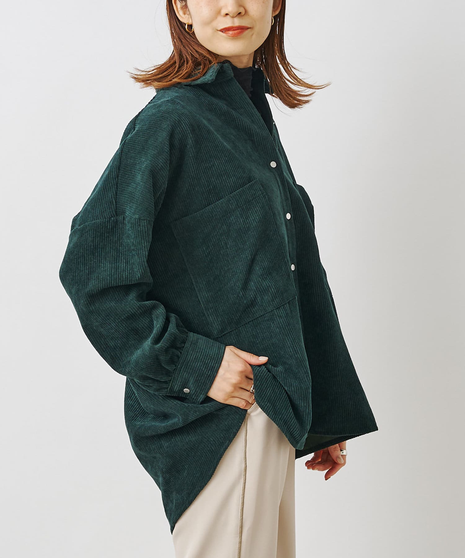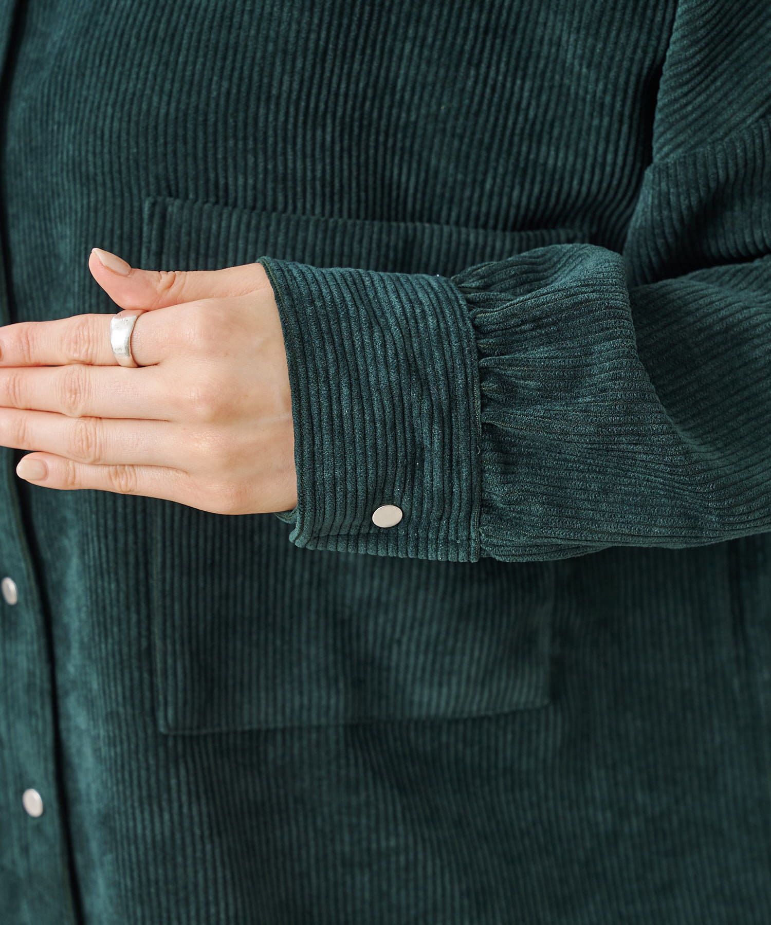 ●秋冬らしい温かみのあるコーデュロイ素材のシャツ