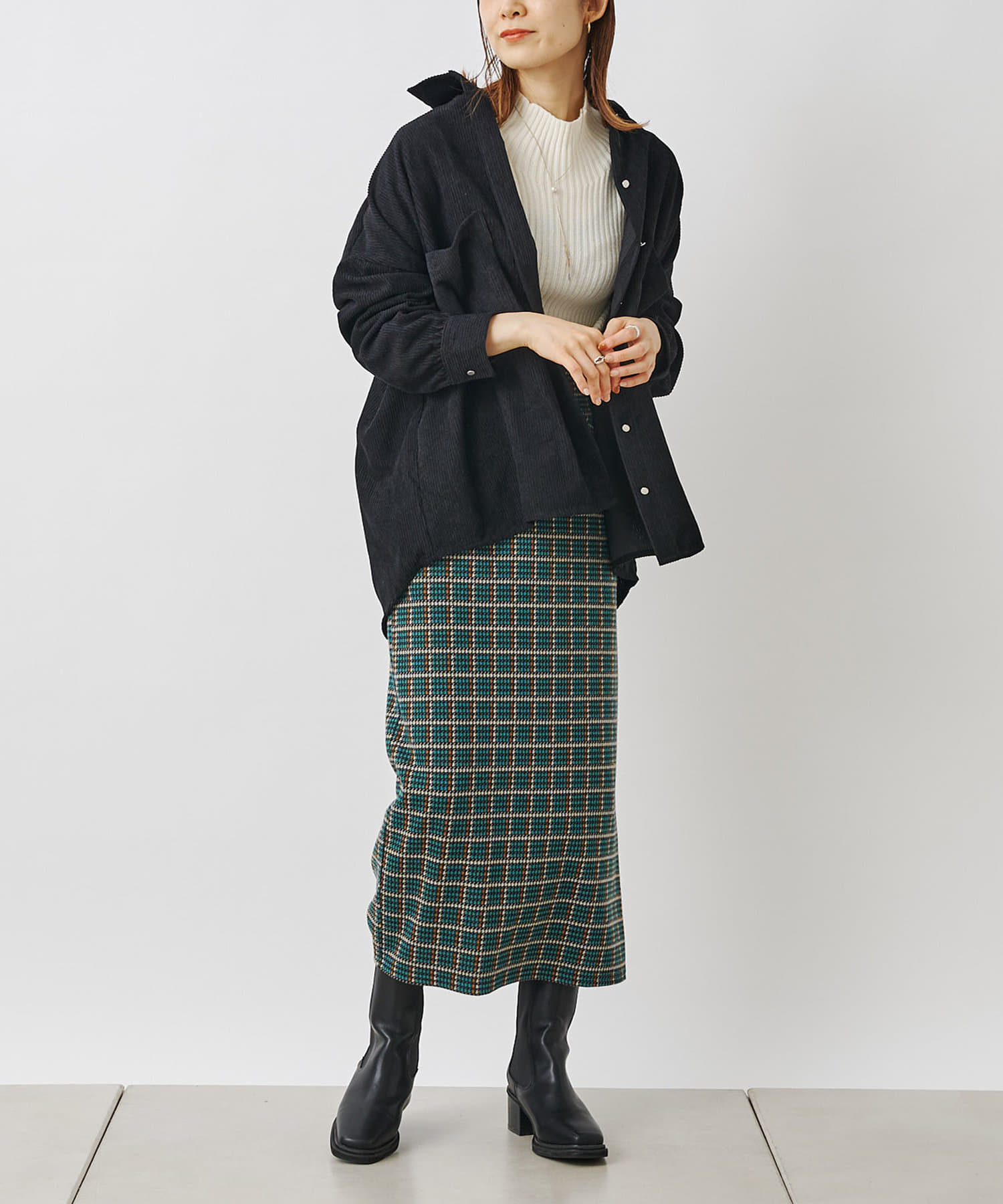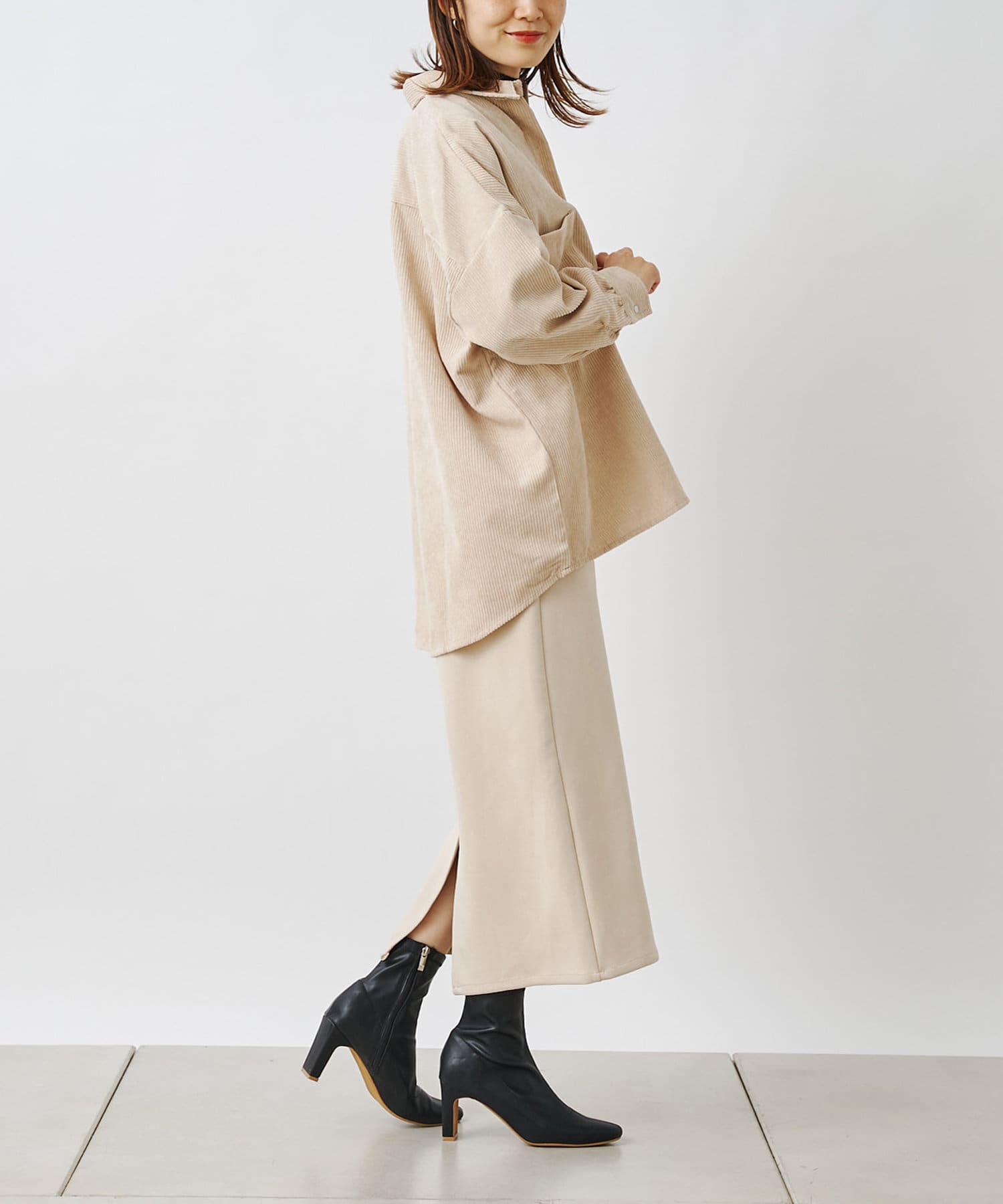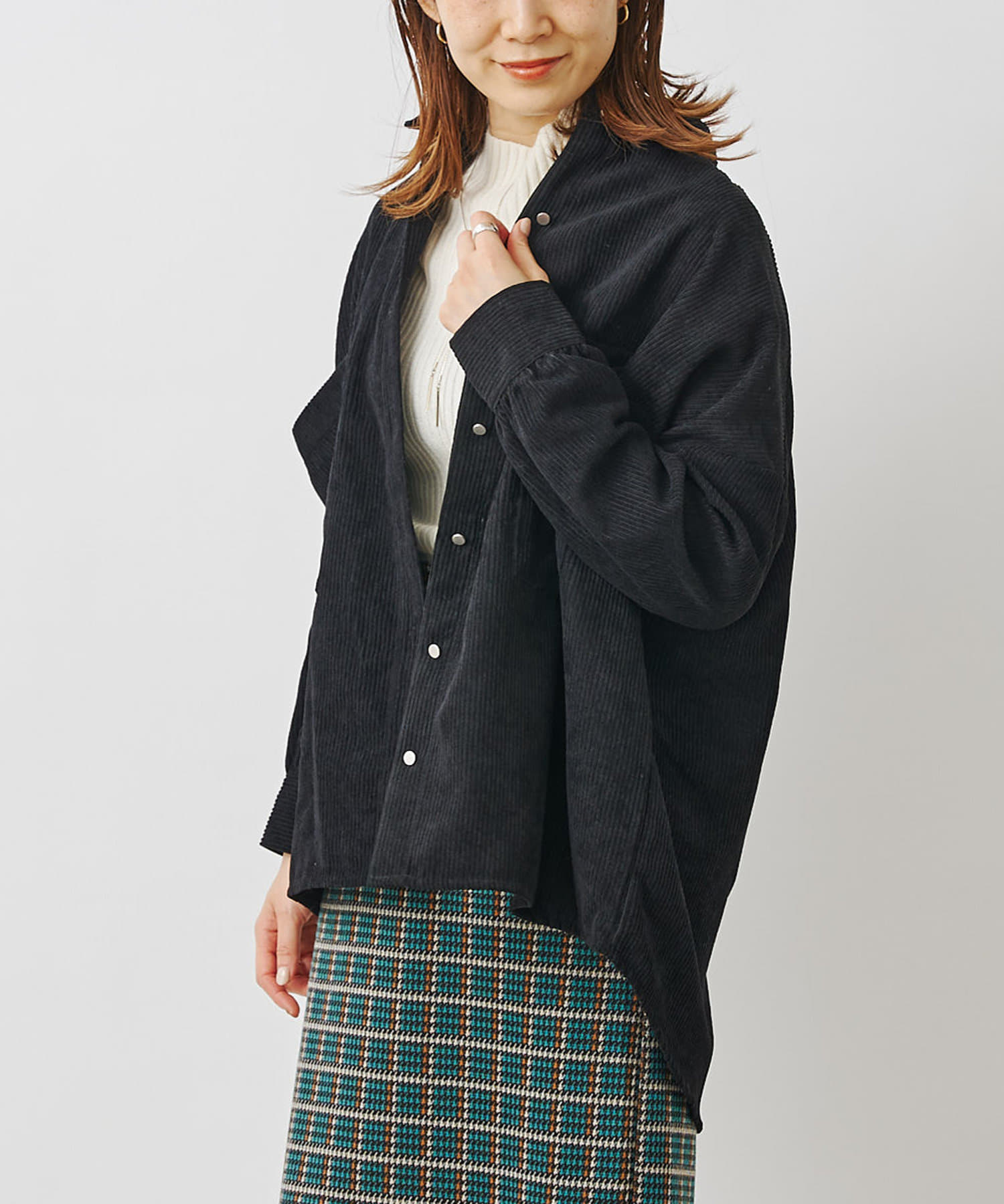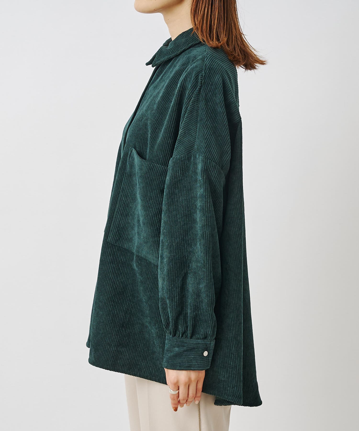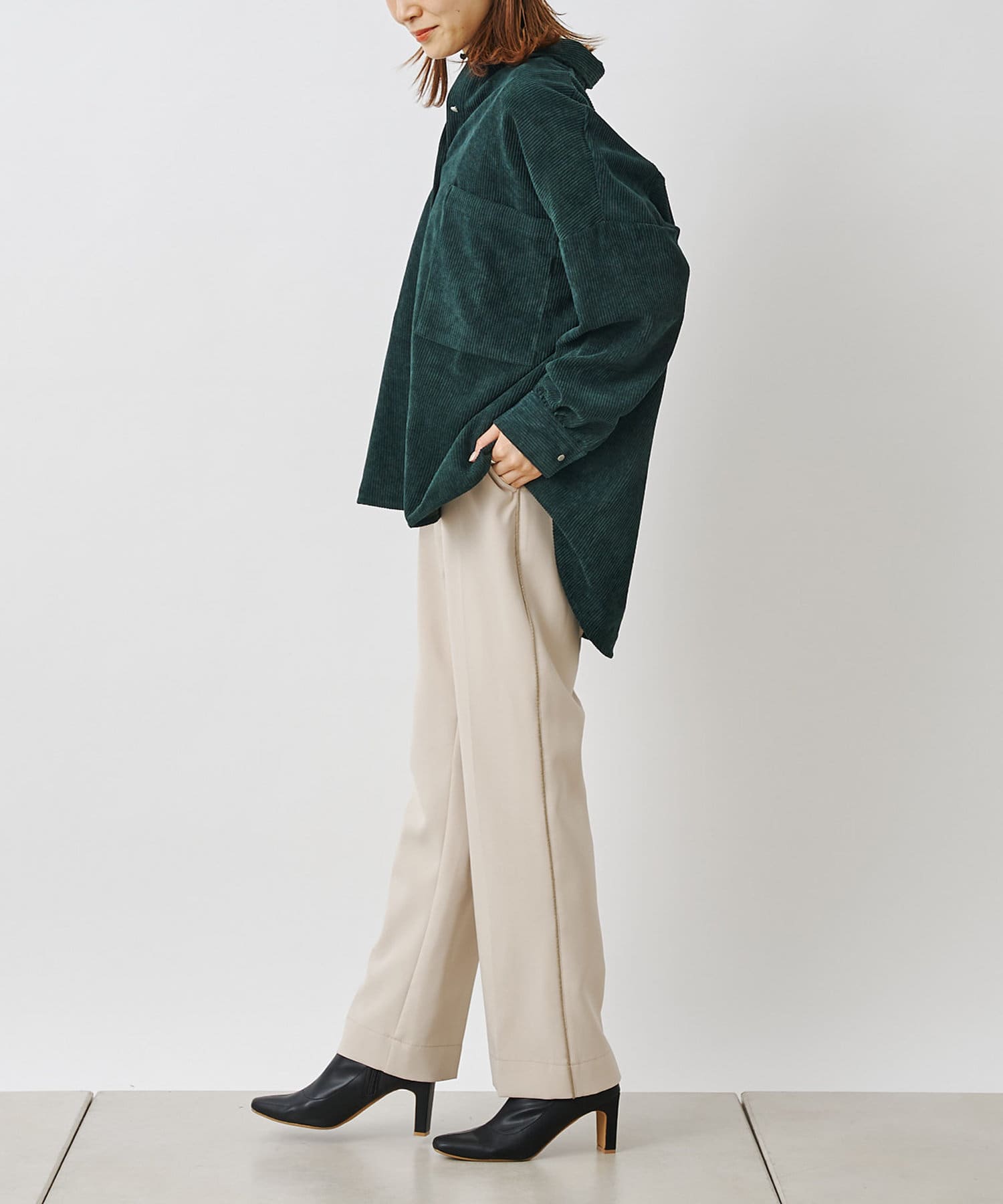 ●秋冬らしい温かみのあるコーデュロイ素材のシャツ