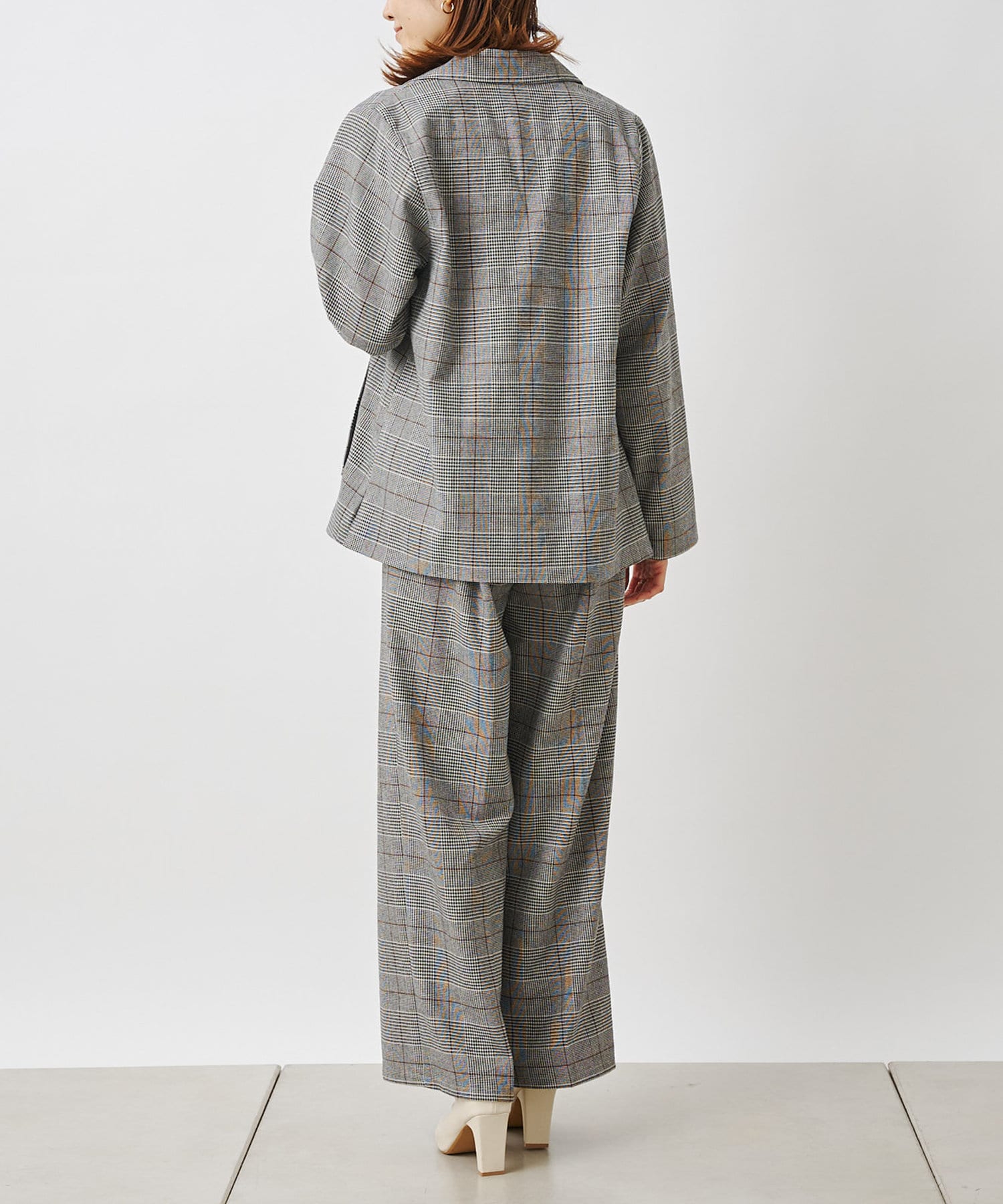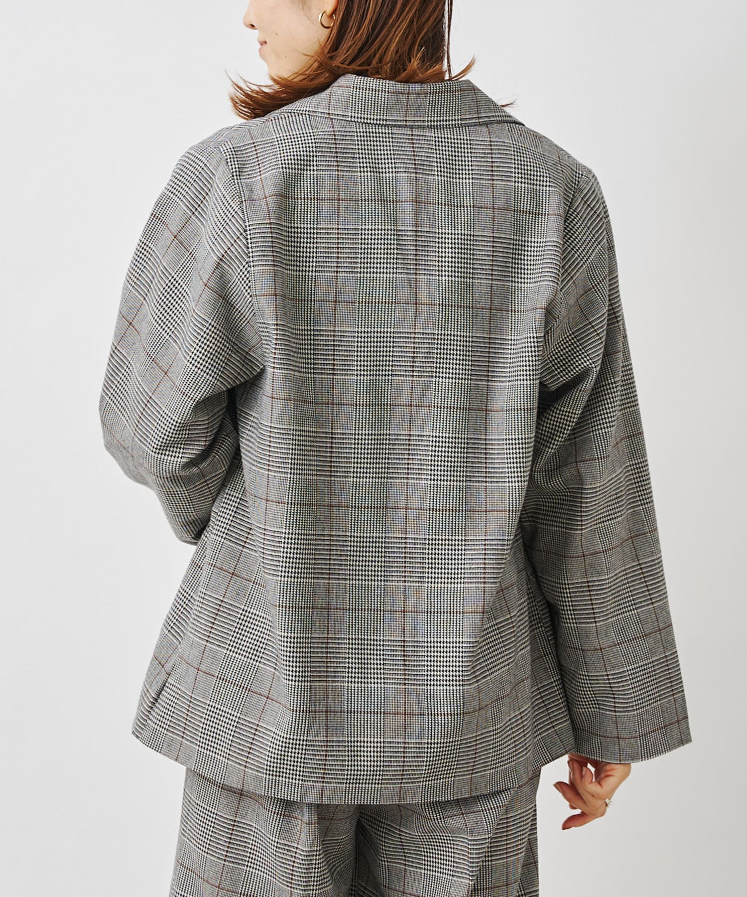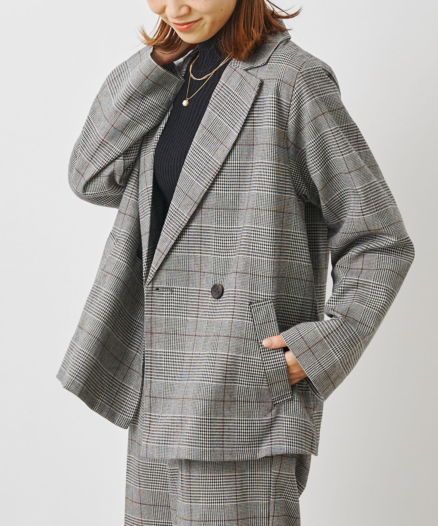 【セットアップ着用可】先染めチェックダブルテーラードジャケット