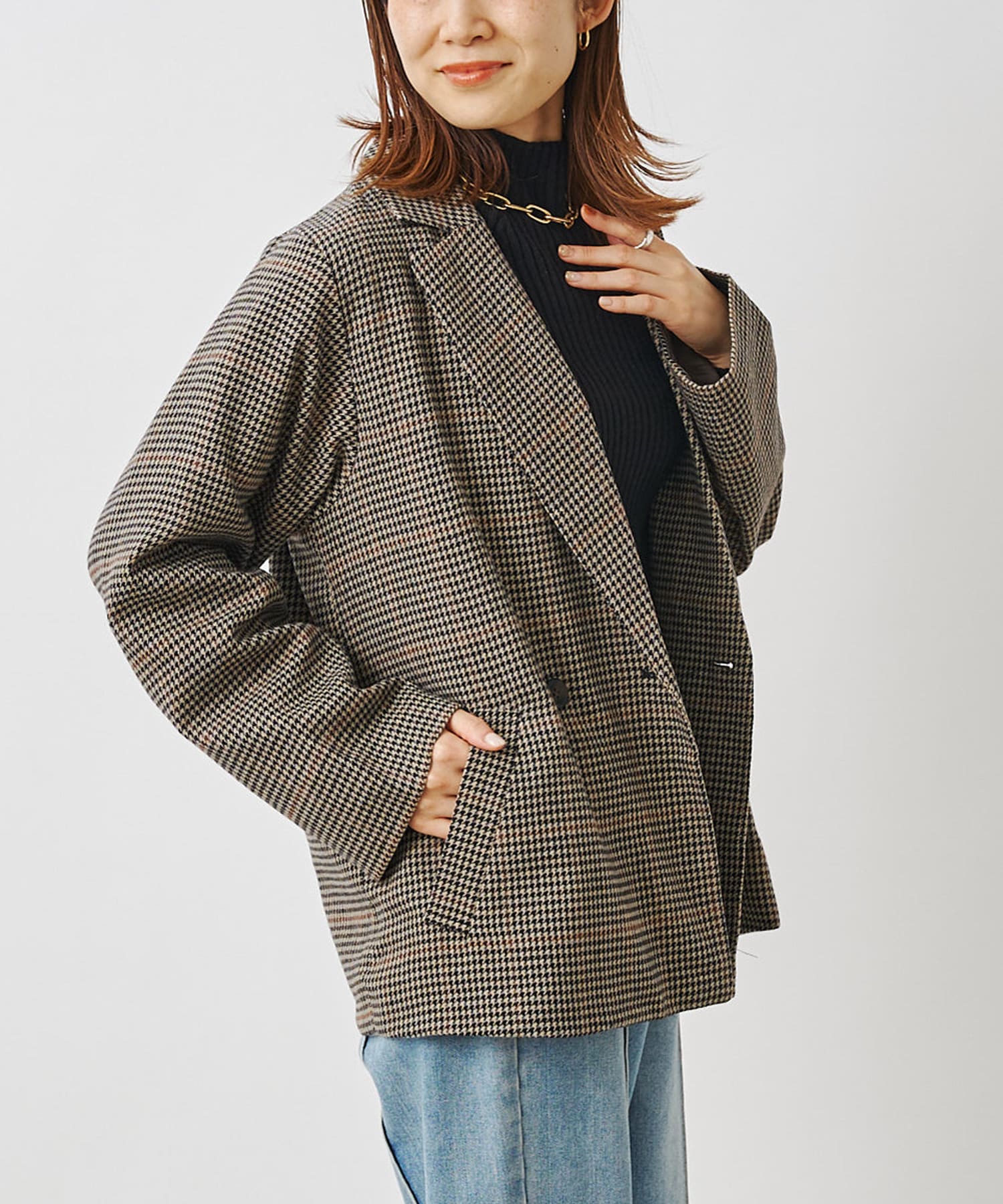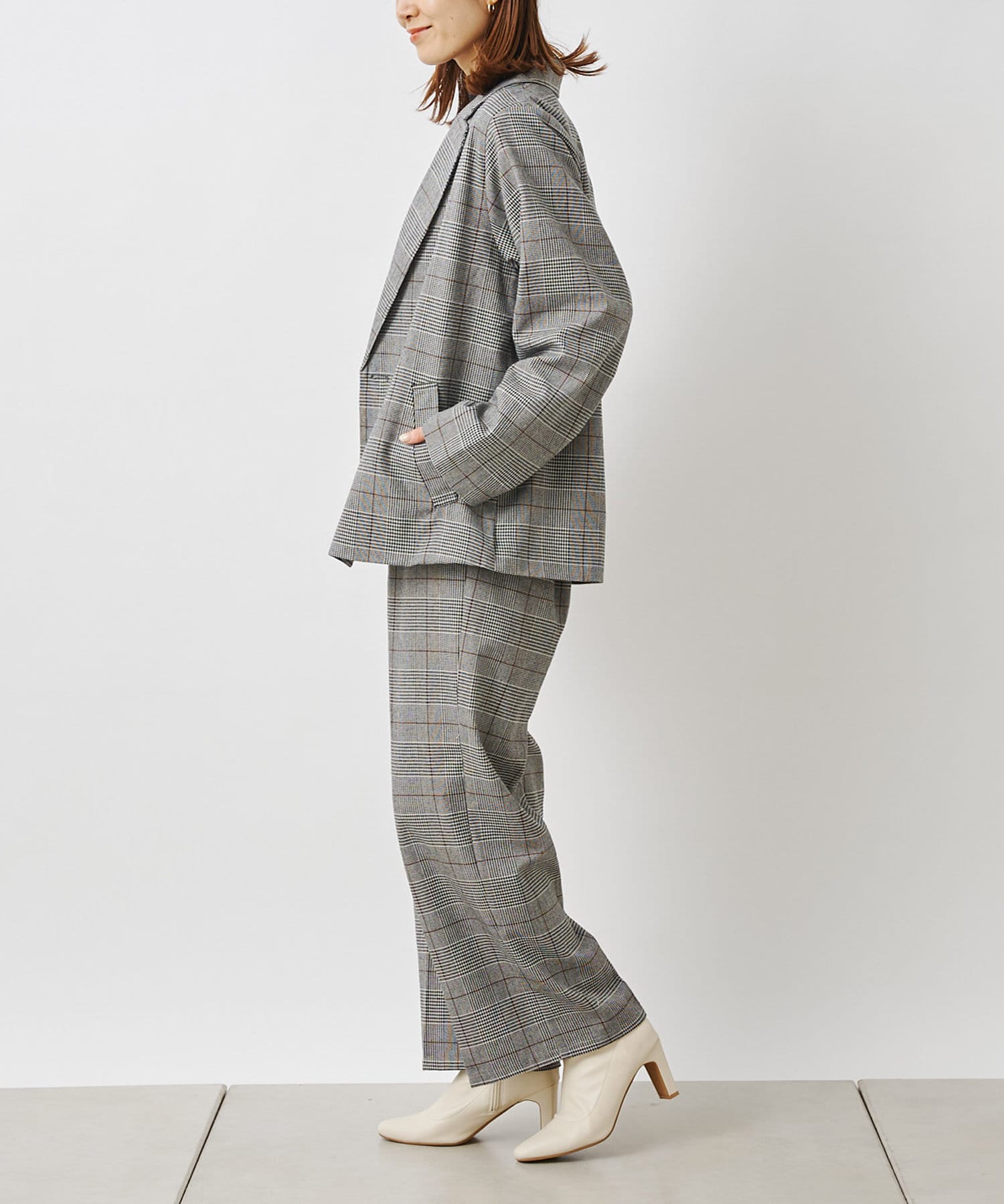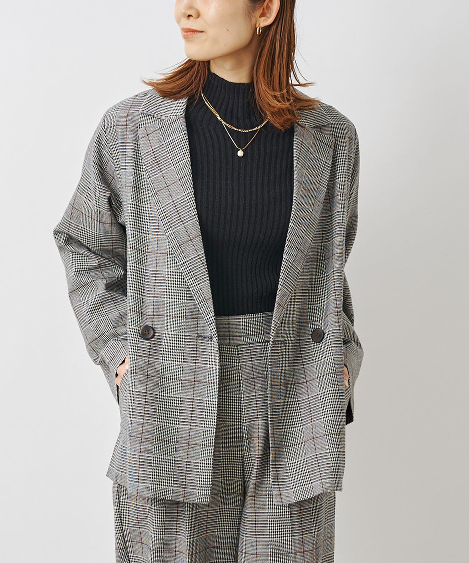 【セットアップ着用可】先染めチェックダブルテーラードジャケット