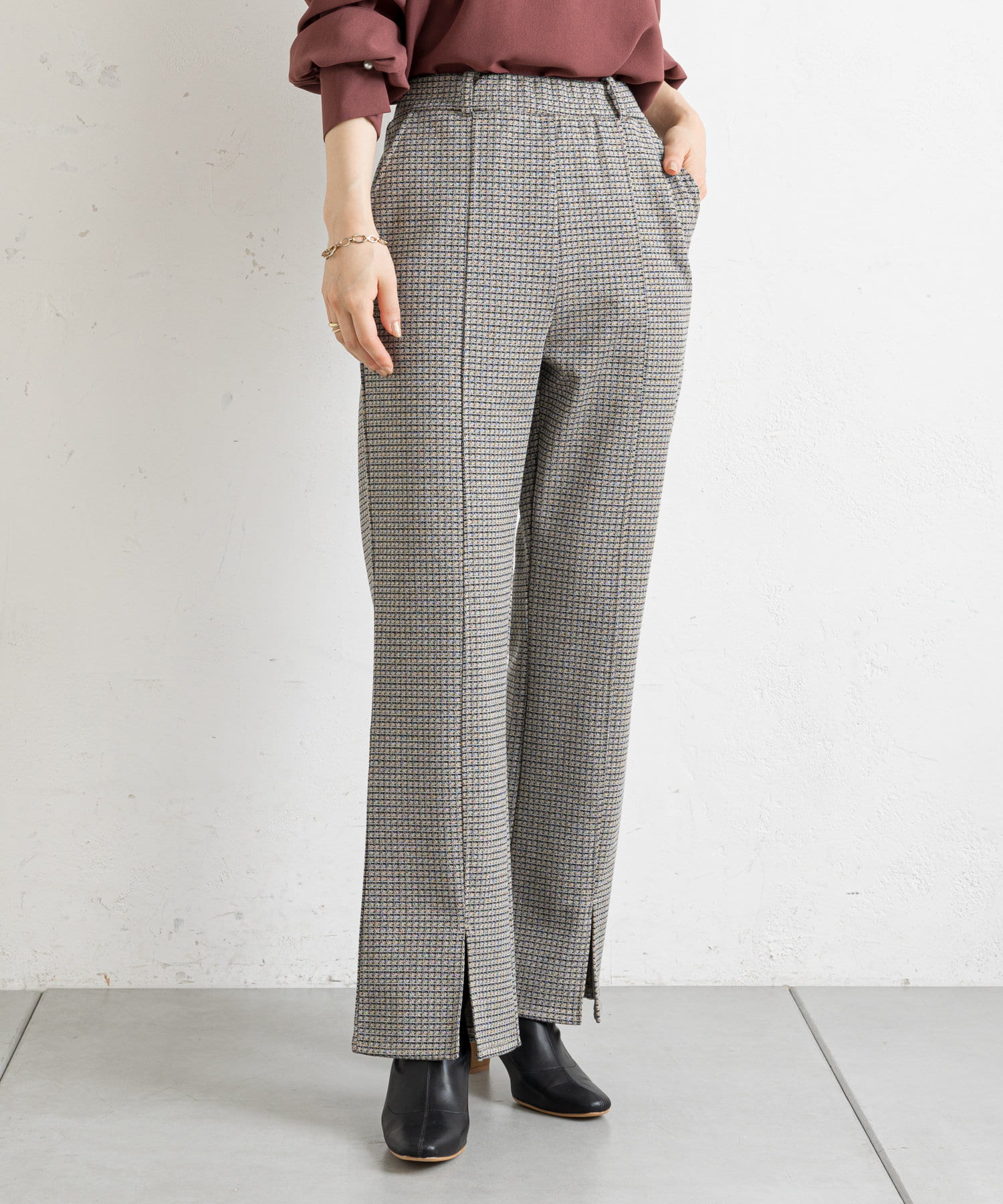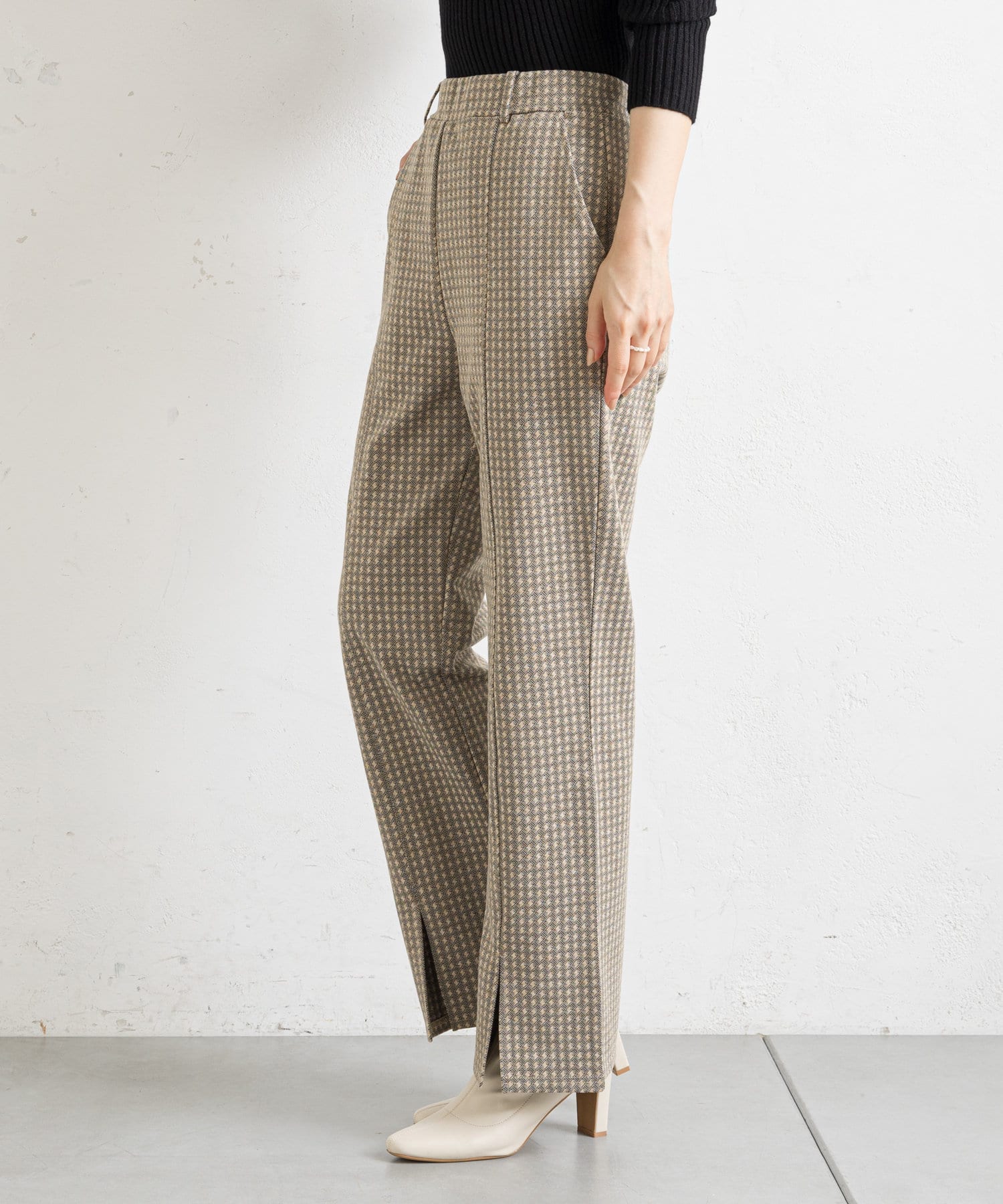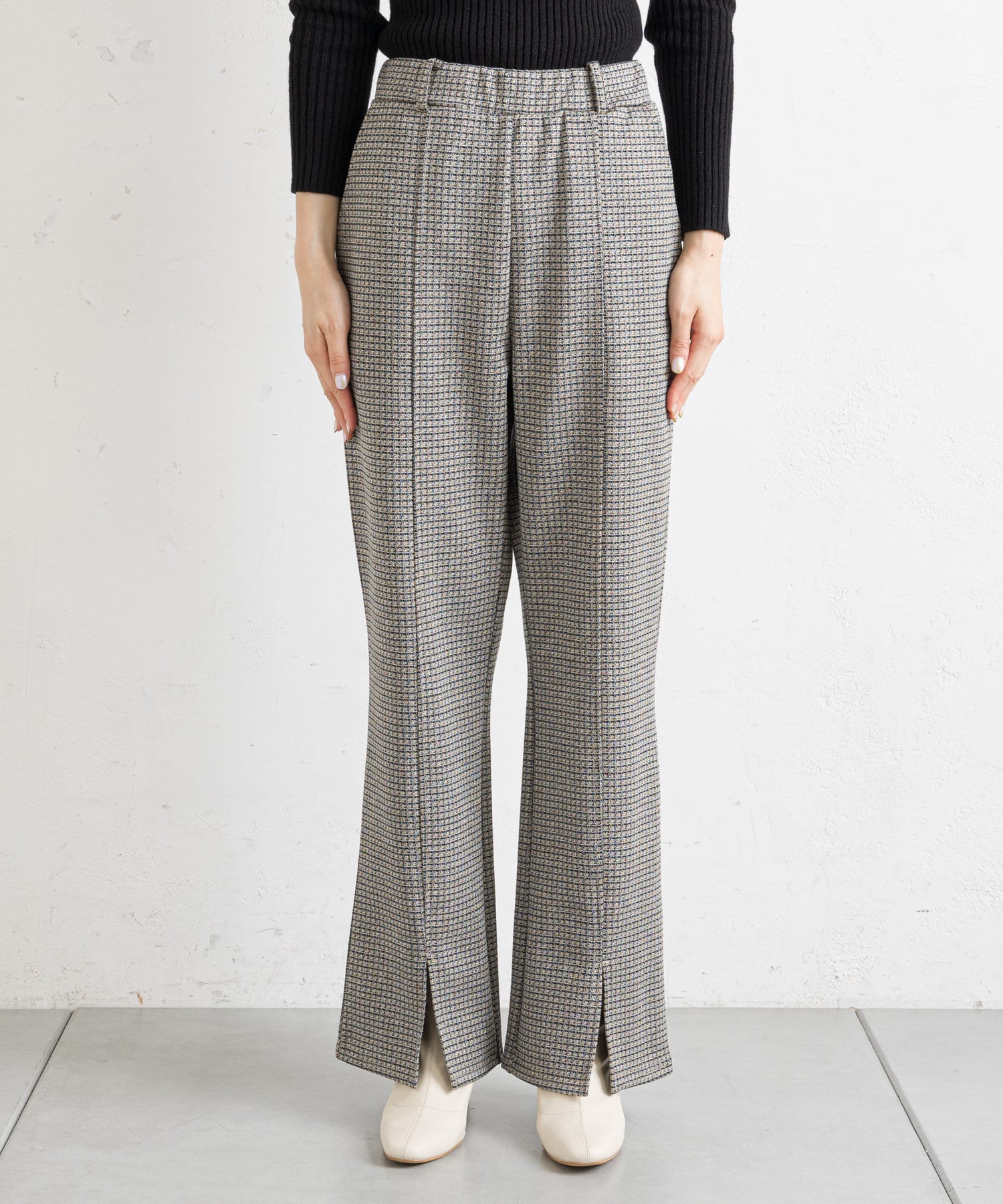 【ウエストゴム仕様】カットジャガードフロントスリットパンツ