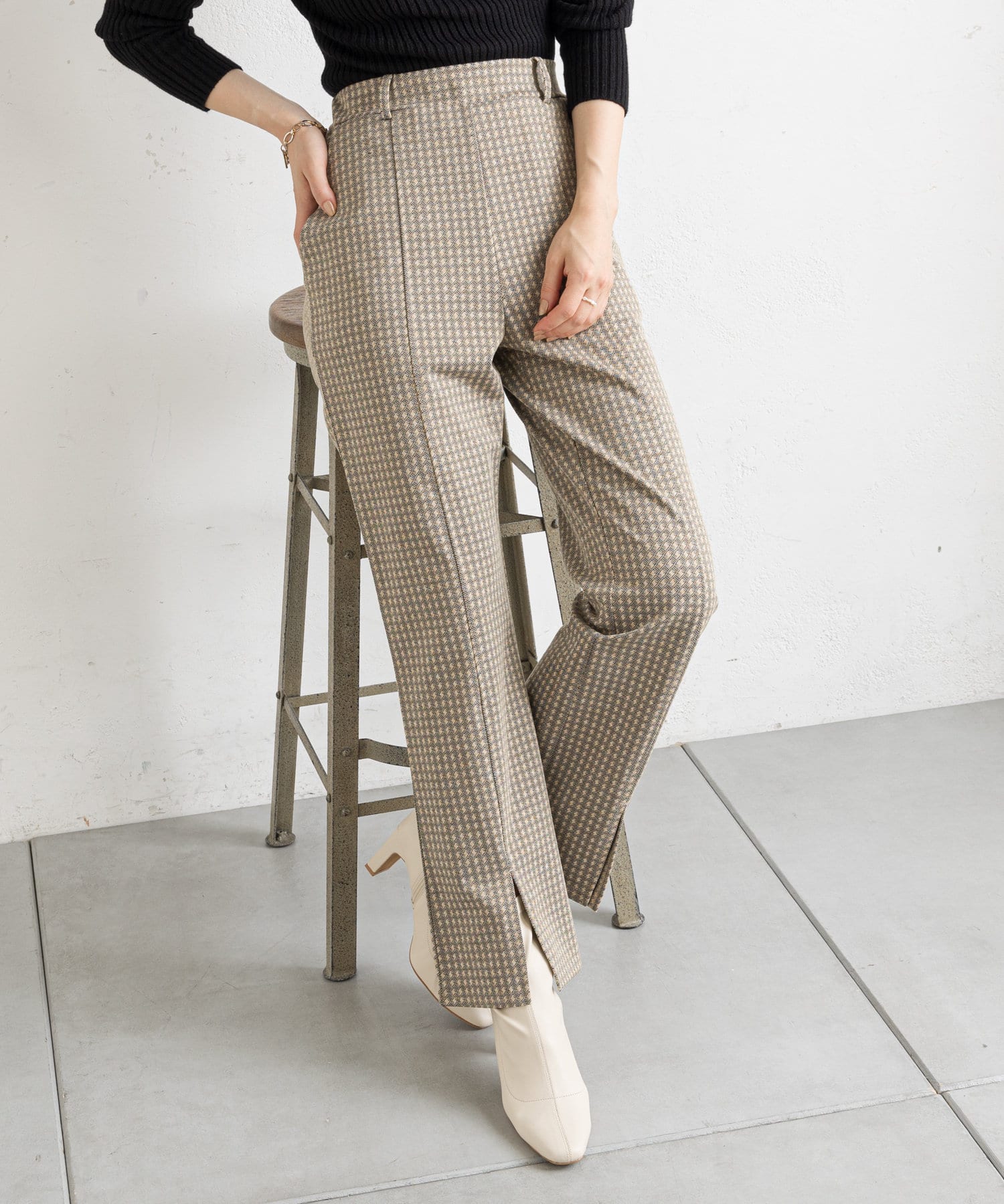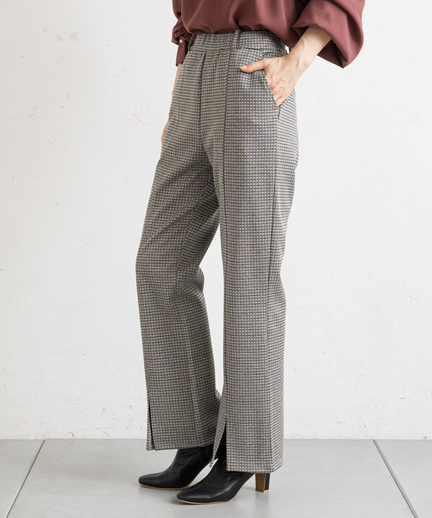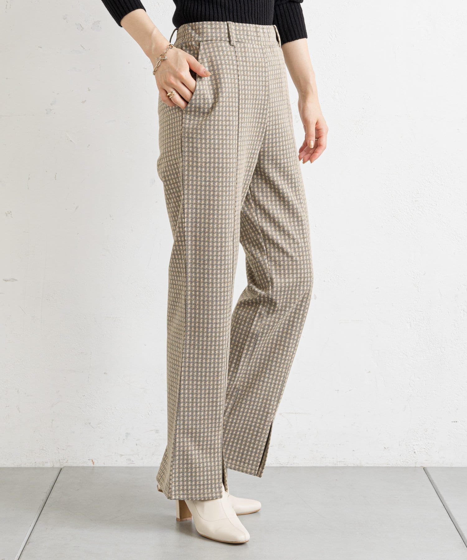 【ウエストゴム仕様】カットジャガードフロントスリットパンツ