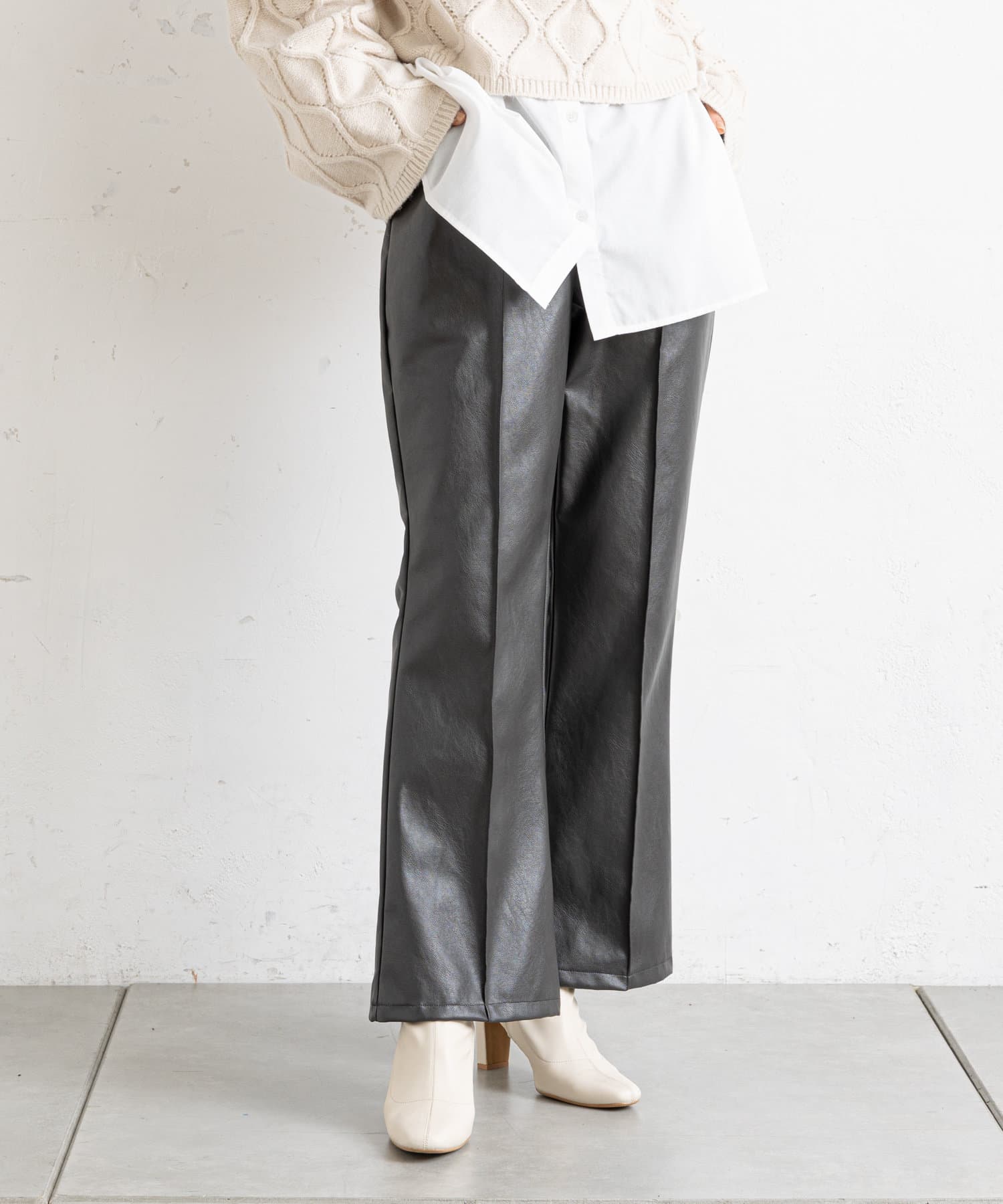 TOP > prose verse > レディース > パンツ > その他パンツ > 【バックウエストゴム仕様】合皮センターピンタックパンツ