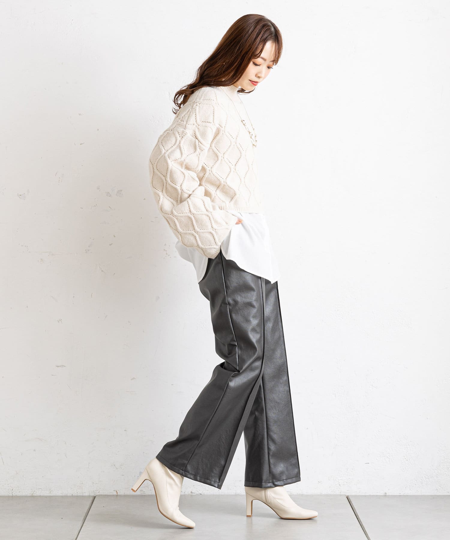 ●加えるだけで洗練されたスタイルに仕上がるエコレザーパンツ