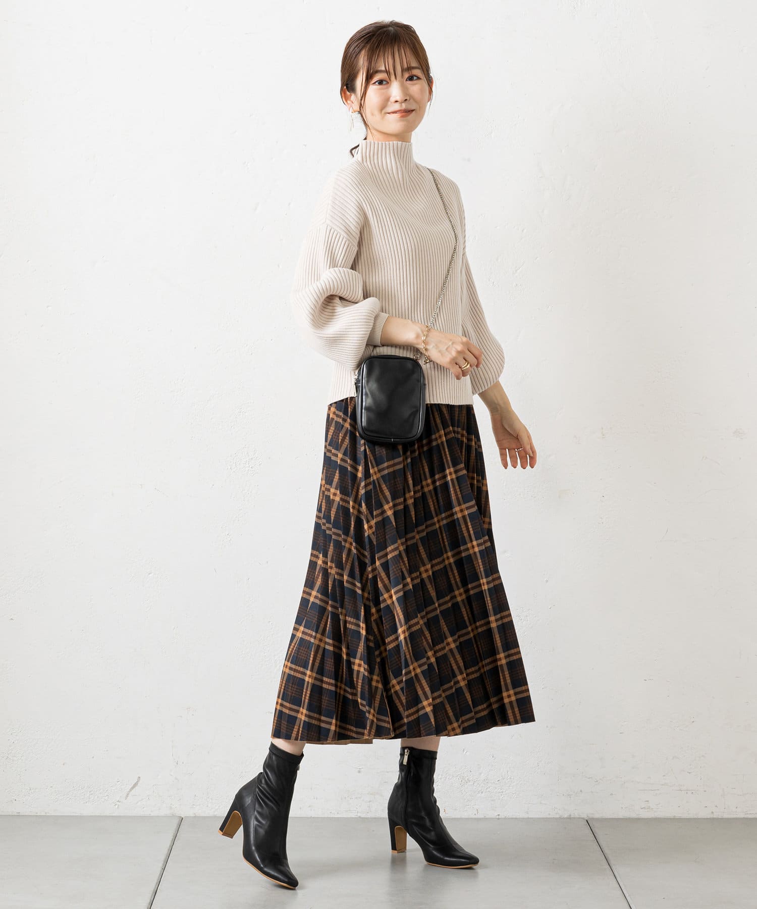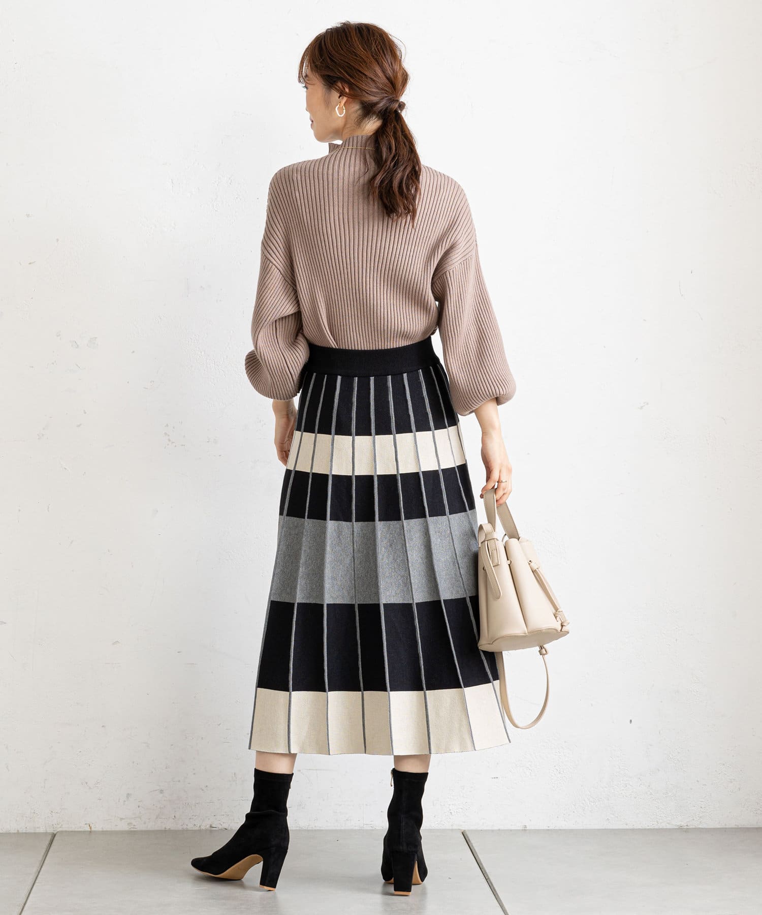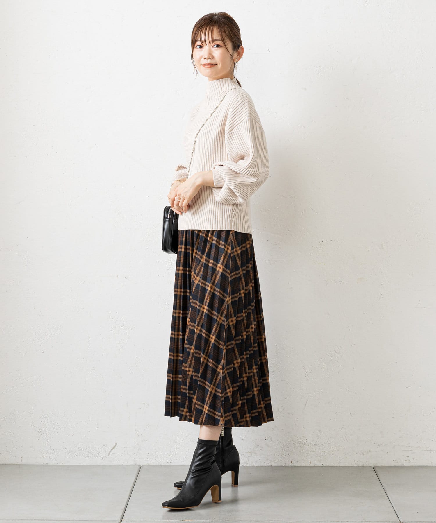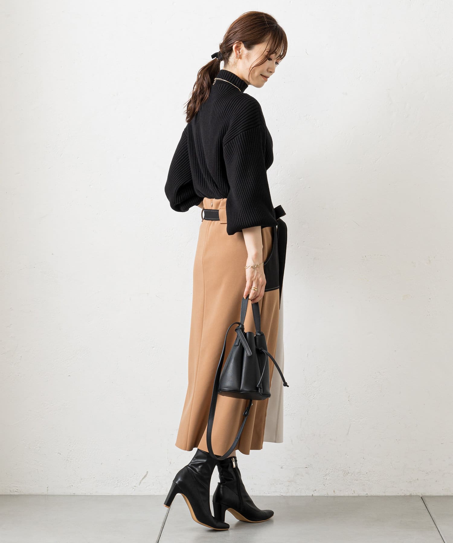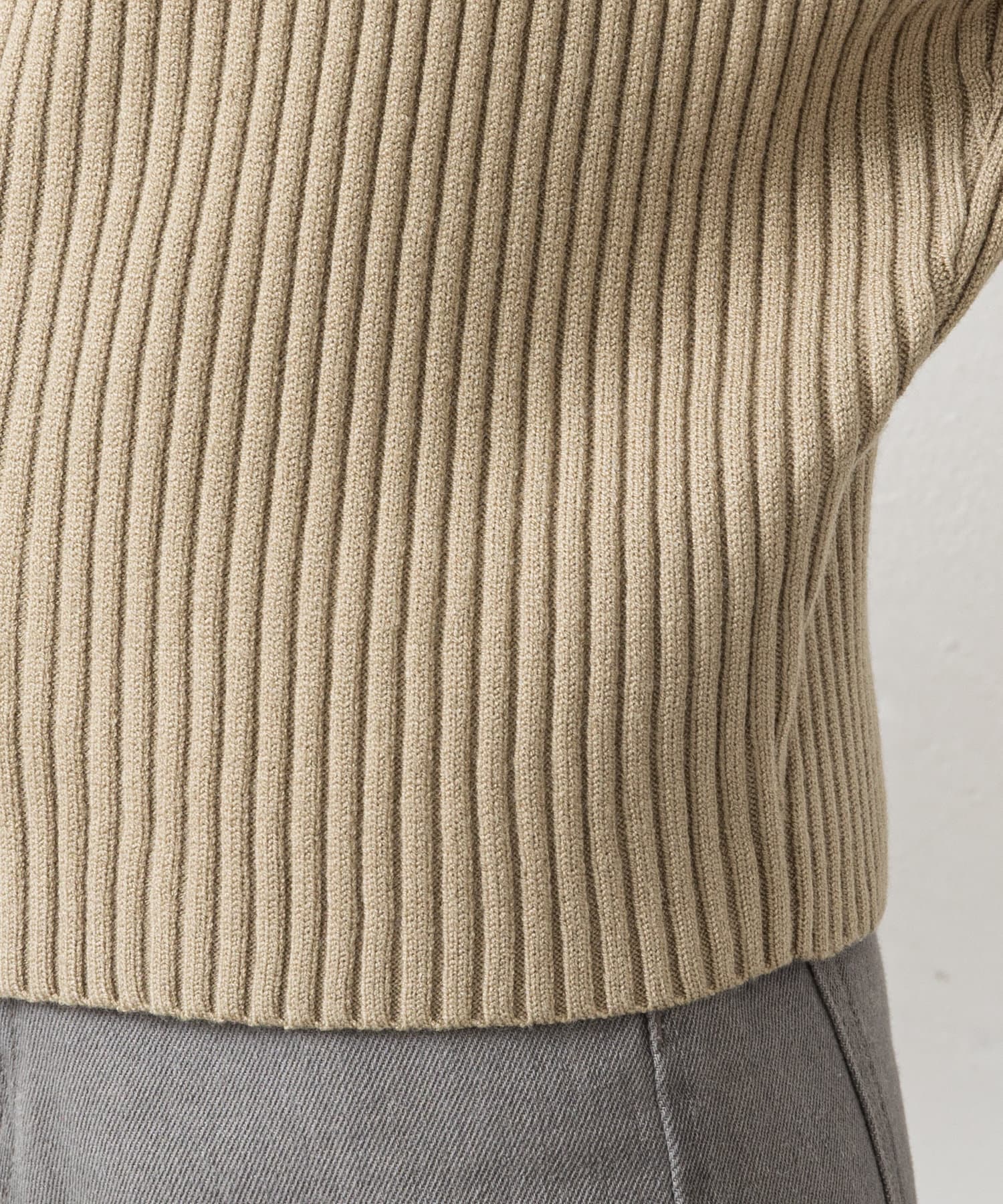 ●リブ切り替えの無い滑らかなボトルネックが首元のアクセントに