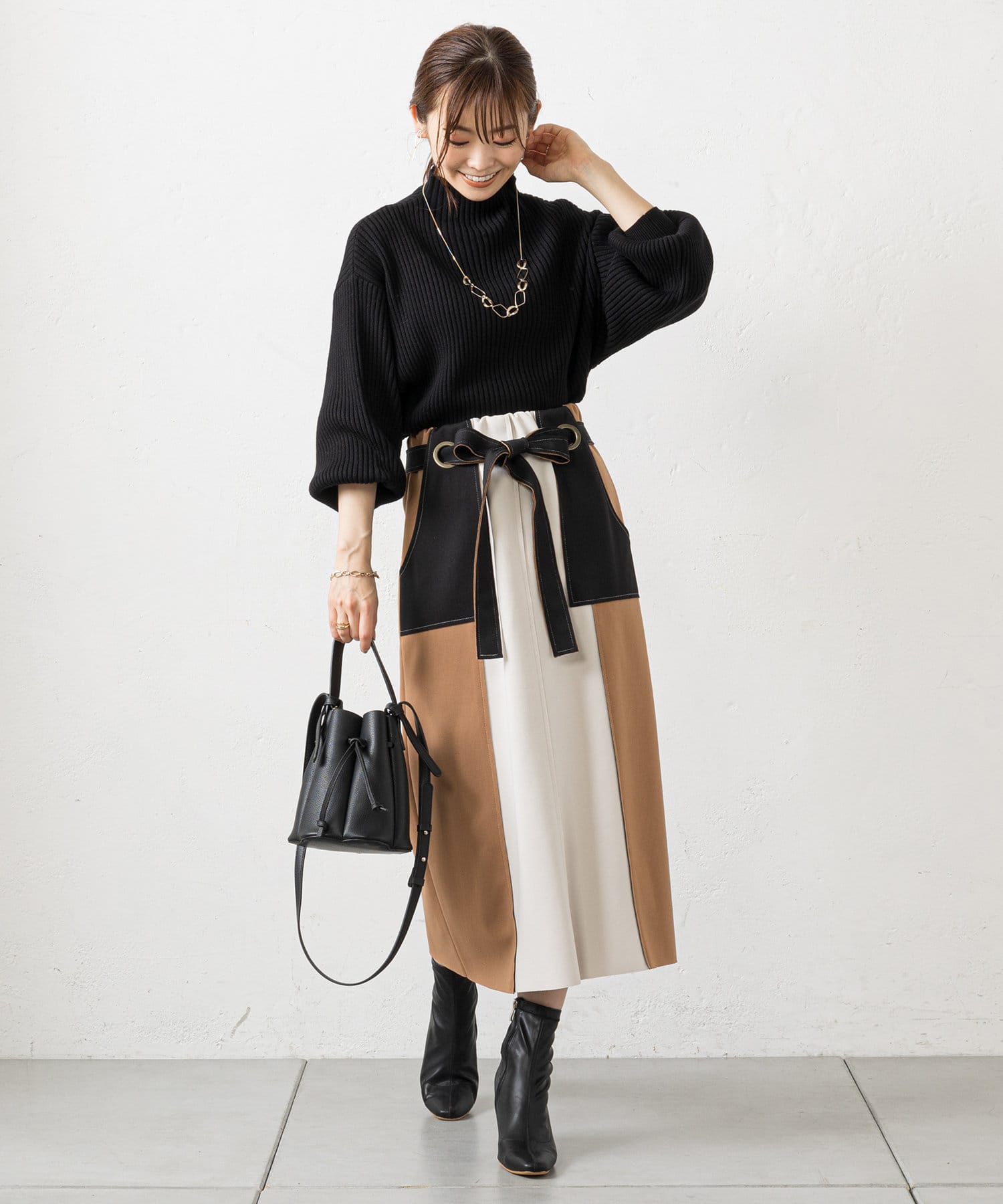 ・マルチカラー配色ナロースカート (PVZ1012101A0004)