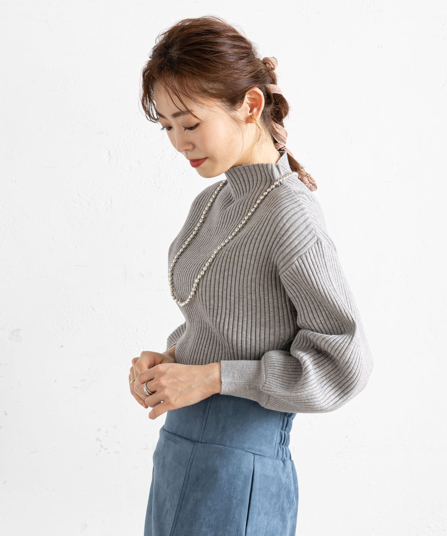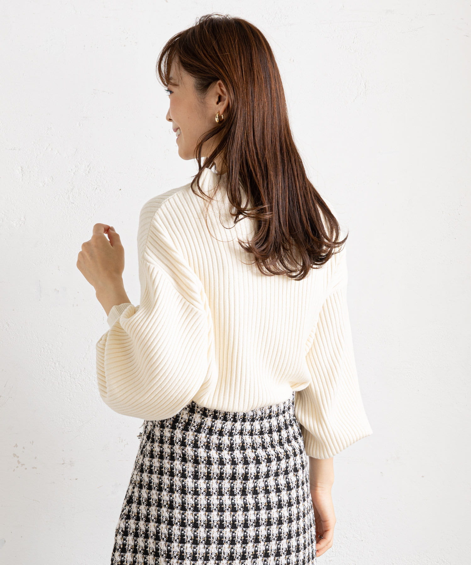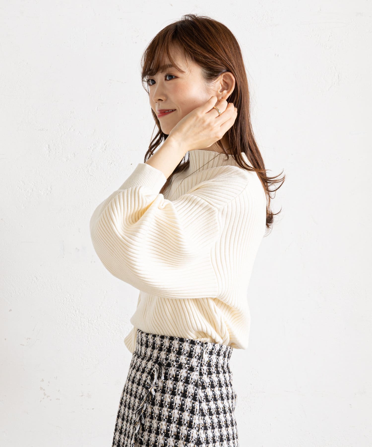 シンプルながらも絶妙なシルエットのパフスリ―ブニット